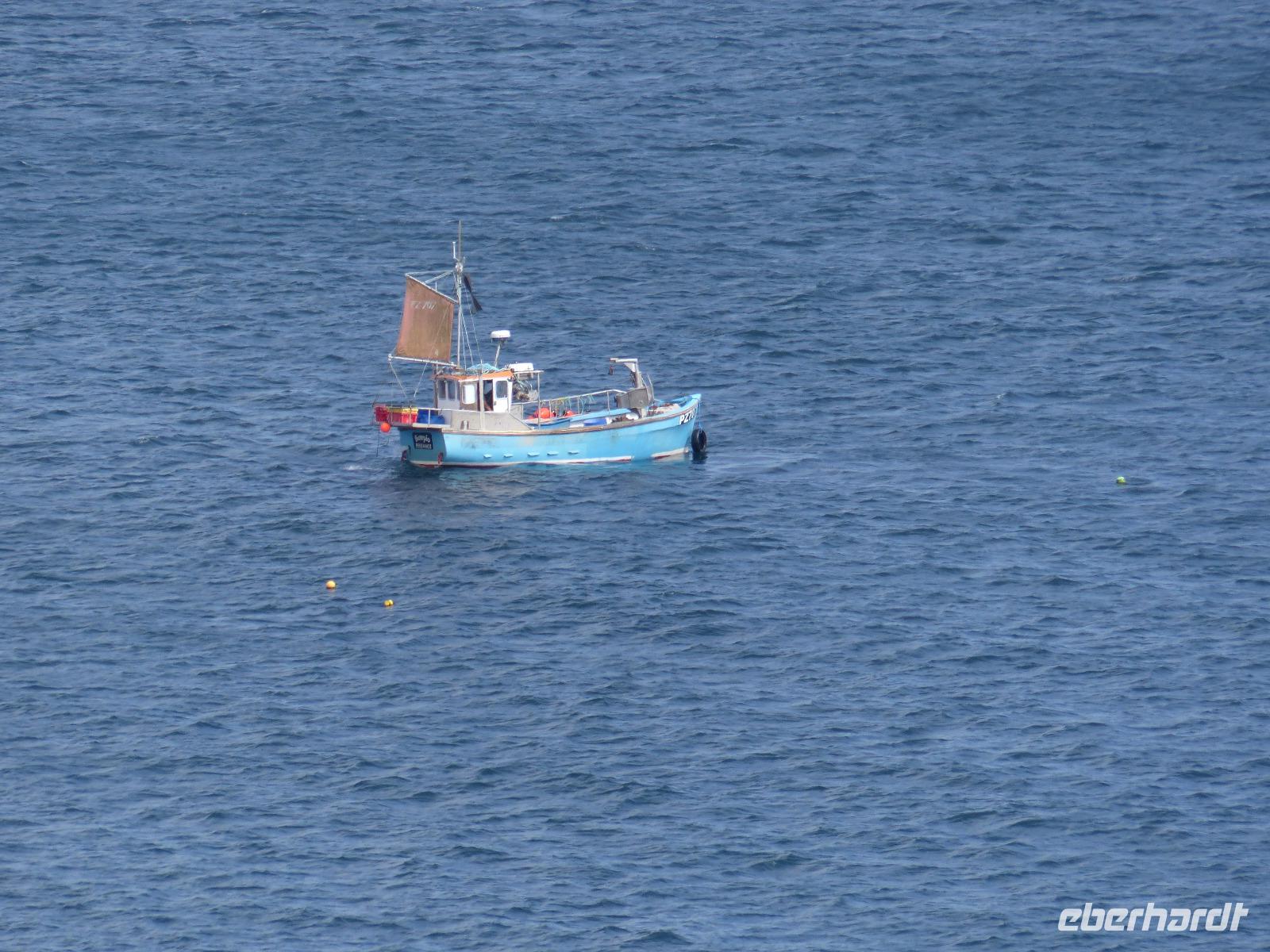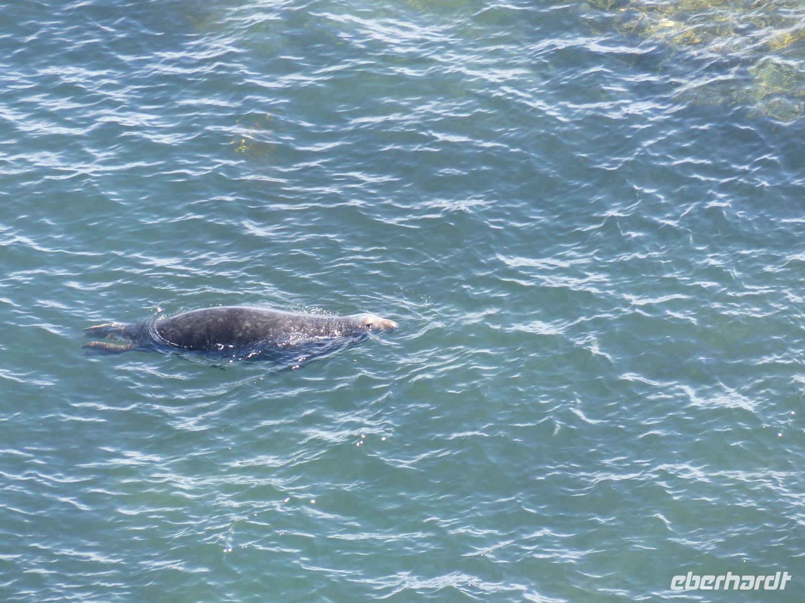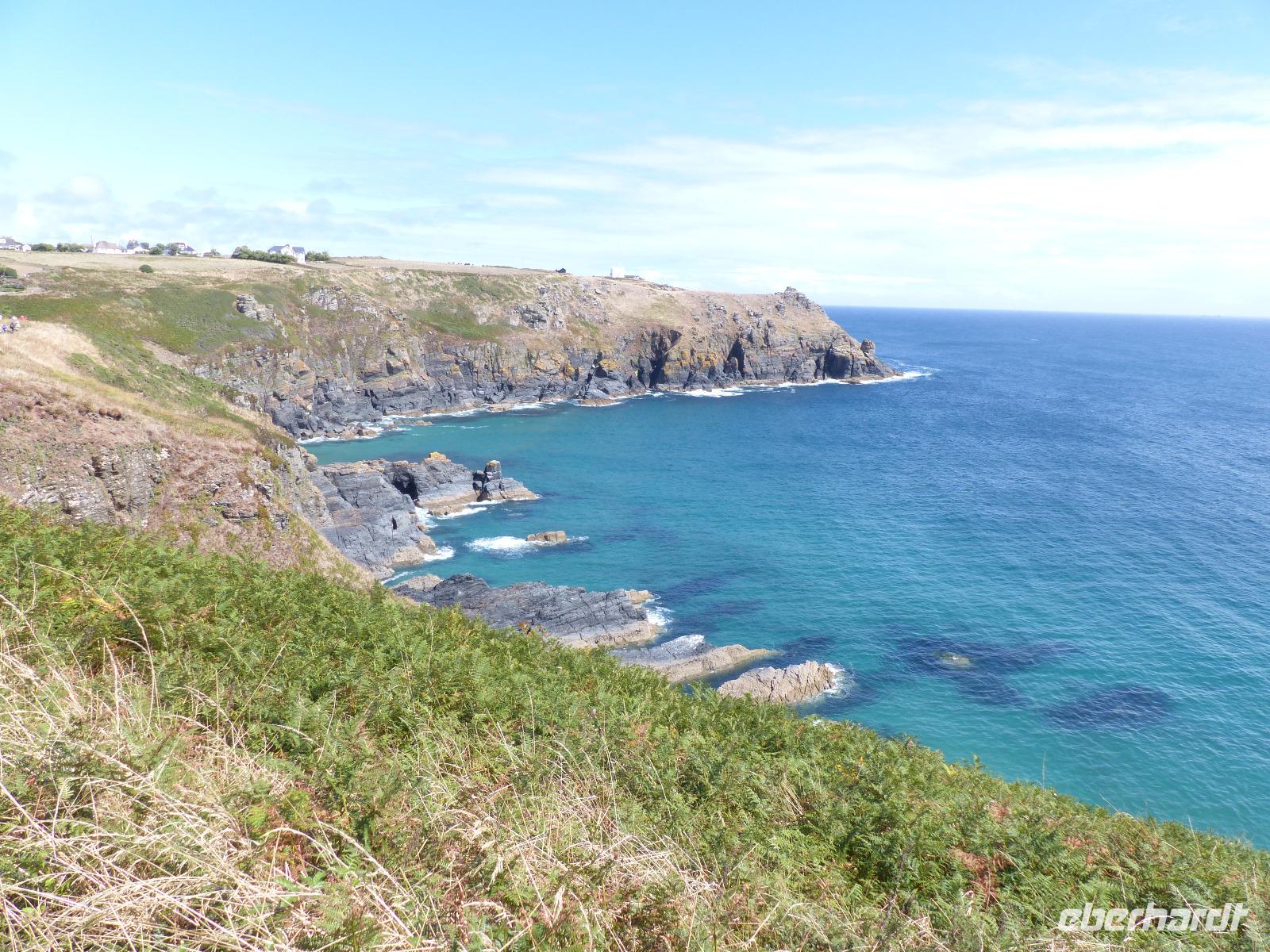 Tony II. hatte uns vorgewarnt: Seit einigen Monaten dürfen Busse nicht mehr zum Parkplatz der Kynance Cove fahren. Der National Trust hatte uns also ein größeres Problem beschert, das wir aber mittels Taxi lösten. Die Kynance Cove ist einer der schönsten Strände Englands. Das Meer schimmert hier in karibischen Farben wenn das Wetter mitspielt. Und das tat es. Wenig später konnten wir Kegelrobben durchs Meer schwimmen sehen. Am südlichsten Punkt Englands machten wir auf einer netten Terrasse eine aussichtsreiche Pause und stärkten uns süß oder herzhaft, je nach Wunsch. Derart gerüstet zogen wir am Nachmittag wieder los, vorüber an weiteren türkisblauen Buchten und planschenden Kegelrobben. Wir zogen an Teufels Bratpfanne vorüber und erreichten am Nachmittag das malerische Fischerdorf Cadgwith. Und auch hier zog wieder mal jeder für sich los, bevor wir uns auf den Weg zum Bus machten. Der war leider nicht gleich zu finden, denn auch hier hatte man unserem Tony II. wieder Prügel in den Weg gelegt - er konnte das große Vehikel kaum wenden, weil ein neuer Schilderwald den Parkplatz verkleinerte. Doch Tony II. wusste sich zu helfen. Er machte einen Abstecher zu einem Bauernhof, so dass er mit gedrehtem Bus uns schließlich auflesen konnte. An unserem letzten Abend war ein Pub-Besuch in Newquay angesagt. Typisch englische Küche: Fish and chips. Und dann begann das Kofferpacken - eine Tätigkeit, die die meisten von uns weniger begeisterte. Huch, schon alles wieder vorüber?? Ist diese Woche schnell vergangen! Und zu Hause soll es immer noch so heiß sein... was war es hier doch herrlich!