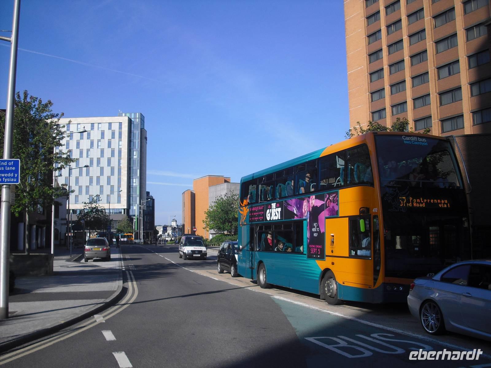 Nach dem Frühstück trafen wir Tony und unternahmen zu Fuß und mit dem Bus eine Kennenlerntour. Humorvoll und kompetent begleitete uns Tony durch die walisische Hauptstadt Cardiff.
