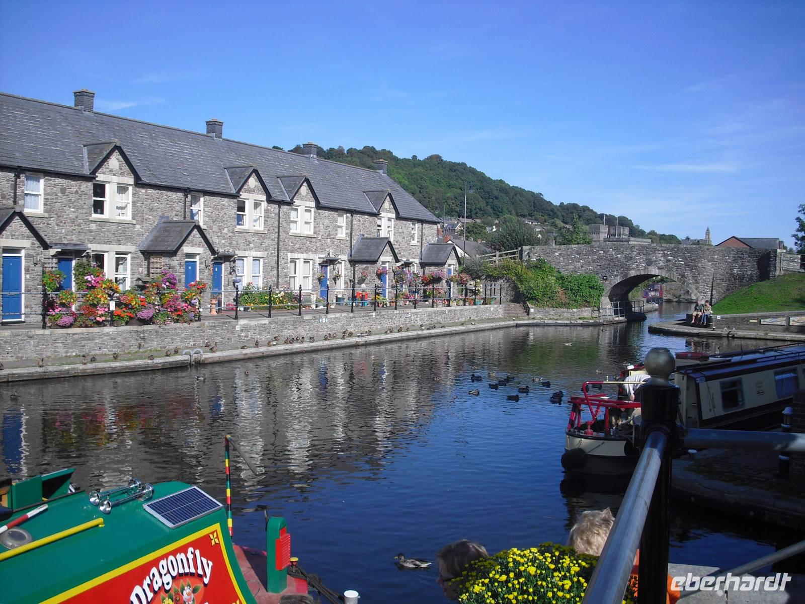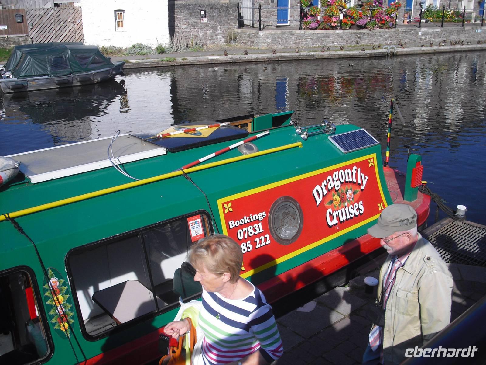Der späte Nachmittag galt einer beschaulichen Bootsfahrt auf dem Monmouthshire& Brecon Canal. 1801 eingeweiht, hat er längst einstige wirtschaftliche Bedeutung verloren. Er bot in der Vergangenheit einen effizienten Weg, schwere Lasten über eine große Distanz zu befördern. Ein Mann konnte 50 kg bewegen, ein Pony 200 kg, ein Pferdewagen 1000 kg und ein Schiff auf dem Kanal 20000 kg. Wir konnten entspannt die nachmittägliche "Kreuzfahrt" geniessen und das bei Tee, Kaffee sowie kleinen Snacks an Bord.