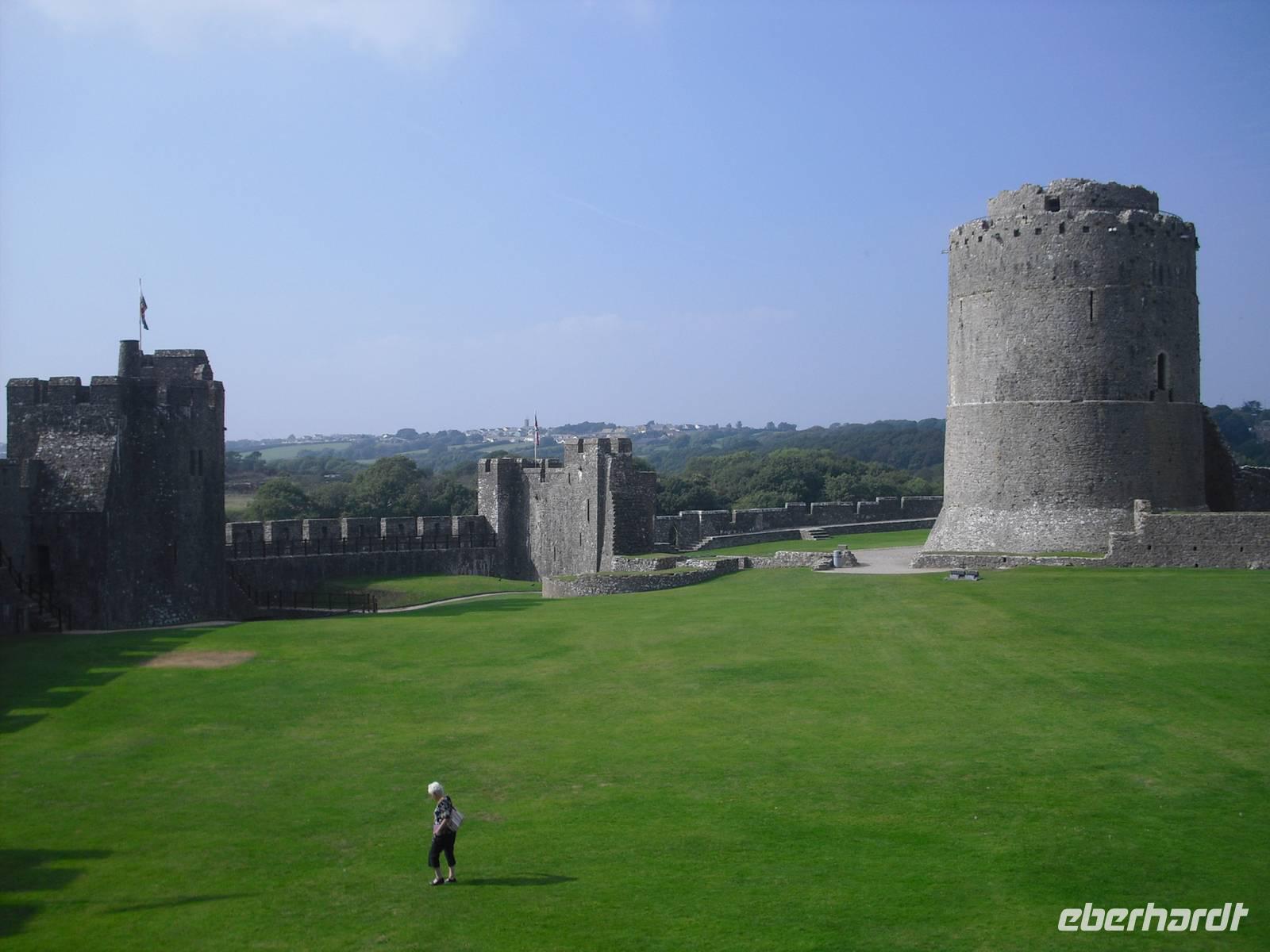 Pembroke Castle, einst bedeutenste Festung von Südwales, war das nächste Ziel. Schon kurz nach ihrer Invasion im Jahr 1066 bauten die Normannen eine erste Befestigung, die im Laufe der Jahrhunderte immer weiter ausgebaut wurde. Beeindruckend noch heute der 25 m hohe normannische Bergfried mit den fast 6 m dicken Mauern. Und die Führung durch die Burganlage hatte durchaus Erlebniswert.