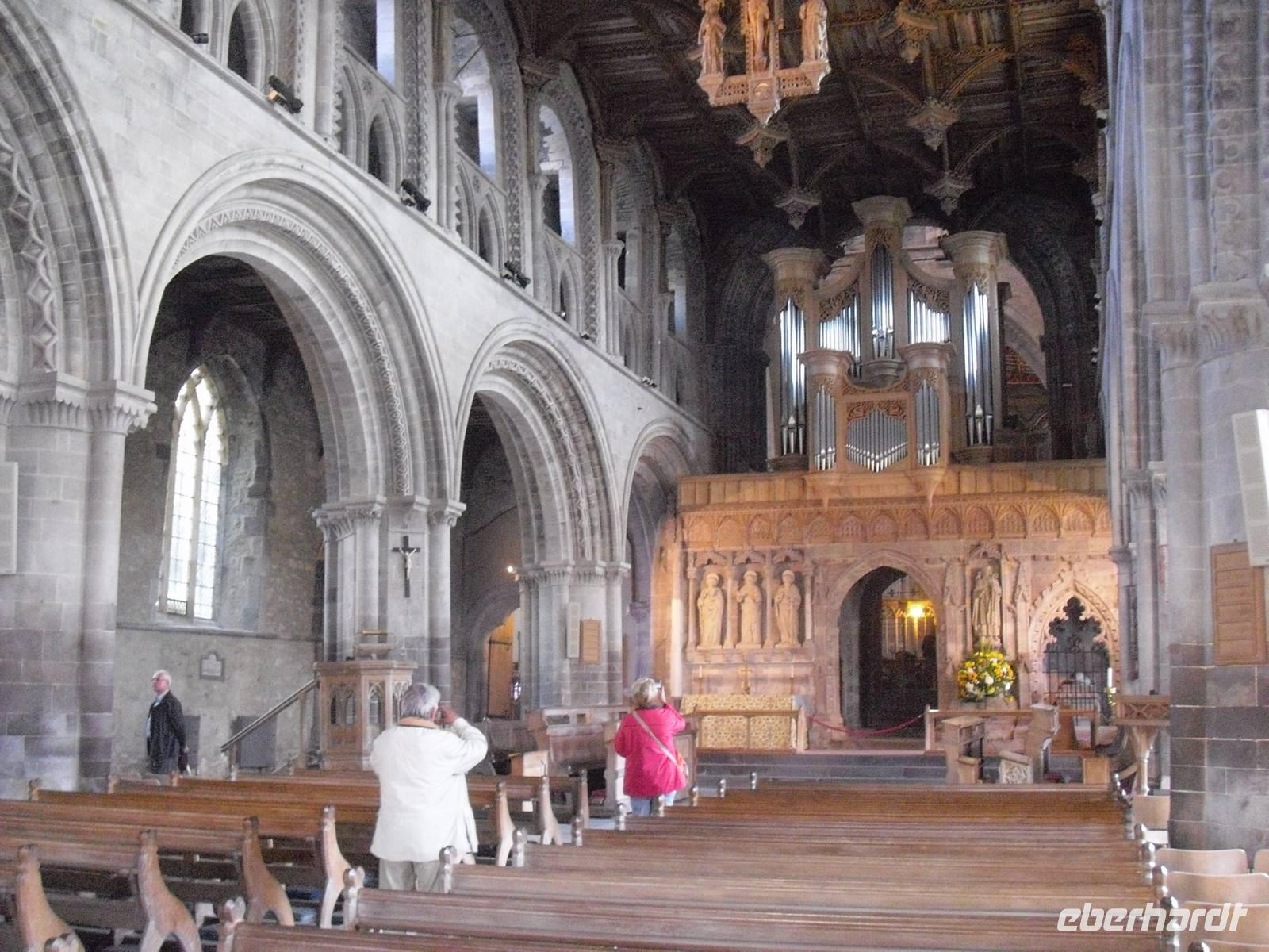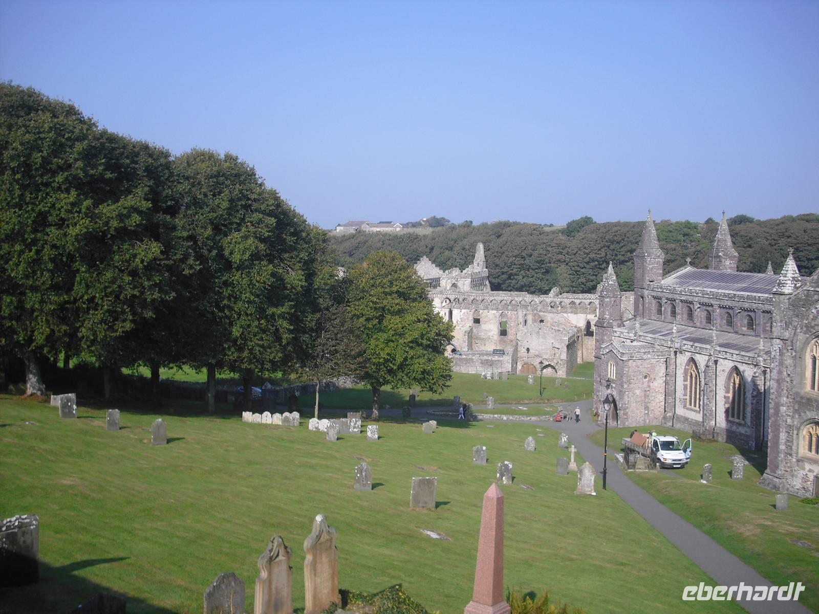 Es war der walisische Nationalheilige DAVID, der eine erste Kirche gründete und von hier Wales und Cornwall missionierte. 1176 wurde mit dem Bau der heutigen Kathedrale begonnen und sie stellt das letzte große Kirchenbauwerk Großbritanniens dar, das im normannischen Stil erbaut wurde.