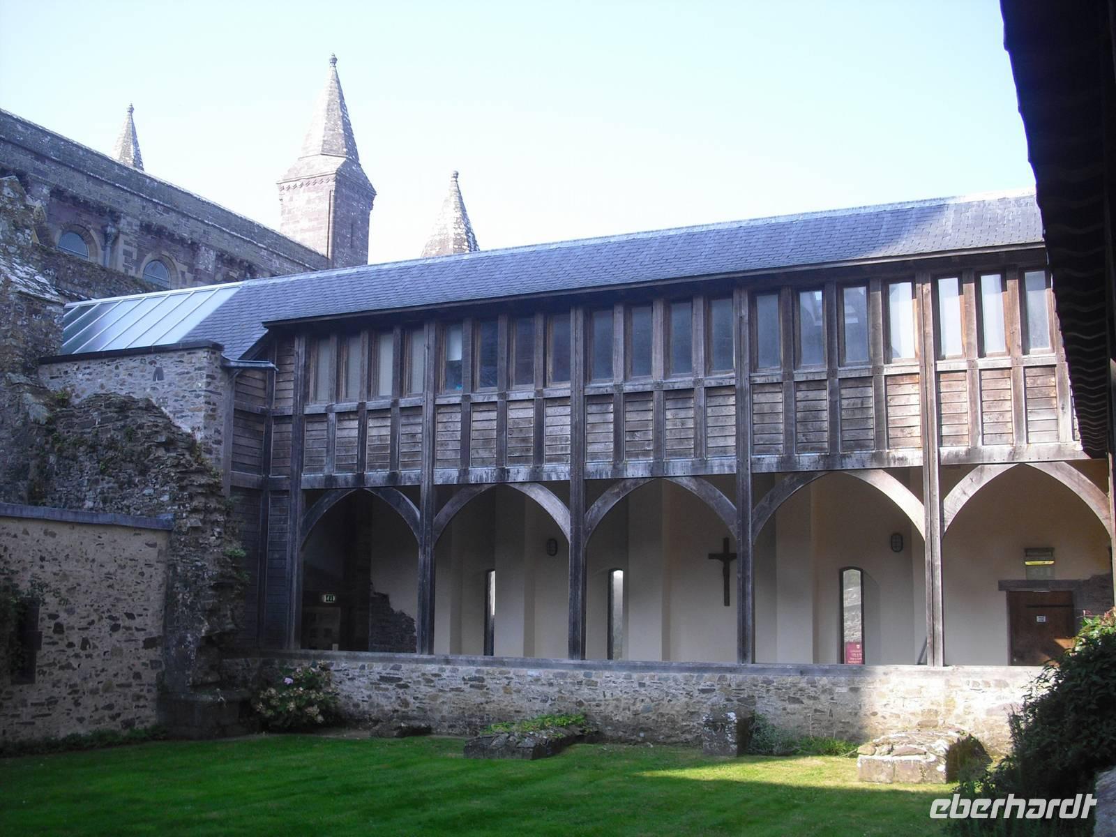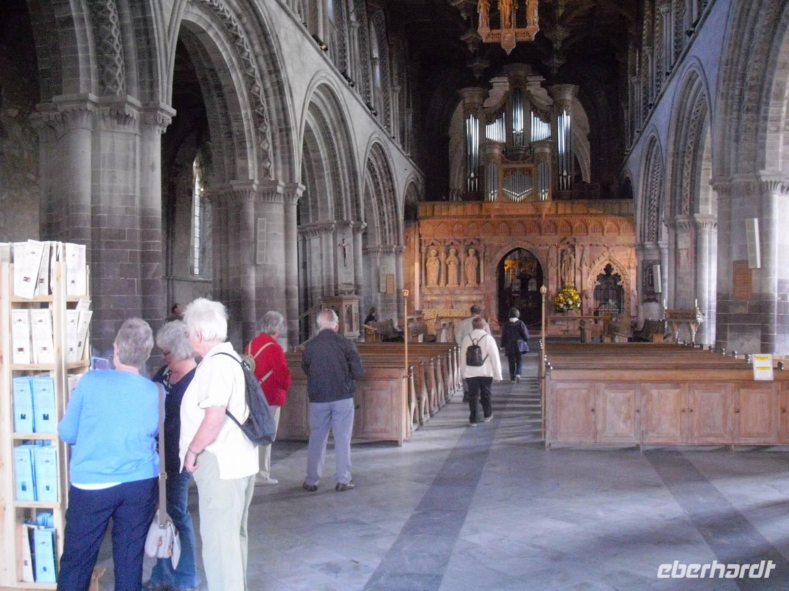 Dann erwartete uns das kleinste Kathedralstädtchen in Großbritannien. Am Marktkreuz vorbei und durch das Tower Gate der alten Stadtmauer gelangten wir zur Kathedrale, die tief unten in den Flußauen des River Alun liegt.