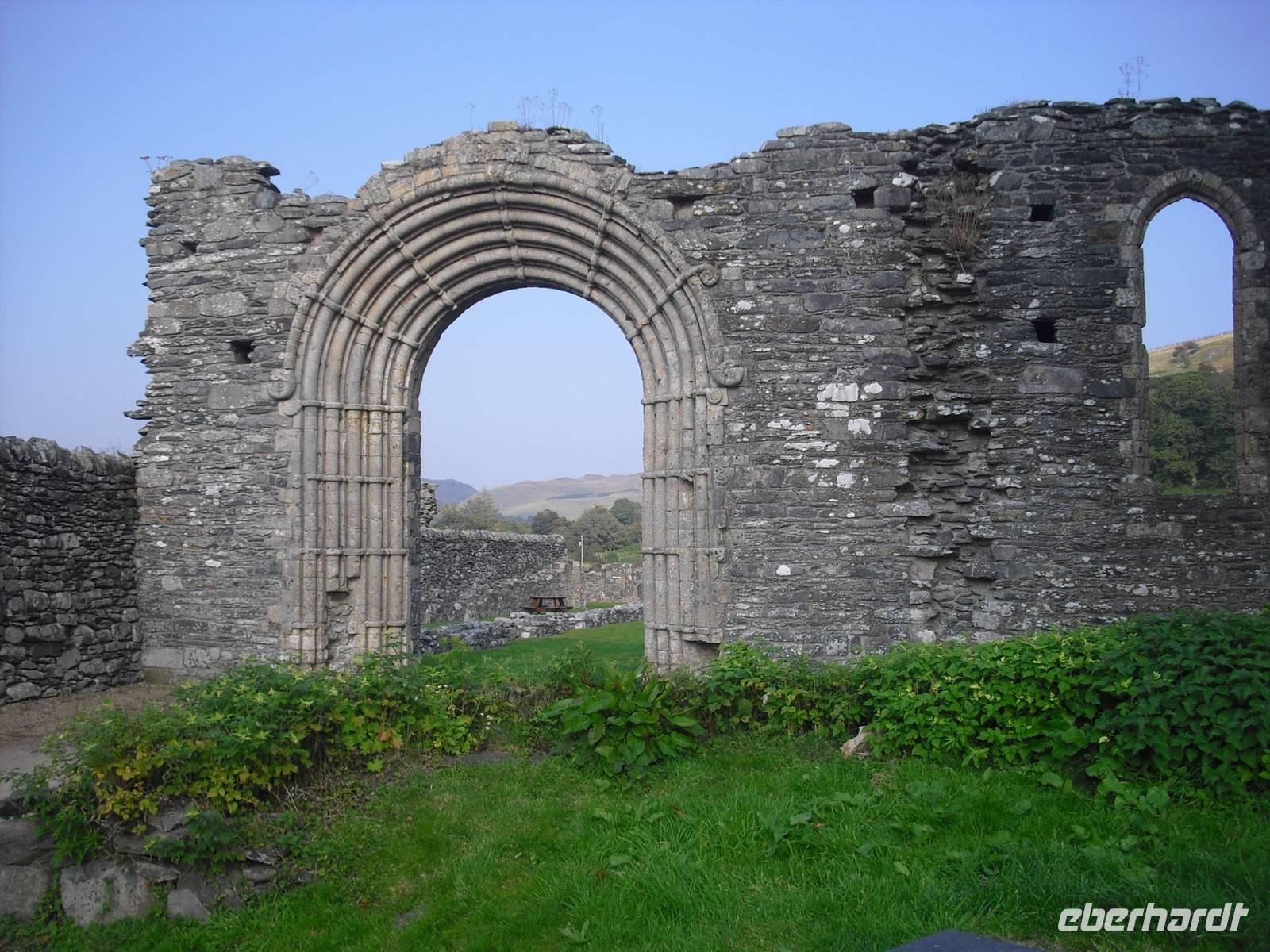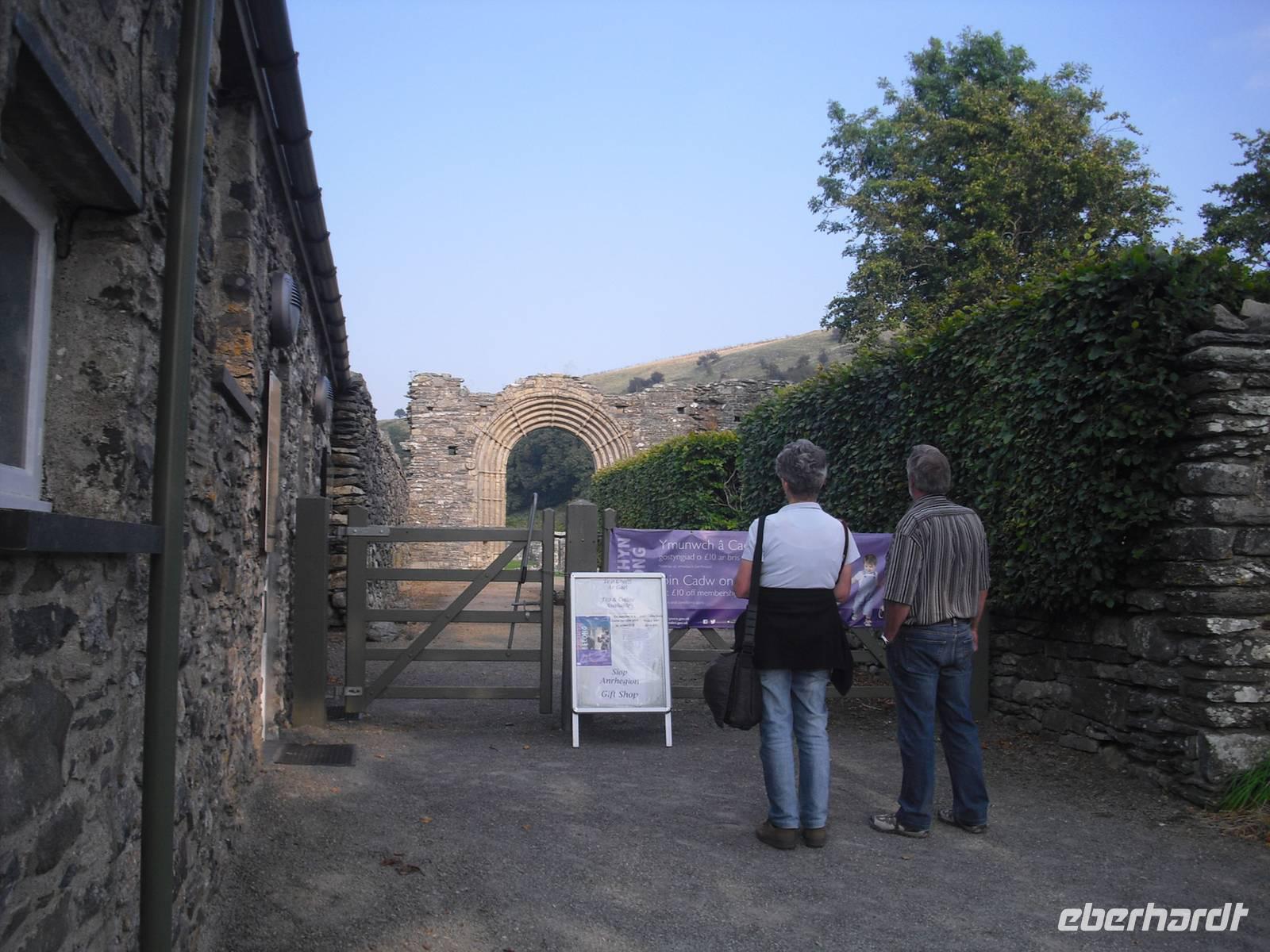 Nach einer kleinen Mittagspause fuhren wir zur einstigen Westminsterabtei von Wales - Strata Florida Abbey. Schon die Reste des Westtores vermittelten uns einen Eindruck vom einstigen architektonischen Glanz dieser Abtei, die 1164 gegründet wurde. Auf einer großen Zusammenkunft 1238 rief Prinz Llywelyn alle Prinzen von Wales auf, an dieser Stelle seinem Sohn und Erben Dafydd Treue zu schwören. Ein wahrhaft historischer Ort.