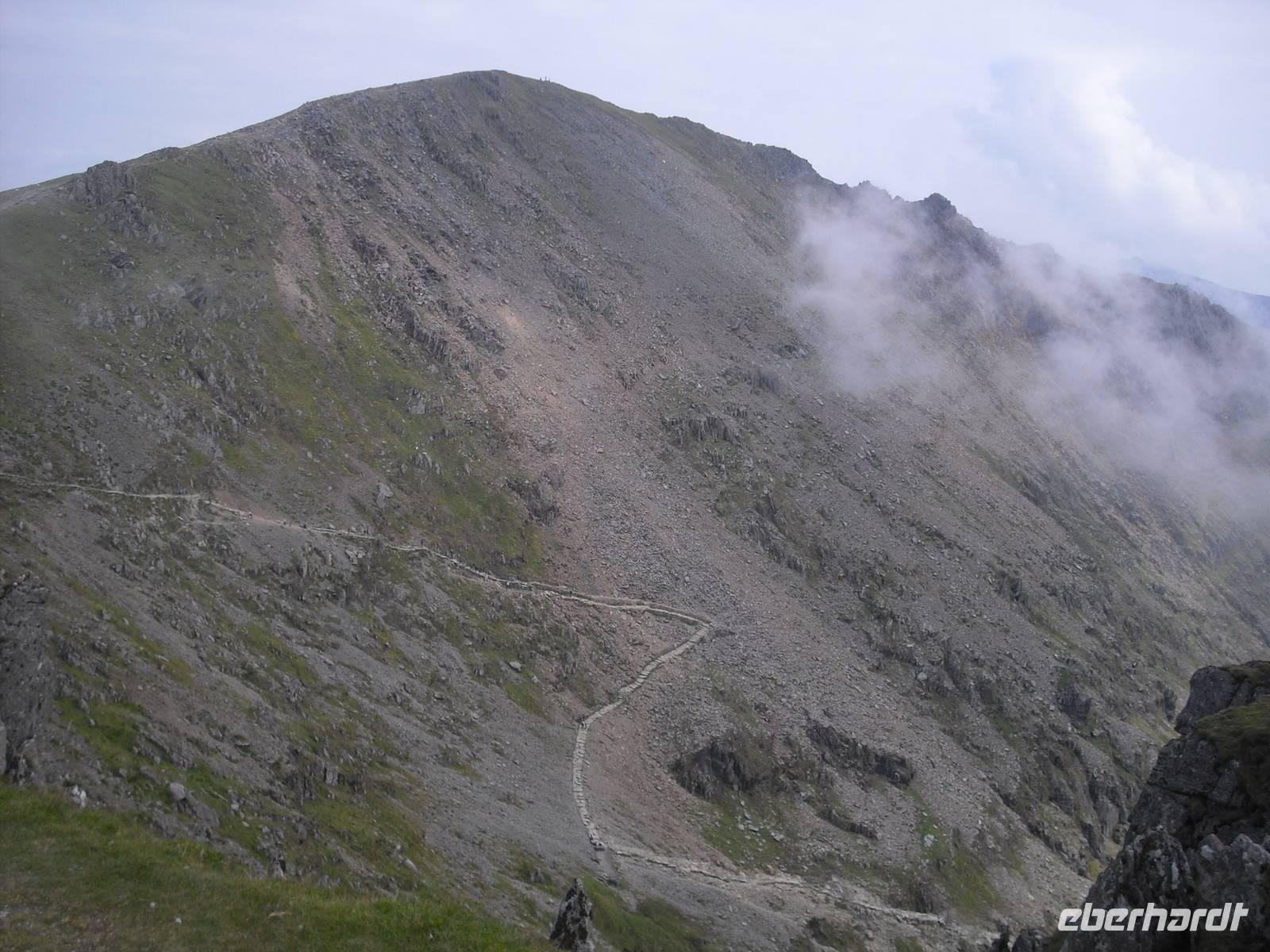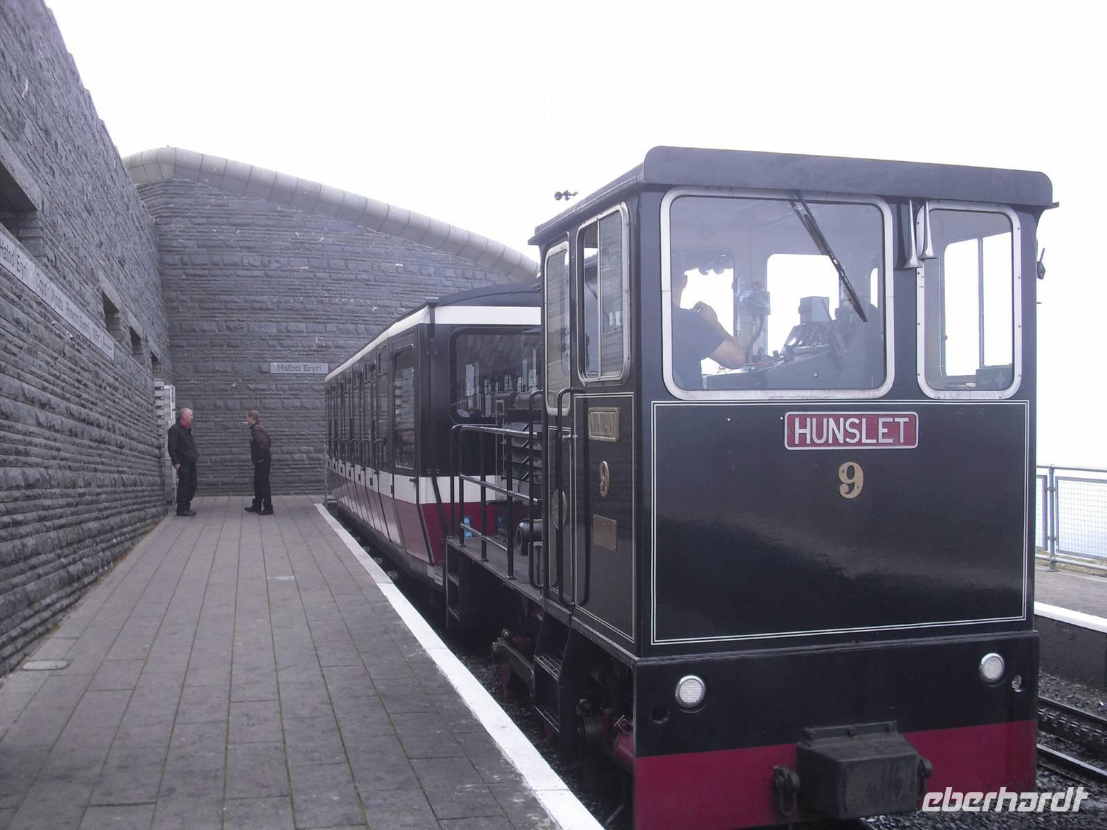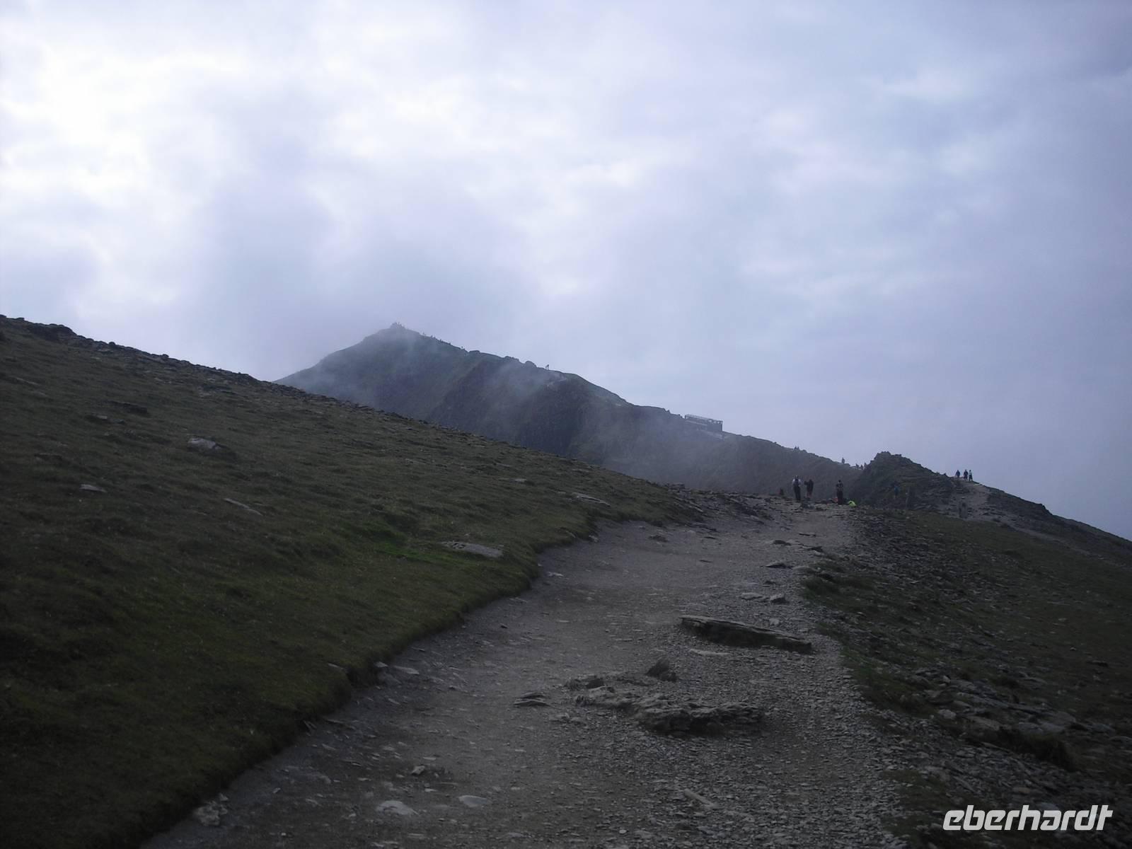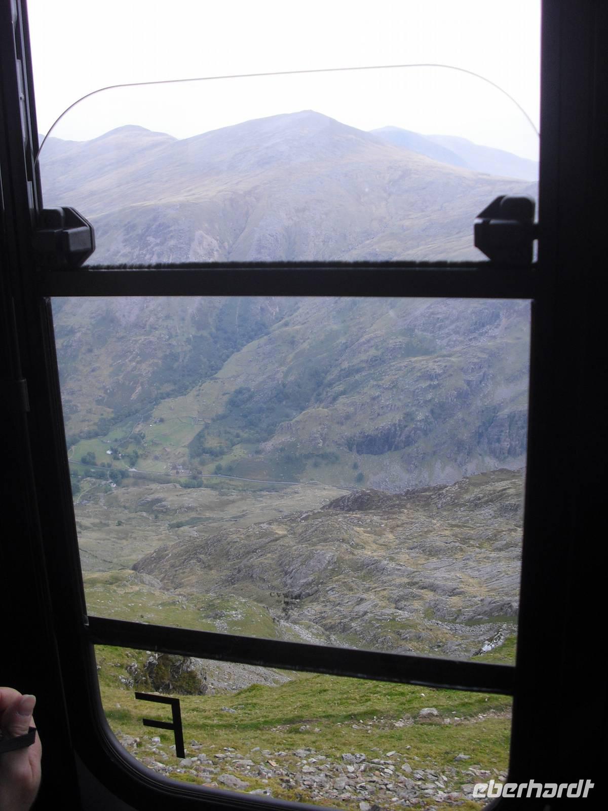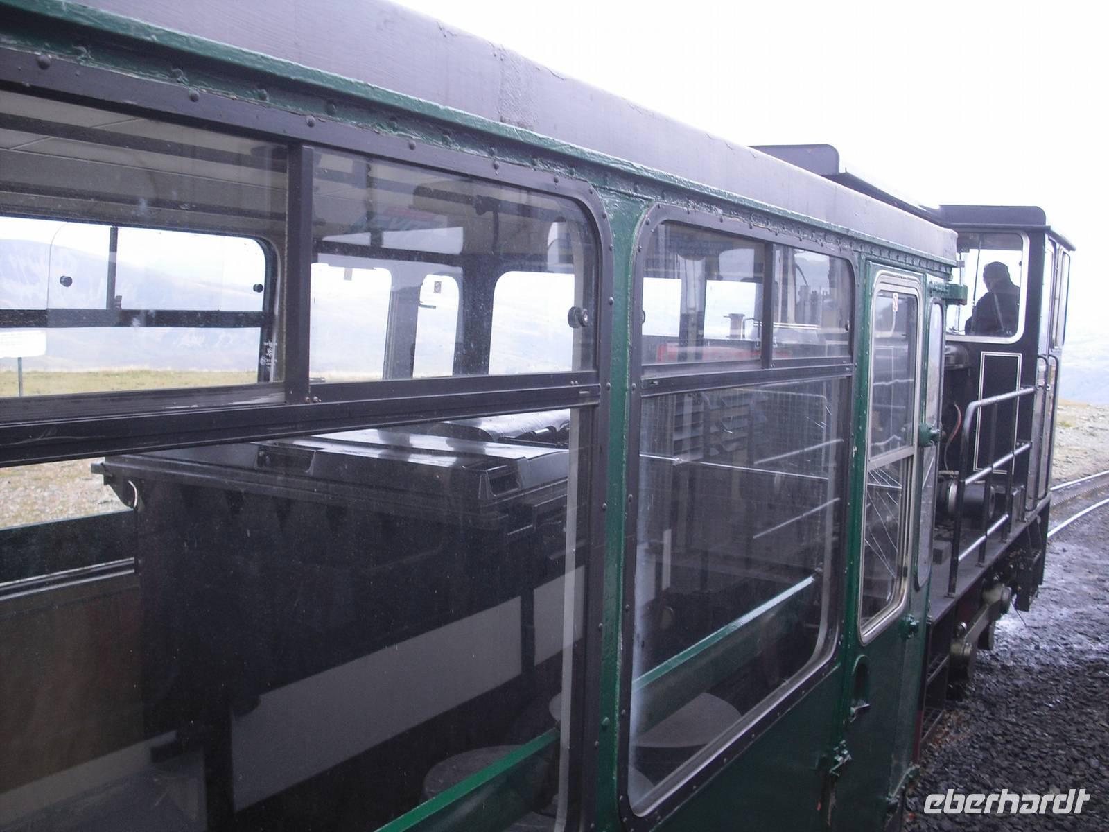 Nach dem walisischem Frühstück fuhren wir nach Llanberis, um den EARLY BIRD TRAIN zum Gipfel des Snowdon zu erreichen. Im Zug sitzend `quälten`wir uns in knapp einer Stunde auf den Gipfel des höchsten Berges von Wales und England ( nur der Ben Nevis in Schottland ist auf der Insel noch höher ) und wurden alle mit einer spektakulären Aussicht belohnt. Es hätte wahrlich auch anders sein können, doch eine privilegierte Reisegruppe war unterwegs. Einige fuhren mit dem Zug wieder abwärts und verbrachten mit vielfältigen touristischen Angeboten in Llanberis die verfügbare Zeit, andere wagten mit dem Reiseleiter den Abstieg. Wohl keiner hat den anspruchsvollen Abstieg bereut.