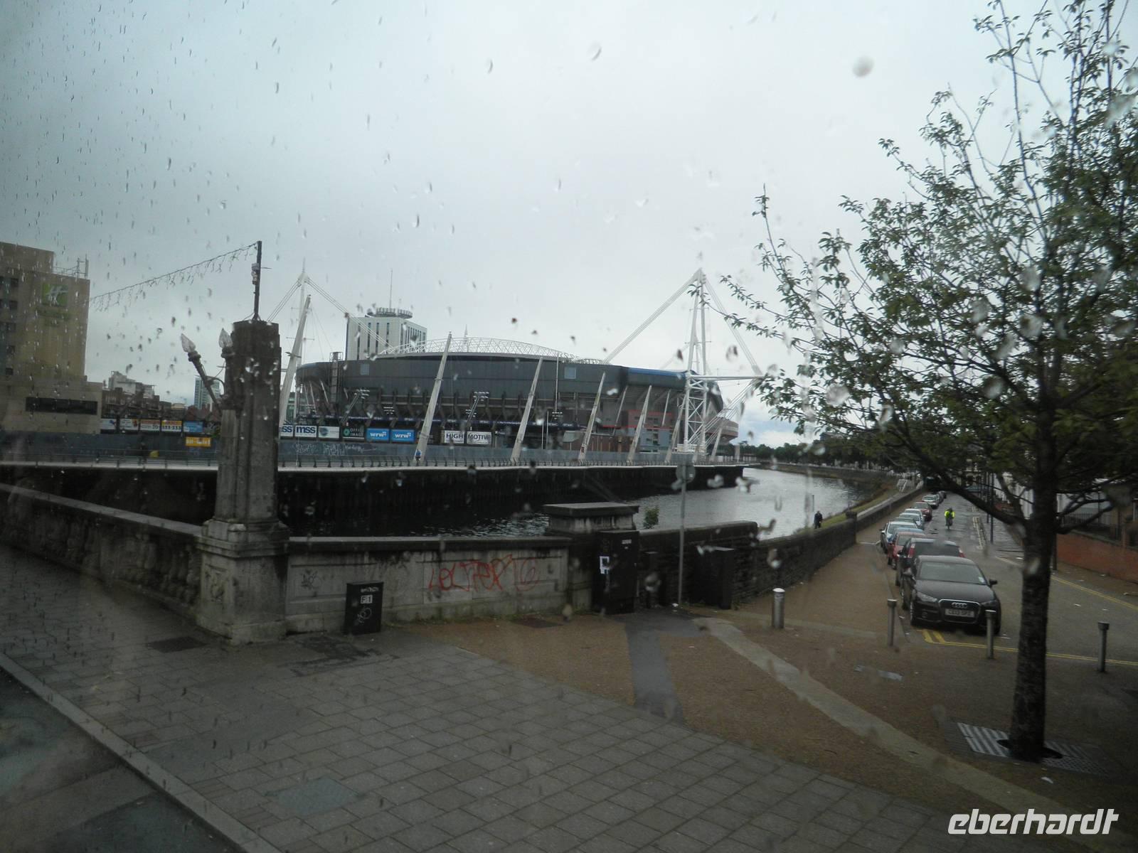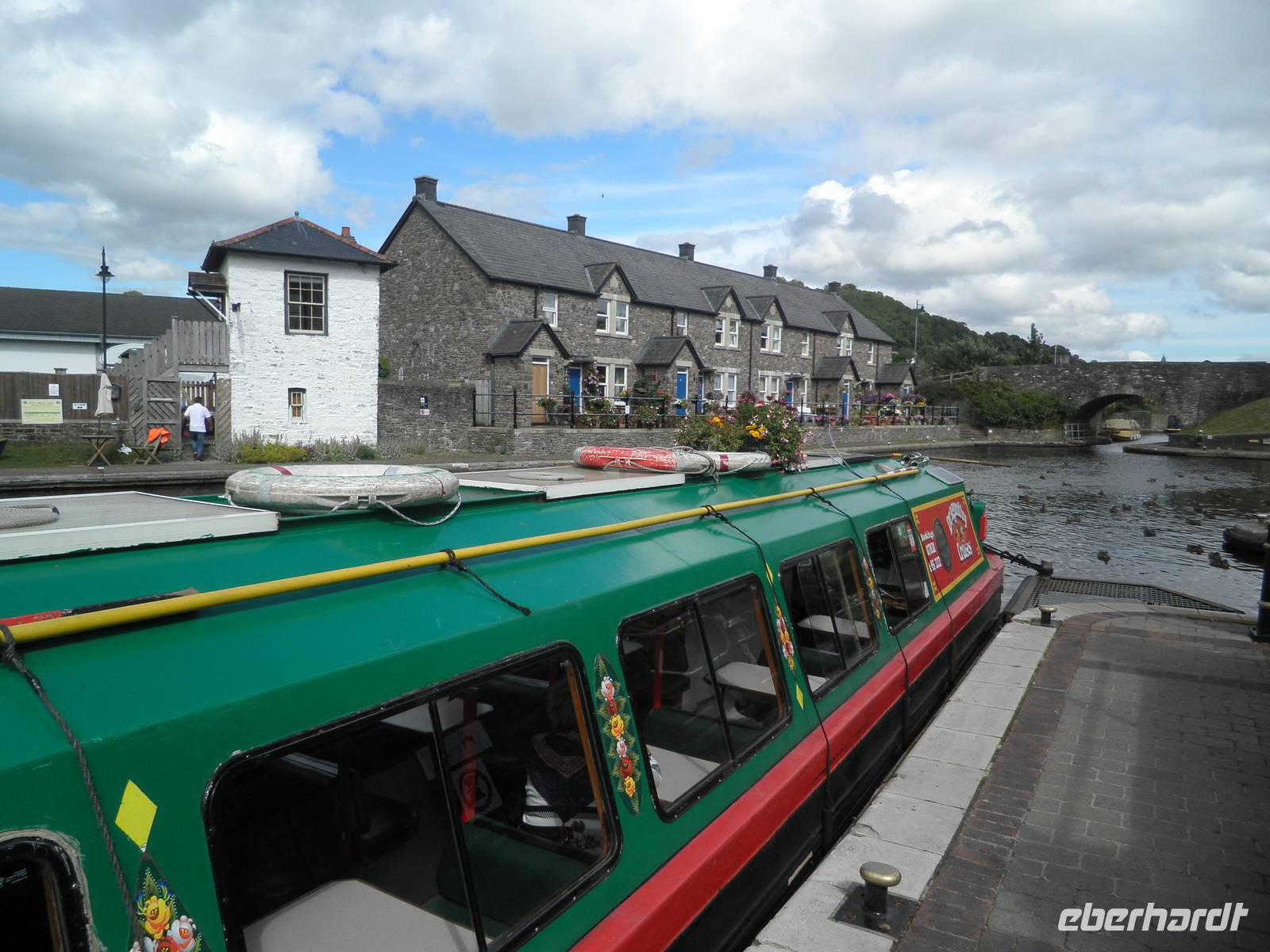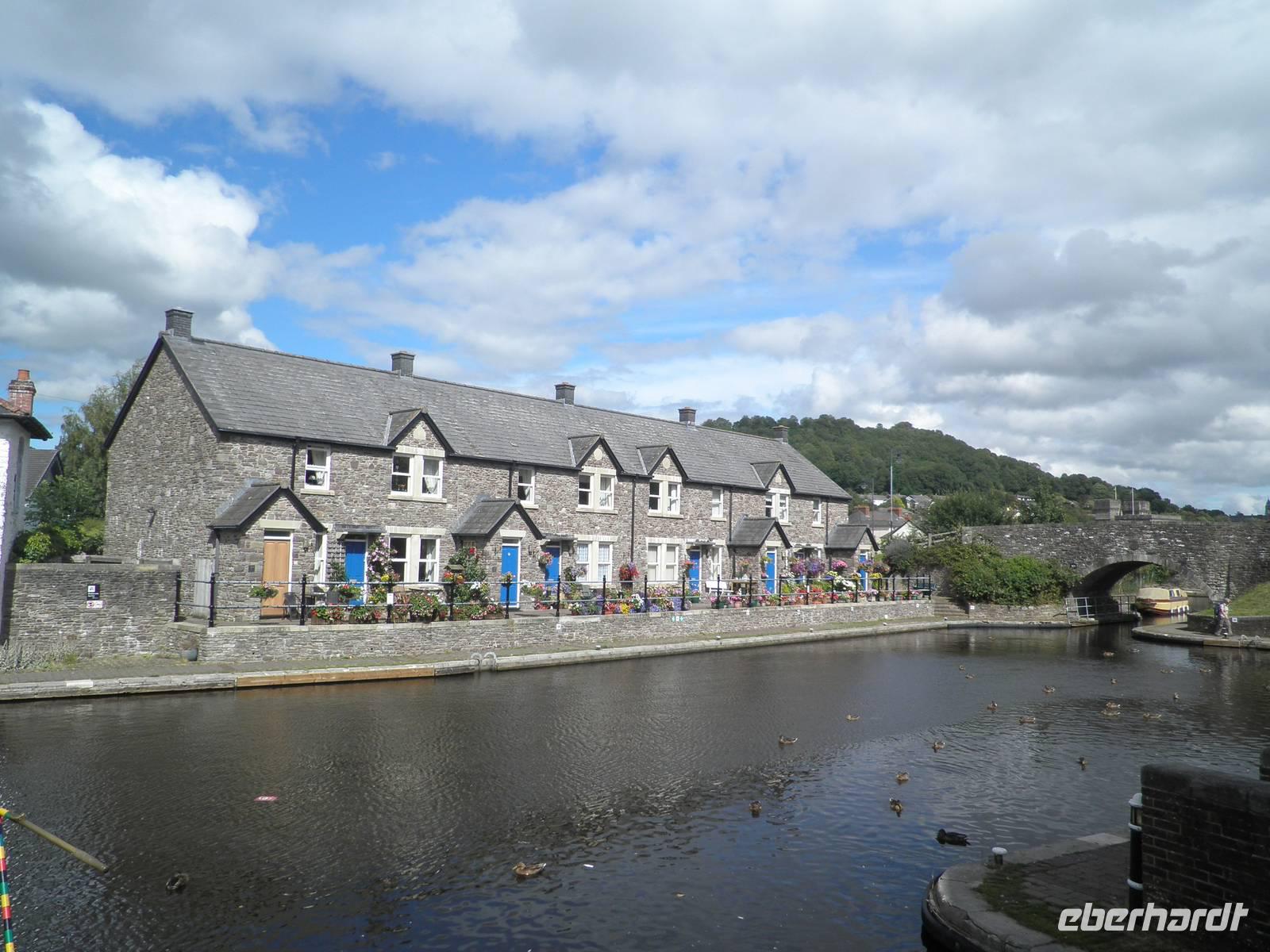 Dieser Tag begrüßte uns mit Regen, und so lernten wir Cardiff bei einer Stadtrundfahrt mit typisch walisischem Wetter kennen. Tony, unser Stadtführer, holte uns am Morgen an unserem Hotel ab und zeigte uns die Hauptstadt von Wales. Wir erfuhren viel Informatives aus der Geschichte und Gegenwart Cardiffs. Wir sahen die Tiermauer, das Castle, das neue Opernhaus und andere moderne Gebäude an der Bay von Cardiff. Am späten Nachmittag verließen wir die Stadt in Richtung Norden, um dem hübschen Ort Monmouth einen Besuch abzustatten. Hier wurden berühmte Personen der Geschichte geboren: Heinrich V. zum Beispiel, dem William Shakespeare mit seinem gleichnamigen Drama ein unvergessliches Denkmal setzte. Geoffrey von Monmouth, ein Mönch im beginnenden 12. Jahrhundert, verfasste die Geschichte der britischen Könige, die Ursprung der heute allseits bekannten Artussage ist. Nach unserem Aufenthalt in Monmouth fuhren wir durch die Black Montains nach Hay-on-Wye und bummelten durch den hübschen kleinen Ort, der wegen seiner zahlreichen Antiquariate und Bücherläden auch als Town of the Books bekannt geworden ist. In Brecon bestiegen wir am Nachmittag ein bunt angestrichenes Narrow-Boat, um gemütlich auf dem Monmouthshire and Brecon Canal zu schippern. Wir wurden nach unten und später nach oben geschleust und standen auf einem Aquädukt, unter dem der Fluss Usk dahinströmte. Durch die beeindruckende Bergkulisse des Brecon Beacons schließlich fuhren wir zurück zu unserem Hotel in Cardiff.