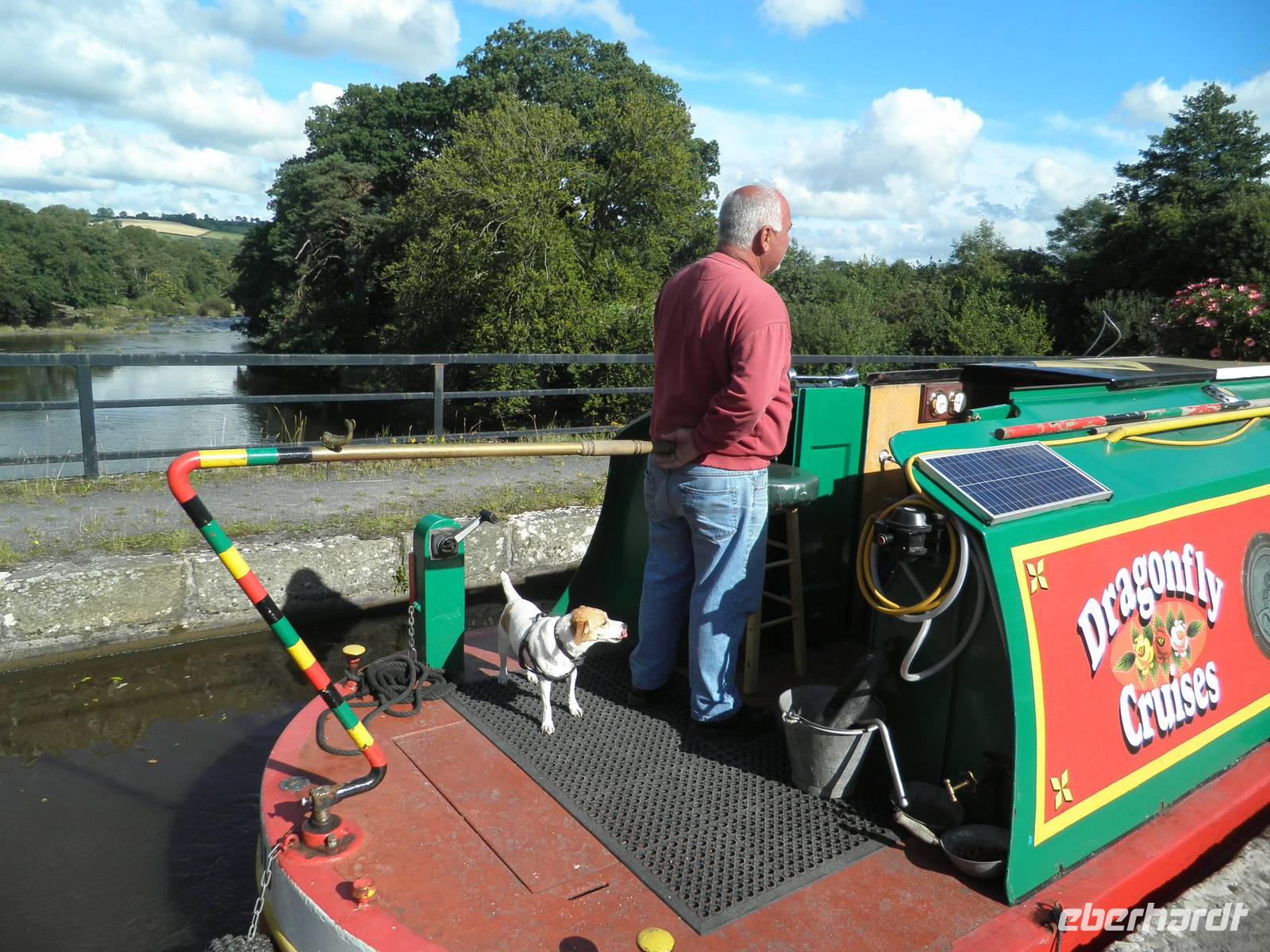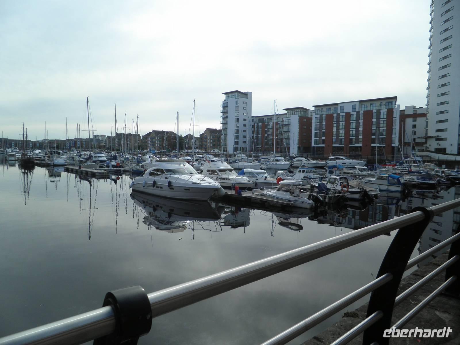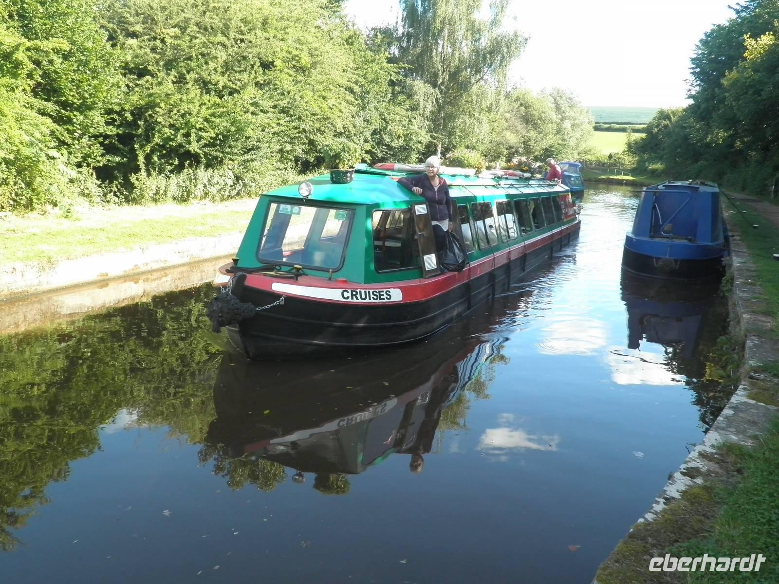Dieser Tag begrüßte uns mit Regen, und so lernten wir Cardiff bei einer Stadtrundfahrt mit typisch walisischem Wetter kennen. Tony, unser Stadtführer, holte uns am Morgen an unserem Hotel ab und zeigte uns die Hauptstadt von Wales. Wir erfuhren viel Informatives aus der Geschichte und Gegenwart Cardiffs. Wir sahen die Tiermauer, das Castle, das neue Opernhaus und andere moderne Gebäude an der Bay von Cardiff. Am späten Nachmittag verließen wir die Stadt in Richtung Norden, um dem hübschen Ort Monmouth einen Besuch abzustatten. Hier wurden berühmte Personen der Geschichte geboren: Heinrich V. zum Beispiel, dem William Shakespeare mit seinem gleichnamigen Drama ein unvergessliches Denkmal setzte. Geoffrey von Monmouth, ein Mönch im beginnenden 12. Jahrhundert, verfasste die Geschichte der britischen Könige, die Ursprung der heute allseits bekannten Artussage ist. Nach unserem Aufenthalt in Monmouth fuhren wir durch die Black Montains nach Hay-on-Wye und bummelten durch den hübschen kleinen Ort, der wegen seiner zahlreichen Antiquariate und Bücherläden auch als Town of the Books bekannt geworden ist. In Brecon bestiegen wir am Nachmittag ein bunt angestrichenes Narrow-Boat, um gemütlich auf dem Monmouthshire and Brecon Canal zu schippern. Wir wurden nach unten und später nach oben geschleust und standen auf einem Aquädukt, unter dem der Fluss Usk dahinströmte. Durch die beeindruckende Bergkulisse des Brecon Beacons schließlich fuhren wir zurück zu unserem Hotel in Cardiff.