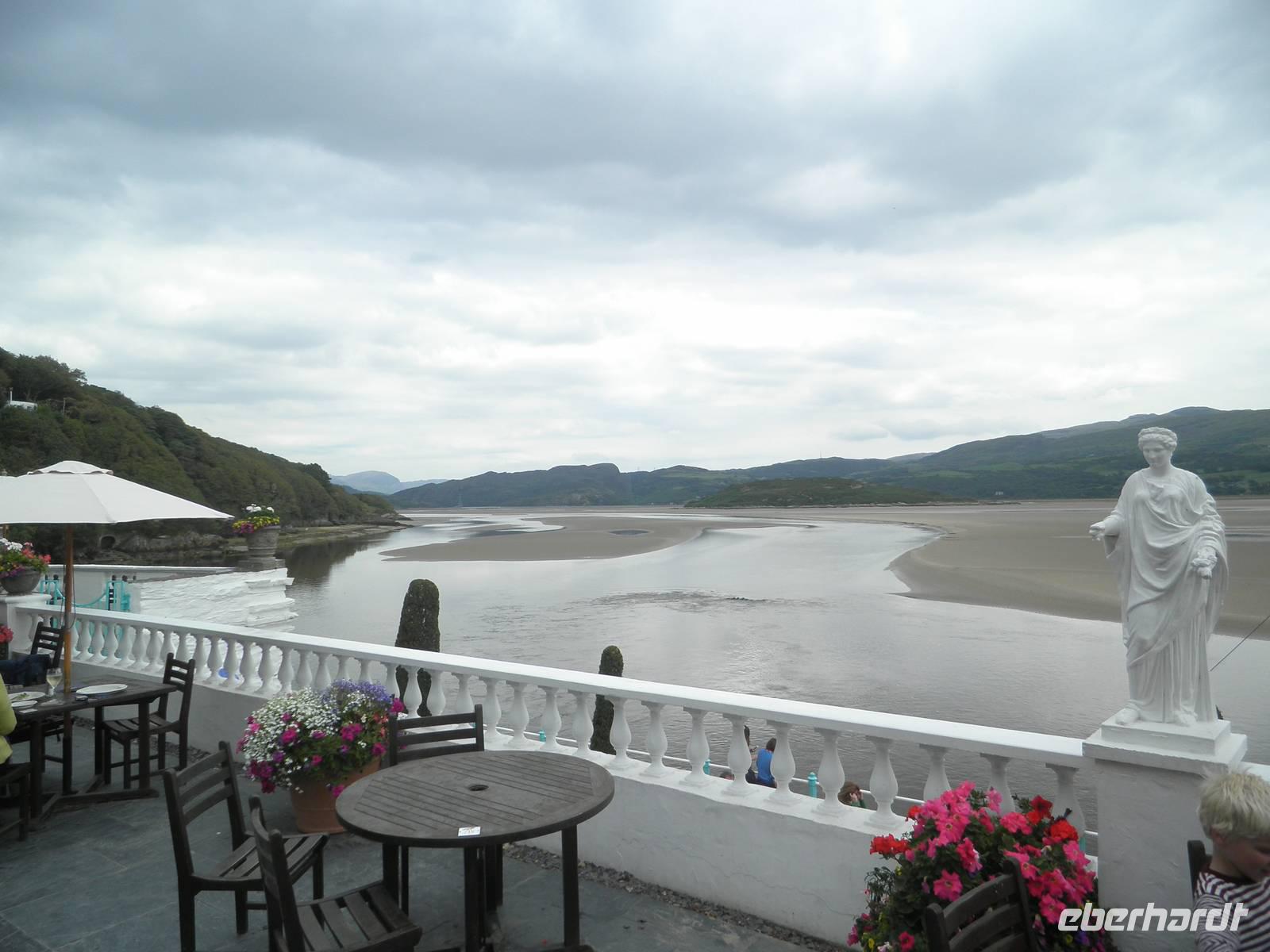 An diesem Morgen begaben wir uns zunächst in die Tiefe einer ehemaligen Bergbaumine und folgten den Mythen und Legenden um jenen legendären König Artus, der uns mit seinen Rittern der Tafelrunde aus zahlreichen Geschichten, Büchern und Filmen bekannt ist. Danach erreichten wir Portmeirion, ein Dorf, das von 1925 bis 1977 von einem visionären Mann in ein italienisches Dorf in mediterranem Stil umgestaltet worden ist. Wir schlenderten durch die aufwendig gestaltete Anlage, erfreuten uns an farbenfrohen Hausfassaden, Springbrunnen und einer Vielzahl von Hortensien, die gerade noch in allen Farben blühten. Danach fuhren wir ins nahe gelegene Porthmadog, wo gleich mehrere dampfbetriebene Kleinspurbahnen abfahren, um Touristen durch die beeindruckende Landschaft des Snowdonia Nationalparks zu fahren. Früher dienten diese Züge zum Abtransport von Rohstoffen, die in den Bergen abgebaut wurden, wie Schiefer und Erze. Diese wurden hinunter nach Porthmadog gebacht, um sie über den Hafen weiter zu transportieren. Wir hingegen saßen in einem gemütlichen historischen Zugabteil und genossen die wunderschöne Landschaft, während sie auf unserer Reise nach Caernarfon an uns vorbei zog. Den Abend verbrachten wir bei einem leckeren Drei-Gänge-Menü im Celtics Royal Hotel in Caernarfon.