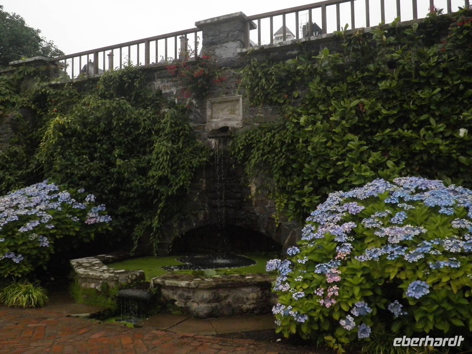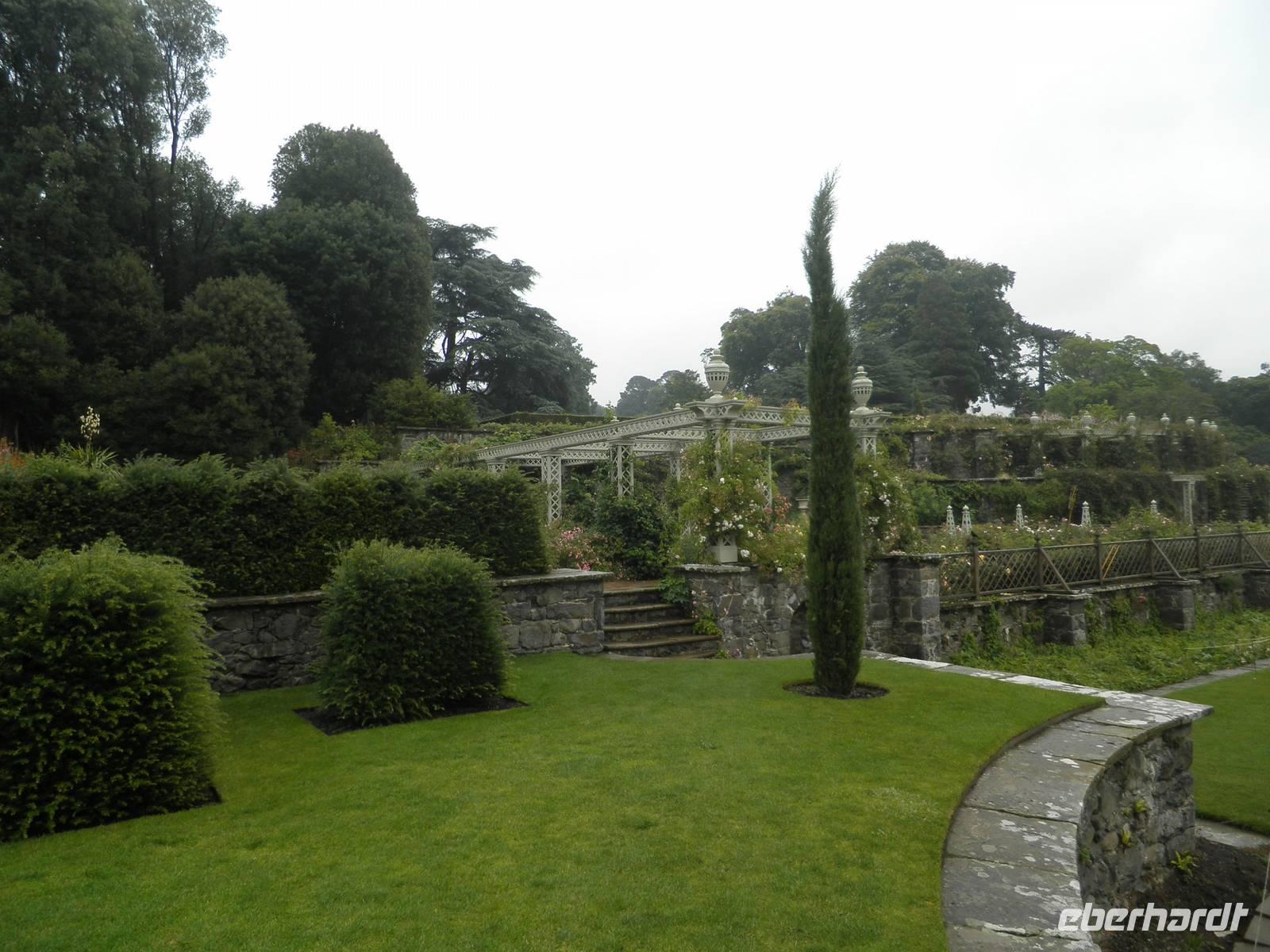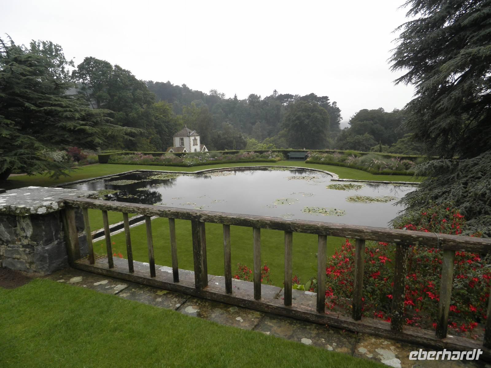 Am Morgen verließen wir zunächst Caernarfon und fuhren entlang der Küste bis Conwy, bogen in den Nationalpark ab und erreichten bald Bodnant Garden, einen der schönsten und abwechslungsreichsten Gärten in Wales. Wir spazierten durch die gepflegte Anlage, sahen symmetrisch angelegte Gartenteiche, üppige Blumenpracht und blühende Büsche. Nach einem erholsamen Vormittag im Garten fuhren wir zunächst auf die Insel Anglesey, den nordwestlichsten Punkt von Wales. Wir sahen die beeindruckende Hängebrücke über die Menai Street, die der berühmte Baumeister Thomas Telford im Jahre 1826 fertigstelle. An einem Aussichtspunkt konnten wir seine Brücke und die in der Nähe befindliche Britannia Bridge bewundern, über die zweite waren wir ein paar Minuten zuvor gefahren, um auf die Insel zu gelangen. Am Bahnhof in Llanfair PG, das ist die offizielle Abkürzung des Ortsnamens bestehend aus 58 Buchstaben, staunten wir nicht schlecht über die langen Schilder mit dem Ortsnamen darauf: Llanfairpwllgwyngyllgogerychwyrndrobwllllantysiliogogogoch
