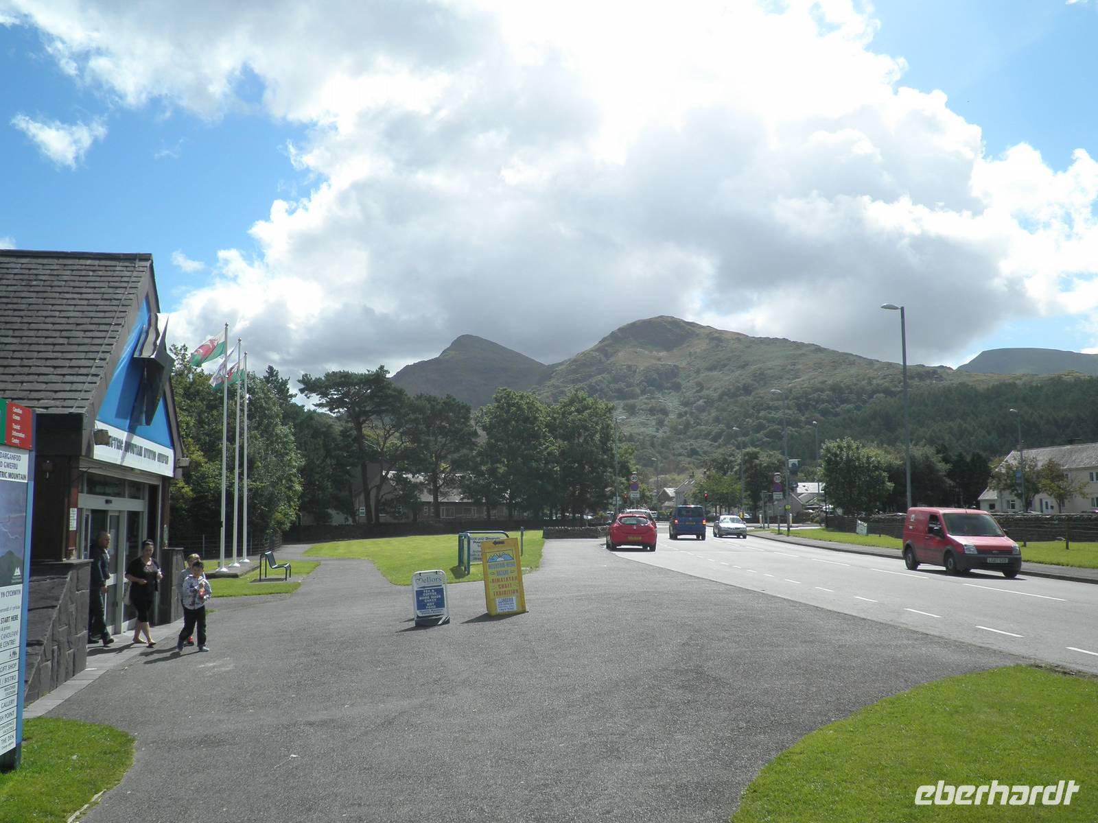 Am frühen Morgen brachen wir auf und fuhren nach Llanberis. Dieser Ort, der einst mitten im Zentrum des walisischen Schieferabbaus lag, bietet seinen Besuchern eine ganz besondere Attraktion: eine Zahnradbahn hinauf auf den höchsten Gipfel von Wales, auf den Snowdon, der mit einer Höhe von 1085 Metern die anderen Gipfel des Snowdonia Nationalparks