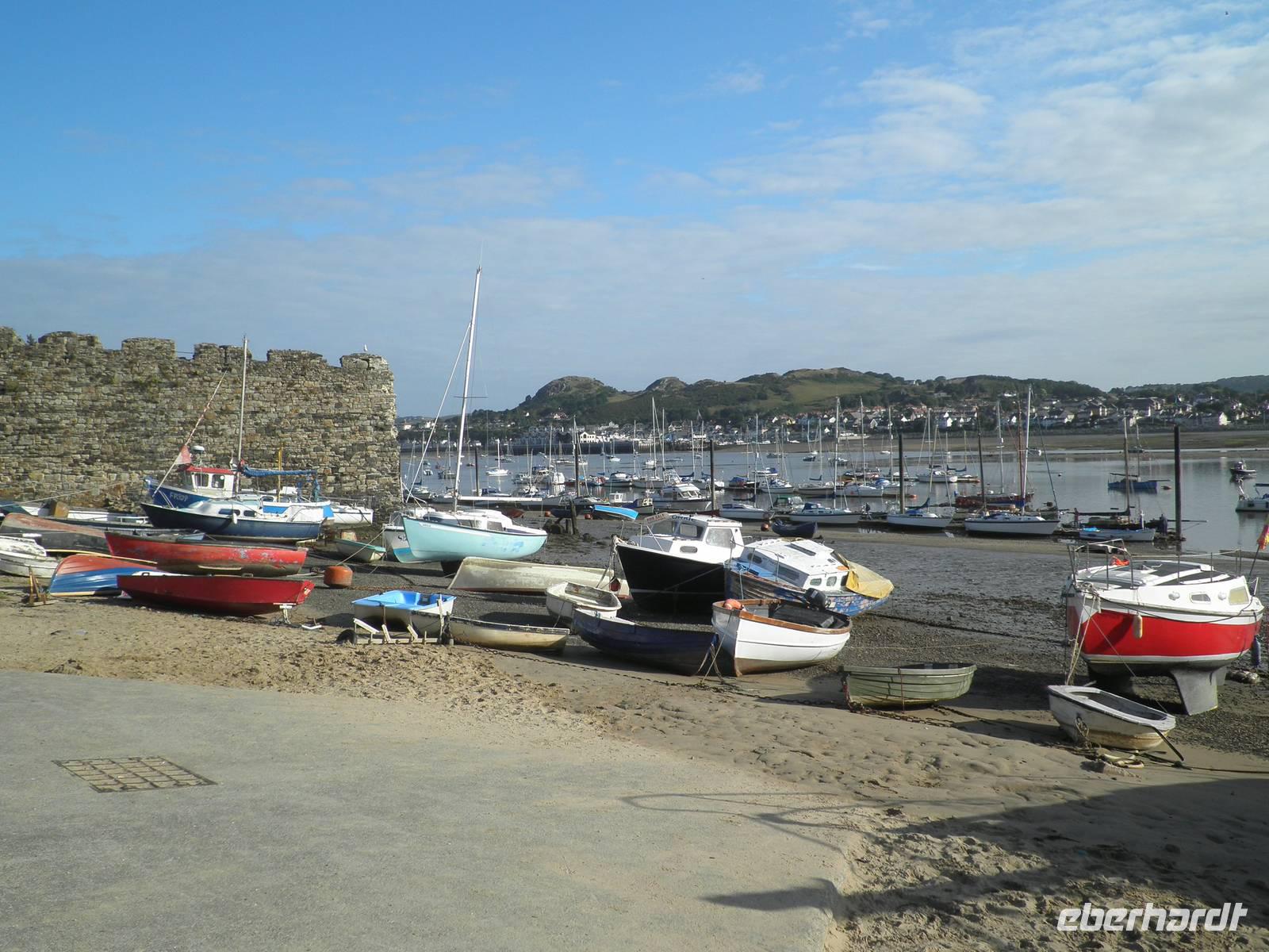 Wir erstanden einige walisische Souvenirs, bevor wir die Insel Anglesey wieder verließen, um aufs Festland nach Caernarfon zurückzukehren. Zunächst besichtigten wir das Castle, in dem Prinz Charles im Jahr 1969 zum Prinzen von Wales gekrönt worden ist. Wir bestiegen die Burgmauern und Wehrtürme, genossen die Aussicht über die Stadt und das Castle. Danach hatten wir Freizeit in Caernarfon. Wir schlenderten durch die Gassen der kleinen Stadt und kauften ein paar Andenken an unseren Urlaub in Wales. Am Abend trafen wir uns in unserem Hotel wieder zum Abendessen. Den restlichen Abend beschlossen wir bei einem Glas Bier in einem gemütlichen Pub am Kai.