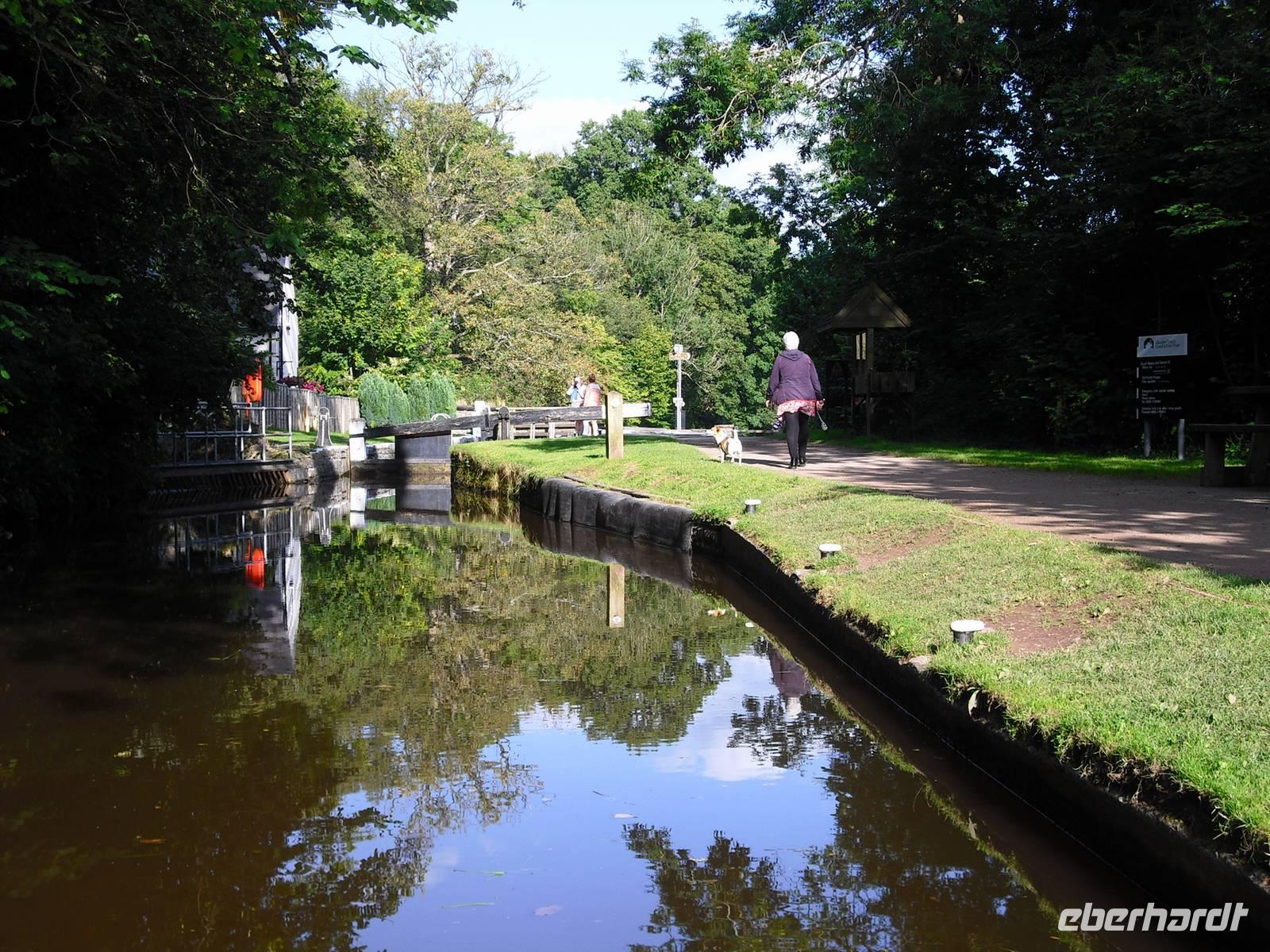 Der zweite Teil des Nachmittags gehörte einer gemütlichen Bootsfahrt auf dem Monmouthshire and Brecon Canal mitten in der schönen Natur des BRECON BEACONS NATIONAL PARK. Der Kanal wurde als Teil eines ganzen Systems 1796 begonnen zu bauen und erst 1812 erfolgte mit der Verbindung zum Monmouthshire Canal die Fertigstellung. Die ersten Jahre waren wirtschaftlich erfolgreich, denn es wurde nun mit Schiffen Eisen, Kohle und Gestein transportiert. Man sagt: Ein Mann kann 50 kg, ein Pony 200 kg, ein Pferdewagen 1000 kg und eine Barke 20000 kg bewegen. Dann jedoch kam die Eisenbahn als Konkurrenz. Schlußendlich wurde der Kanal ab 1933 einfach vernachlässigt und erst 1968 begann durch BRITISH WATERWAYS eine Restauration. 1997 ist in Brecon das Bassin fertiggestellt worden, unsere Einstiegsstelle. Heute befahren viele private Boote und auch zu mietende Boote ( unser Narrow Boat ) den Kanal entlang einer zauberhaften Landschaft.