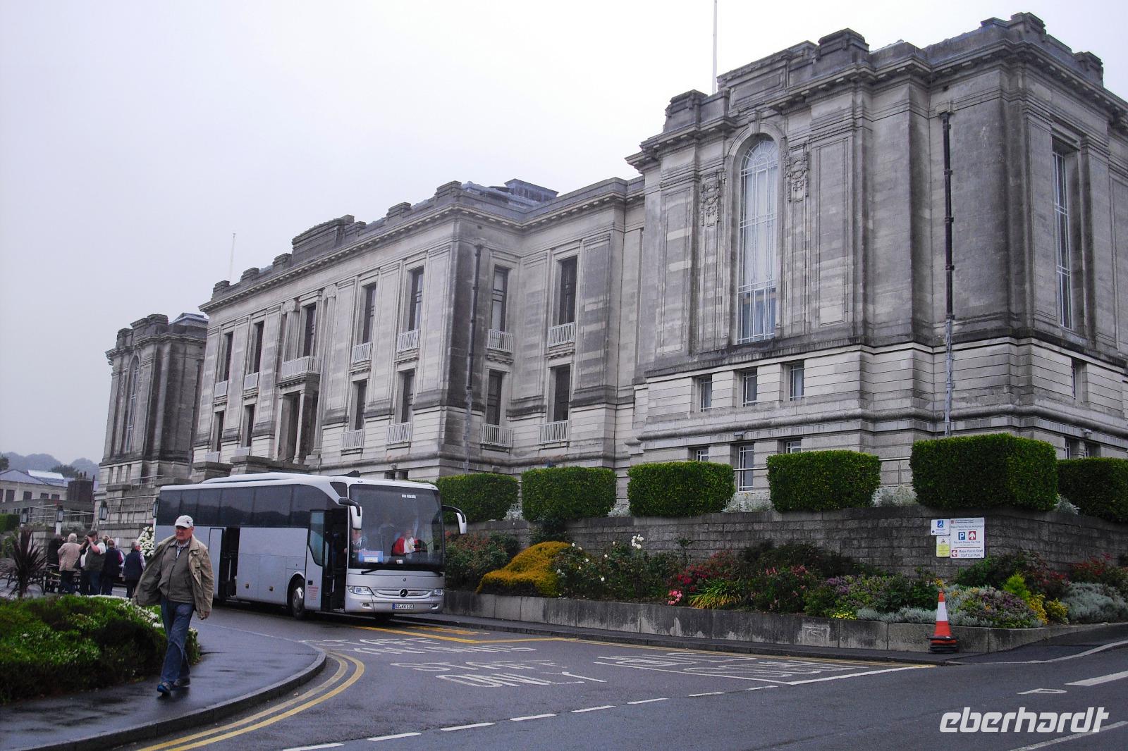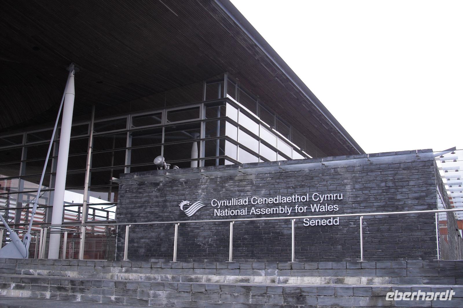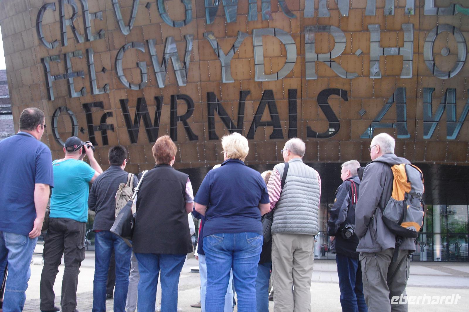 Ein nebliger und regnerischer Tag begann für uns nach dem walisischen Frühstück. Wir wollten zunächst etwas mehr von der Stadt sehen. Hier soll doch schließlich die walisische Nationalbibliothek sein und so fuhren wir erst einmal zur attraktiven Uferpromenade und dann zum Hauptgebäude der Nationalbibliothek. Einen Fotostopp legten wir auch in Machynlleth ein, denn hier tagte in der walisischen Geschichte ein letztes Mal das Parlament.