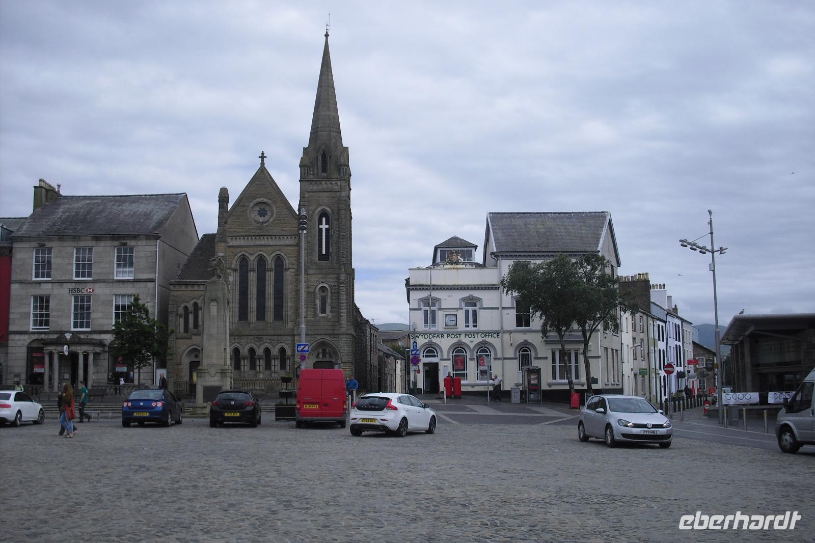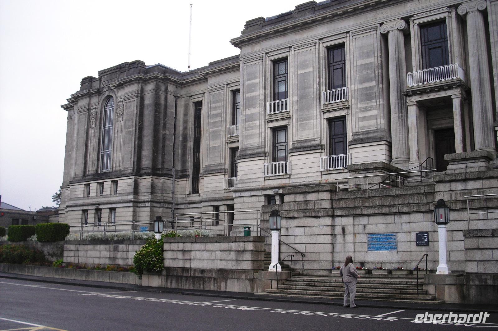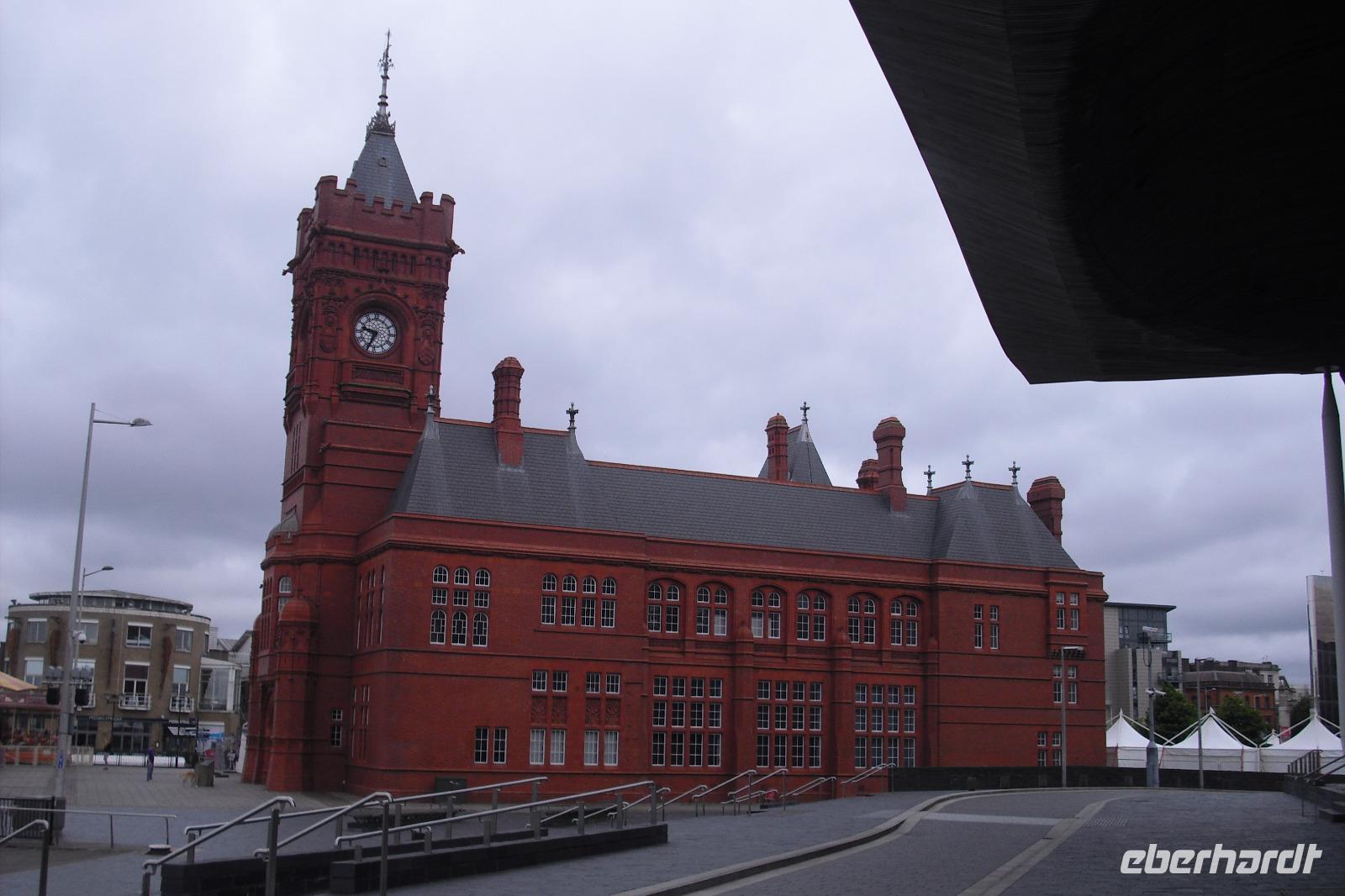 Ein nebliger und regnerischer Tag begann für uns nach dem walisischen Frühstück. Wir wollten zunächst etwas mehr von der Stadt sehen. Hier soll doch schließlich die walisische Nationalbibliothek sein und so fuhren wir erst einmal zur attraktiven Uferpromenade und dann zum Hauptgebäude der Nationalbibliothek. Einen Fotostopp legten wir auch in Machynlleth ein, denn hier tagte in der walisischen Geschichte ein letztes Mal das Parlament.
