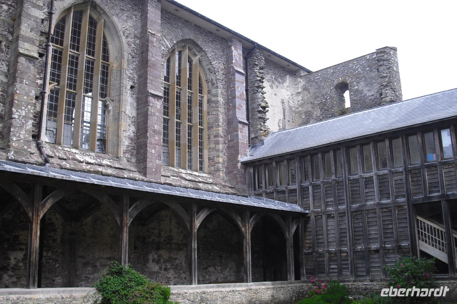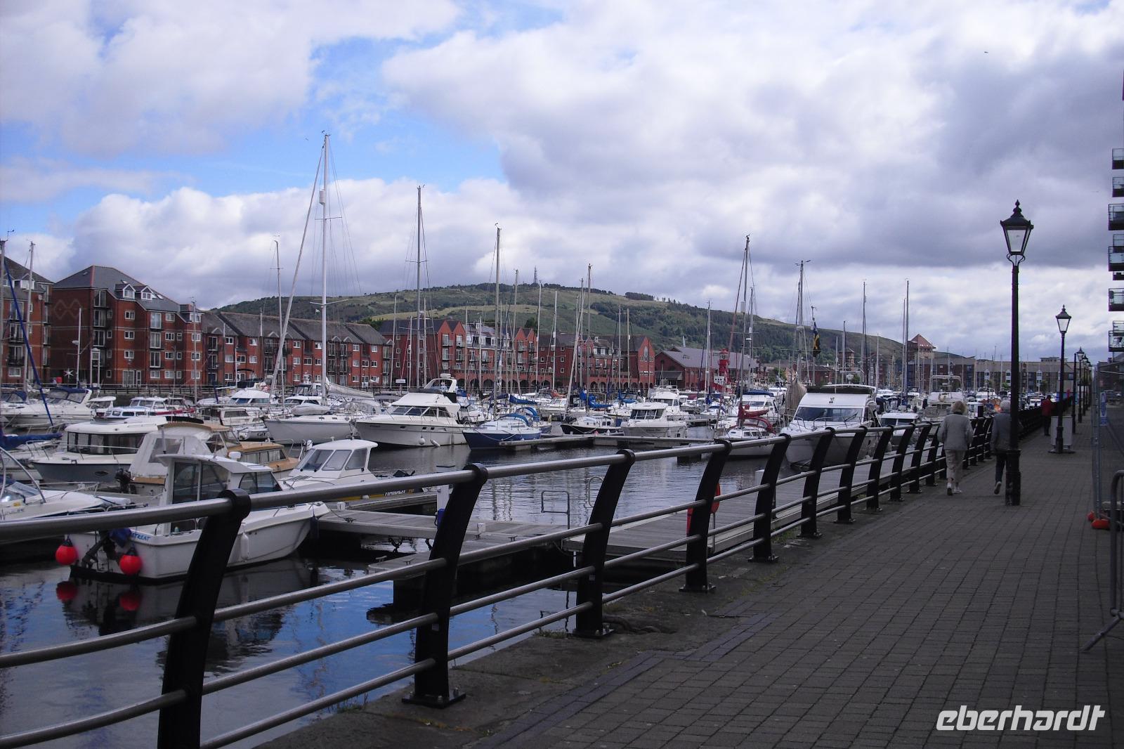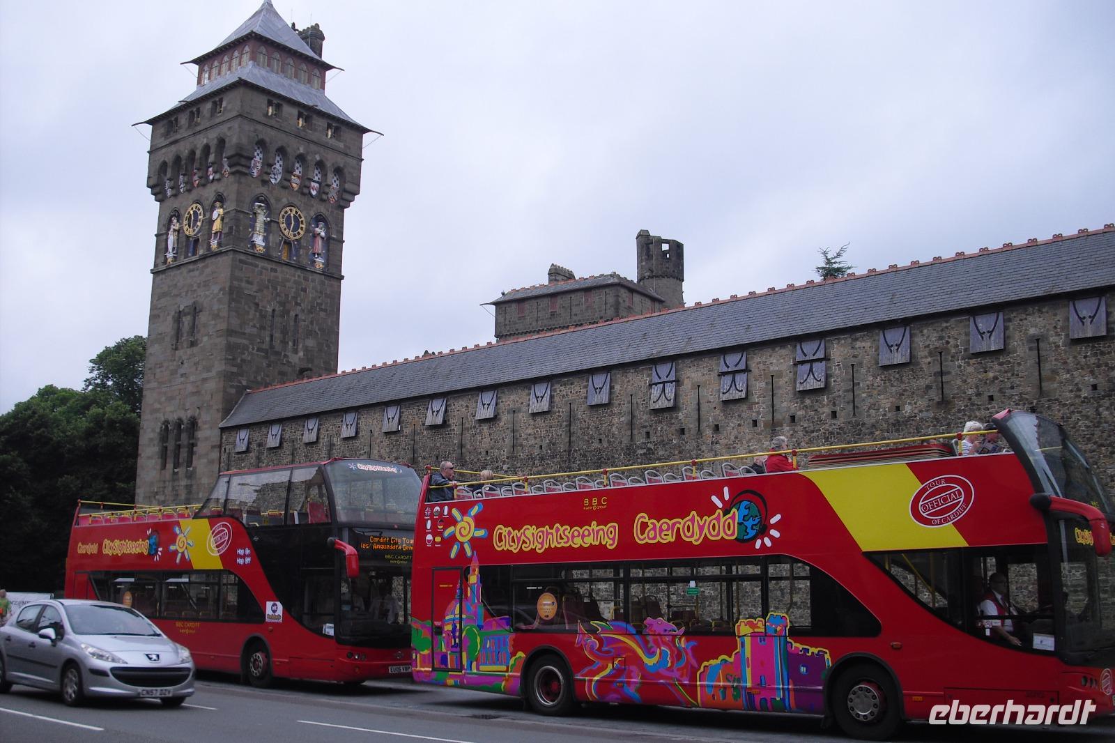 Ein erstes walisisches Frühstück und im Anschluß ging es mit Tony zur Stadtrundfahrt/zum Stadtrundgang. Während der Rundfahrt sahen wir das Millenium Stadion, den Bute Garten, die Burg, das alte Rathaus, das Nationalmuseum und während des Rundganges das kulturelle Millenium Centre, das alte Hafengelände mit dem Gebäude der walisischen Nationalversammlung, der norwegischen Kirche und das ehemalige Büro von Mr. Bute in Form des Roten Rathauses in Berlin. Tony begleitete uns auch noch durch den verkehrsberuhigten Teil im Zentrum und gab Tipps für einen Mittagsimbiss. Anschließend fuhren wir nach Hay-on-Wye, der berühmten Bücherstadt. Dieser Ort ist ein fast einzigartiges Antiquariat.