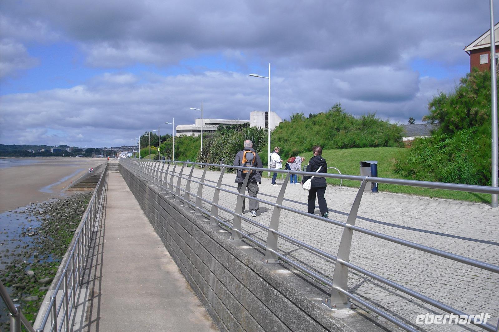 Erneut ein walisisches Frühstück und ein neuer Tag konnte beginnen. Erstes Ziel war die zweitgrößte Stadt von Wales - Swansea. Hier sucht man Cockles-kleine Herzmuscheln, die eine teure aber leckere Spezialität sind. Hier speist man zum Frühstück Laverbread - gerösteter Seetang. Hier sucht man die Spuren von Dylan Thomas, der am 27.10.1914 in Swansea geboren wurde. Und wir wurden fündig. Seine Statue am Hafen, gleich daneben das Dylan Thomas Theatre und nur wenige Schritte entfernt das Dylan Thomas Centre. Auch sein Geburtshaus hat man zwischenzeitlich hergerichtet und für die Öffentlichkeit zugänglich gemacht. Am Hafen von Swansea sind in einstige Speicherhäuser Pubs, Restaurants und andere Geschäfte eingezogen und die Umgebung ist zu einem angenehmen Erholungsgebiet umgestaltet worden. Anschließend fuhren wir nach Laugharne. Hier verbrachte Dylan Thomas die letzten vier Lebensjahre. Wir besuchten sein Grab und der Reiseleiter trug uns aus Erinnerungen und Geschichten von Dylan Thomas das Kapitel LAUGHARNE vor. Wir fanden auch sein Boathouse und seinen Schreibschuppen sowie Brown´s Hotel. In diesem holte er sich viele Anregungen für seine Prosa und Lyrik. Dylan Thomas war besessen vom Auftrag des Schriftstellers: "Es gibt nur eine Stellung für einen Künstler, ganz gleich wo: aufrecht" .