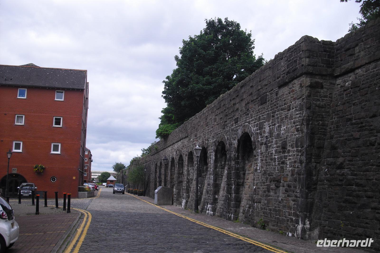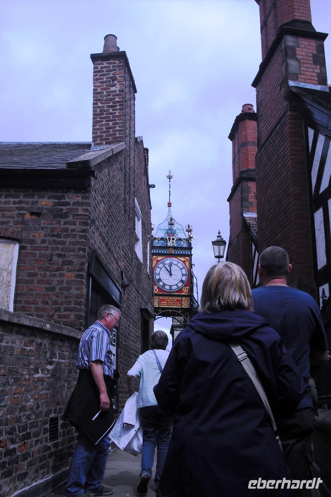 Ein letztes walisisches Frühstück auf dieser Reise und dann starteten wir nach Conwy. Hier parkten wir in der Nähe der mächtigen Stadtmauer und der mächtigen Burganlage, die auch auf Befehl von König Eduard I. gebaut wurde. Conwy Castle wurde von etwa 1500 Arbeitern in nur 5 Jahren errichtet. Wir standen aber auch vor dem kleinsten Haus von Großbritannien und es entstand hier noch ein Gruppenfoto. Das Haus ist 2,70 m hoch und 1,5 m breit. Nach dem kleinen Sonntagsspaziergang als Abschied von Wales fuhren wir nach Chester, eine von den Römern gegründete Stadt am River Dee und schon in England gelegen.