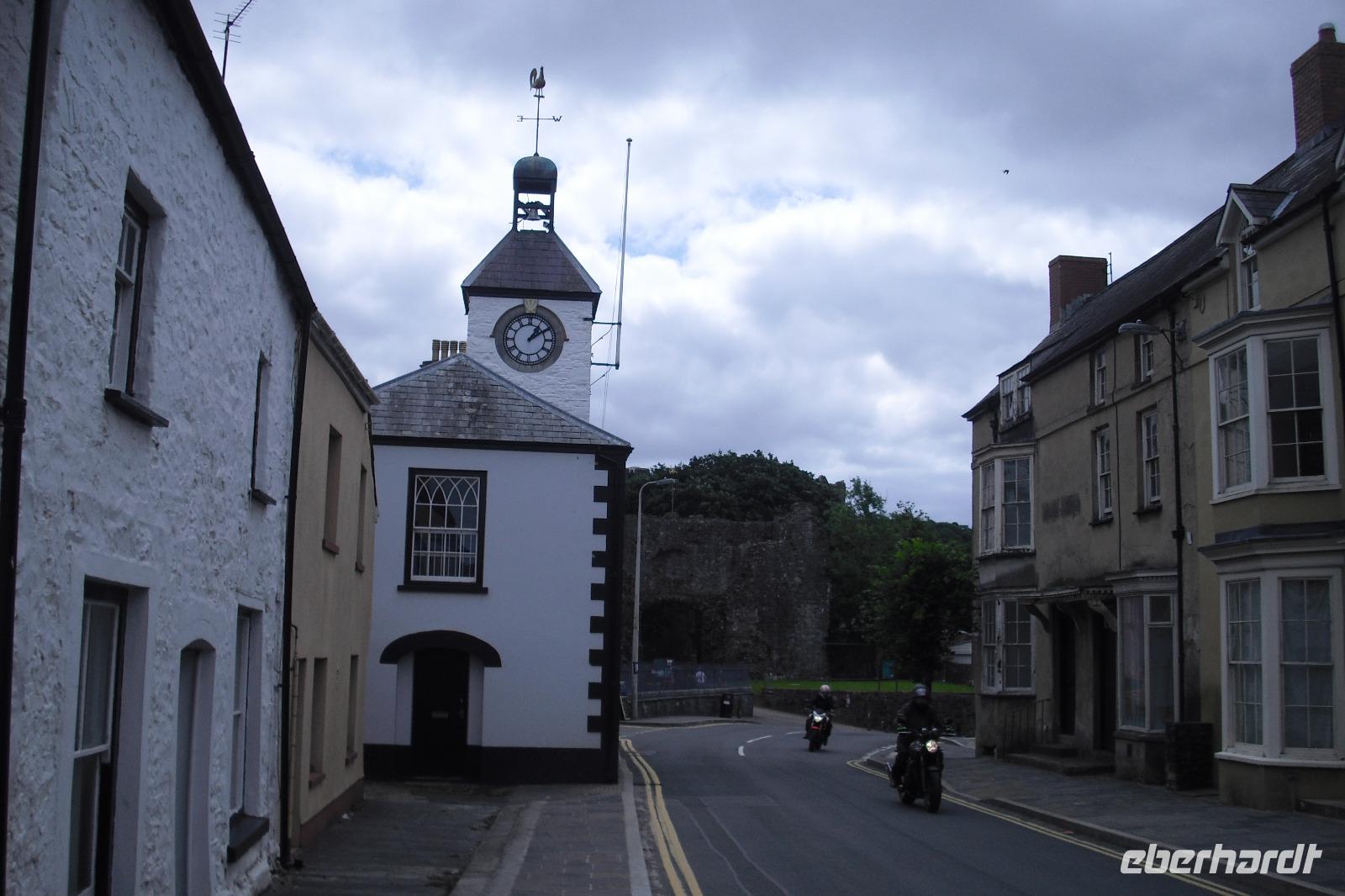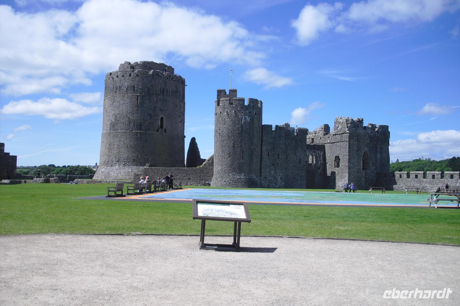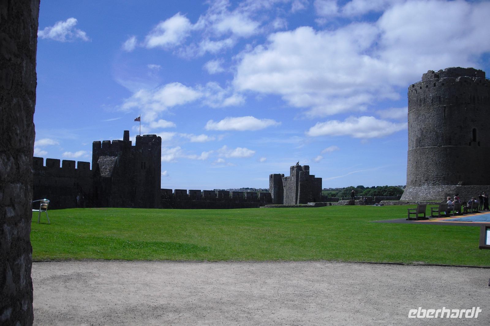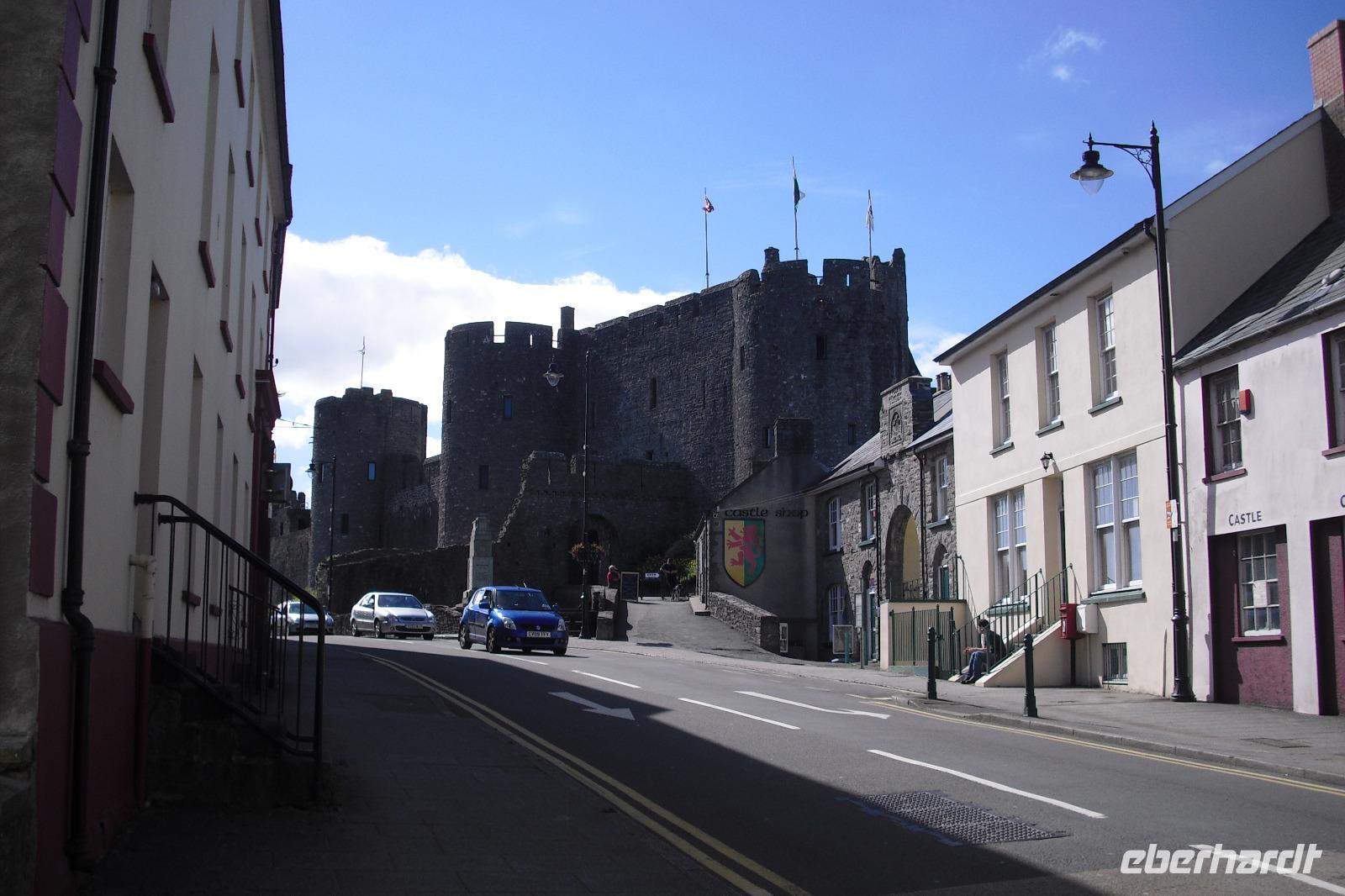 Pembroke war das Nachmittagsziel. Gelegen an einer riesigen natürlichen Bucht und von Admiral Nelson einmal als größter Naturhafen der Welt bezeichnet, ist es ein kleiner, verschlafener Ort mit einer mächtigen Burganlage. Schon kurz nach der normannischen Invasion von 1066 wurde eine erste Befestigung erbaut, die im Laufe der Jahrhunderte immer weiter ausgebaut wurde. Wir besichtigten Pembroke Castle und noch heute beindruckt vor allem der 25 m hohe Bergfried mit seinen fast 6 m dicken Mauern.