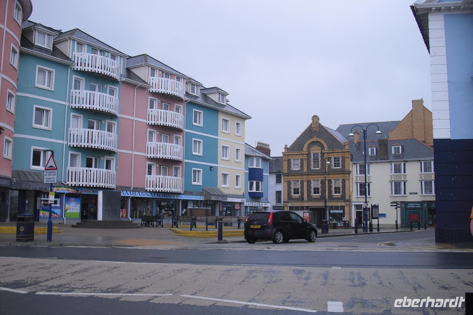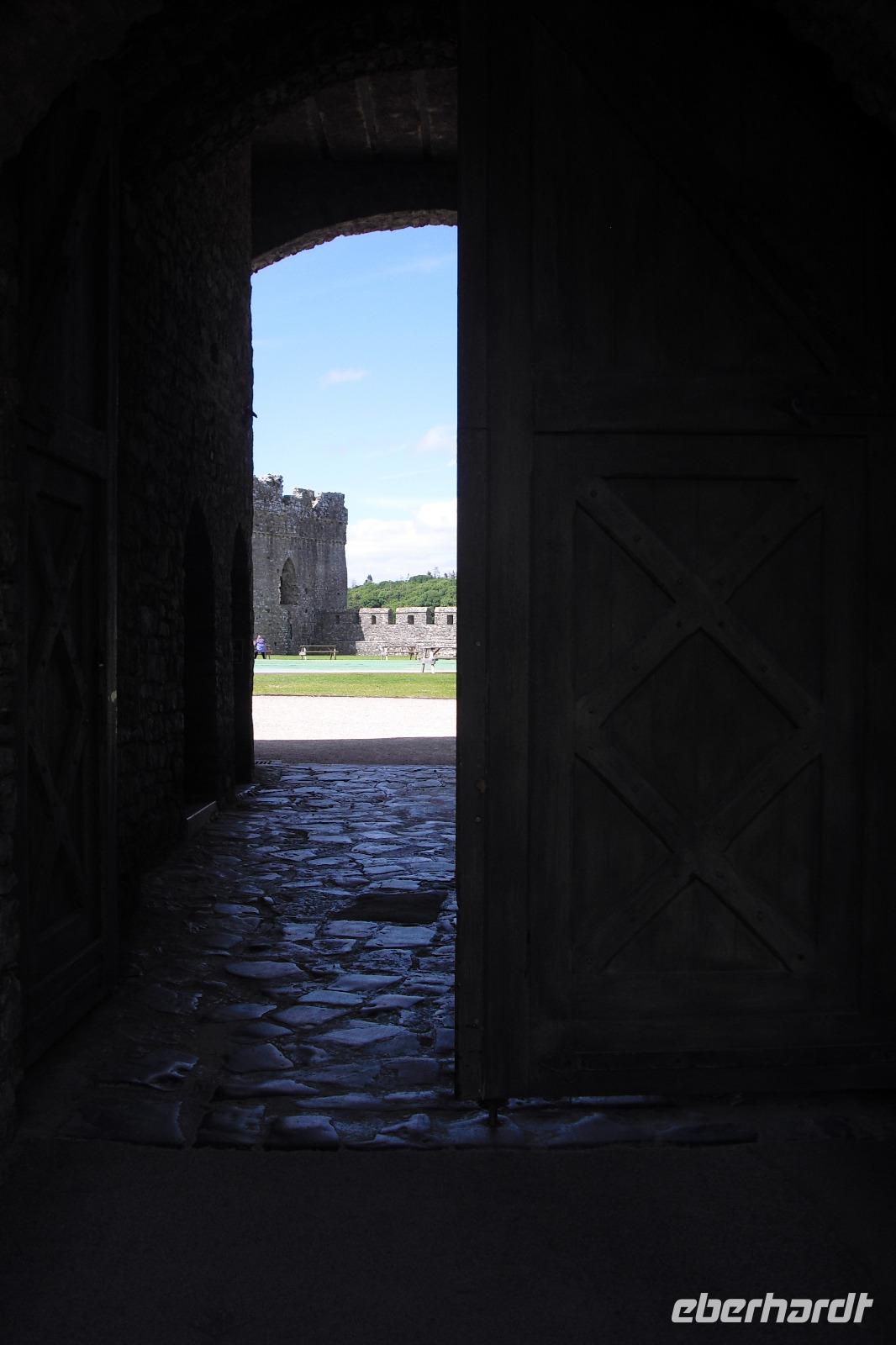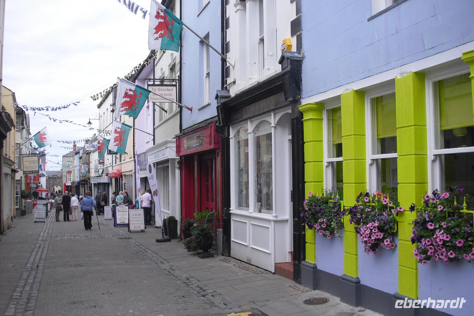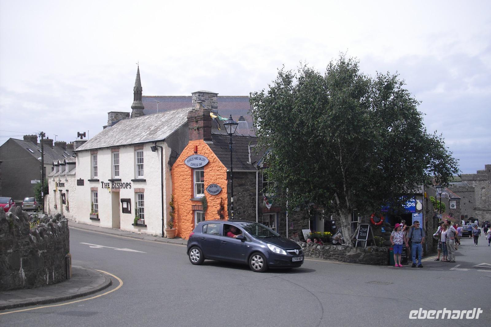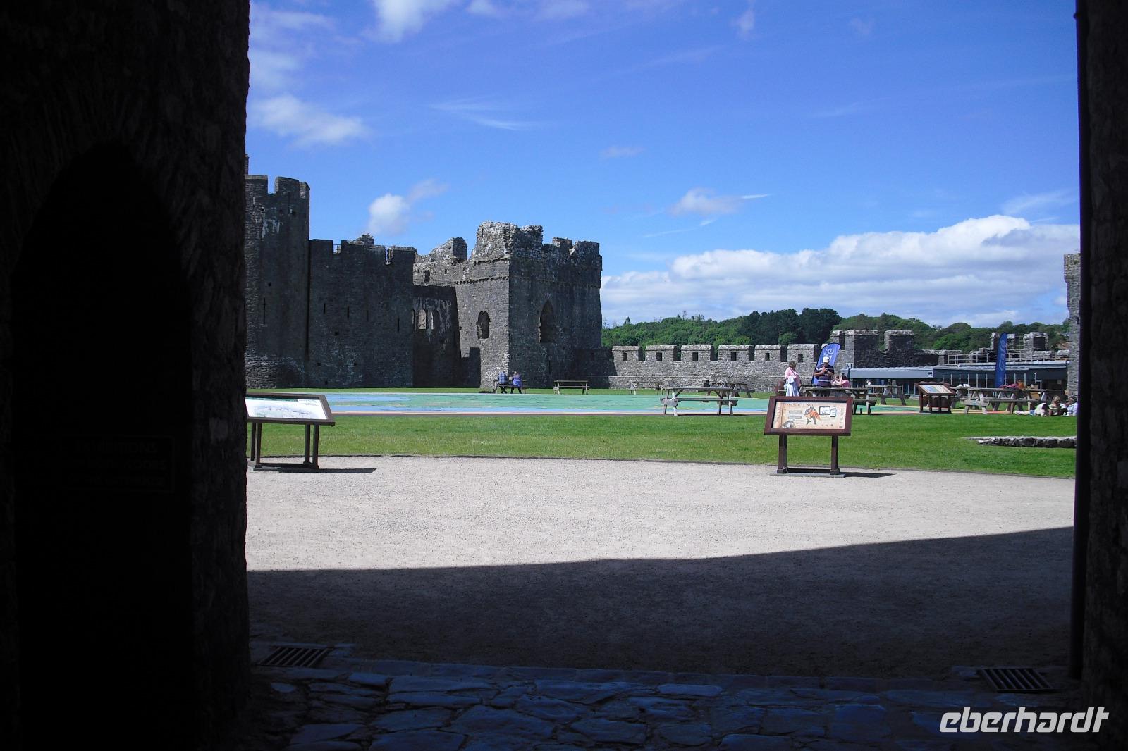 Pembroke war das Nachmittagsziel. Gelegen an einer riesigen natürlichen Bucht und von Admiral Nelson einmal als größter Naturhafen der Welt bezeichnet, ist es ein kleiner, verschlafener Ort mit einer mächtigen Burganlage. Schon kurz nach der normannischen Invasion von 1066 wurde eine erste Befestigung erbaut, die im Laufe der Jahrhunderte immer weiter ausgebaut wurde. Wir besichtigten Pembroke Castle und noch heute beindruckt vor allem der 25 m hohe Bergfried mit seinen fast 6 m dicken Mauern.