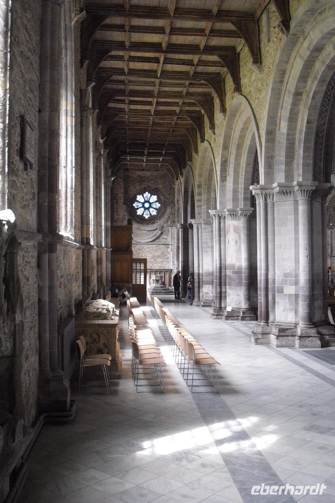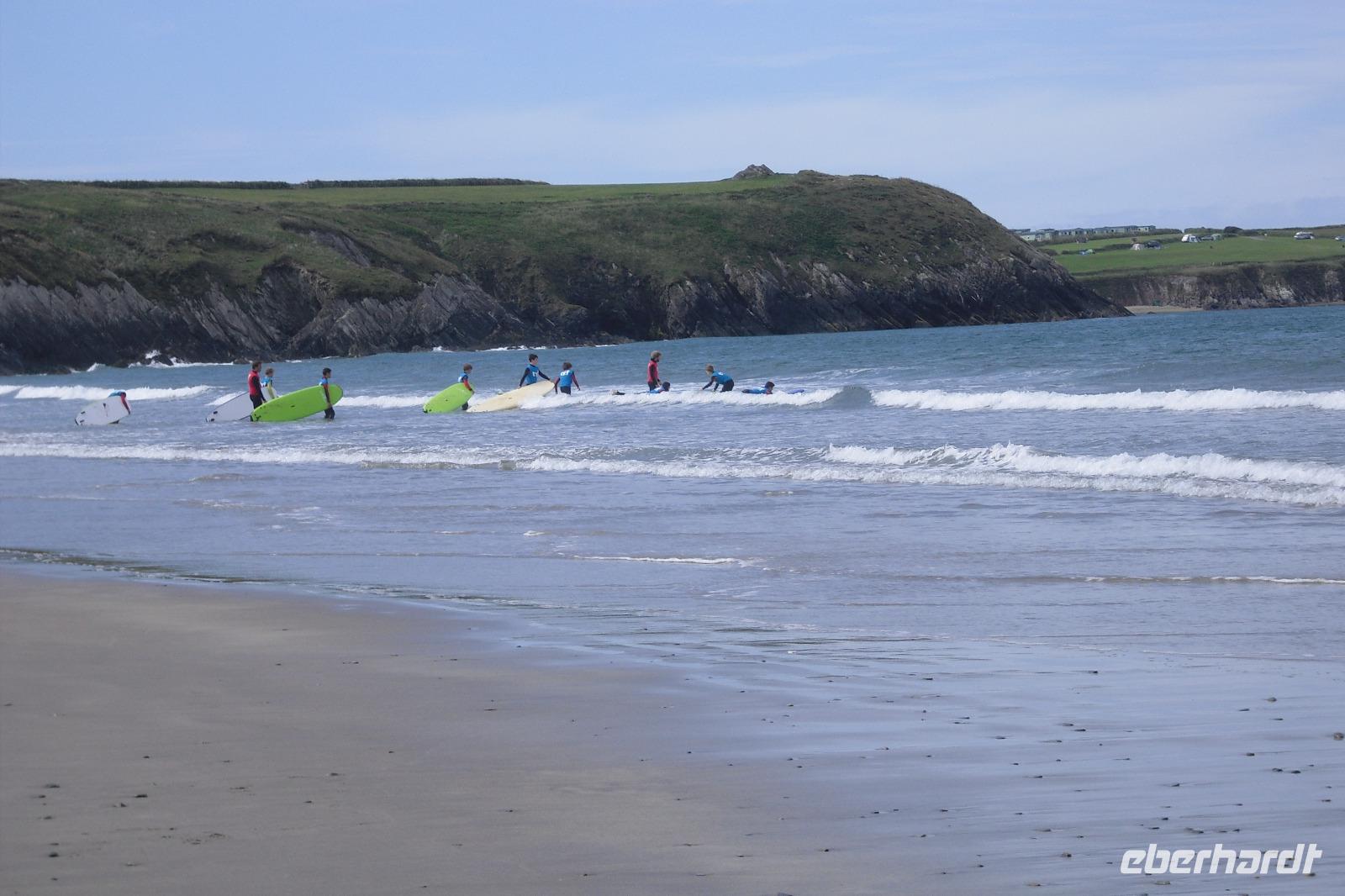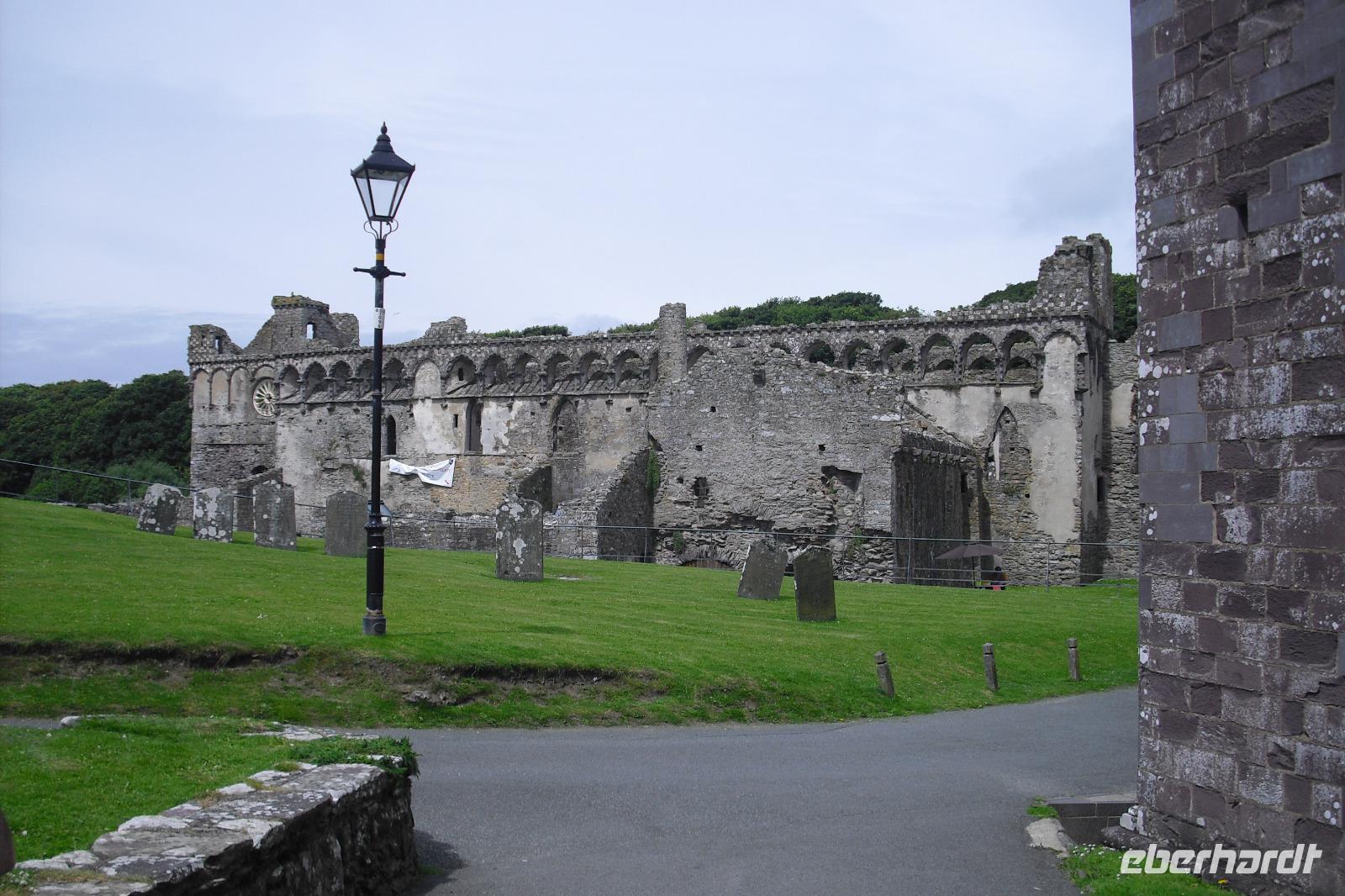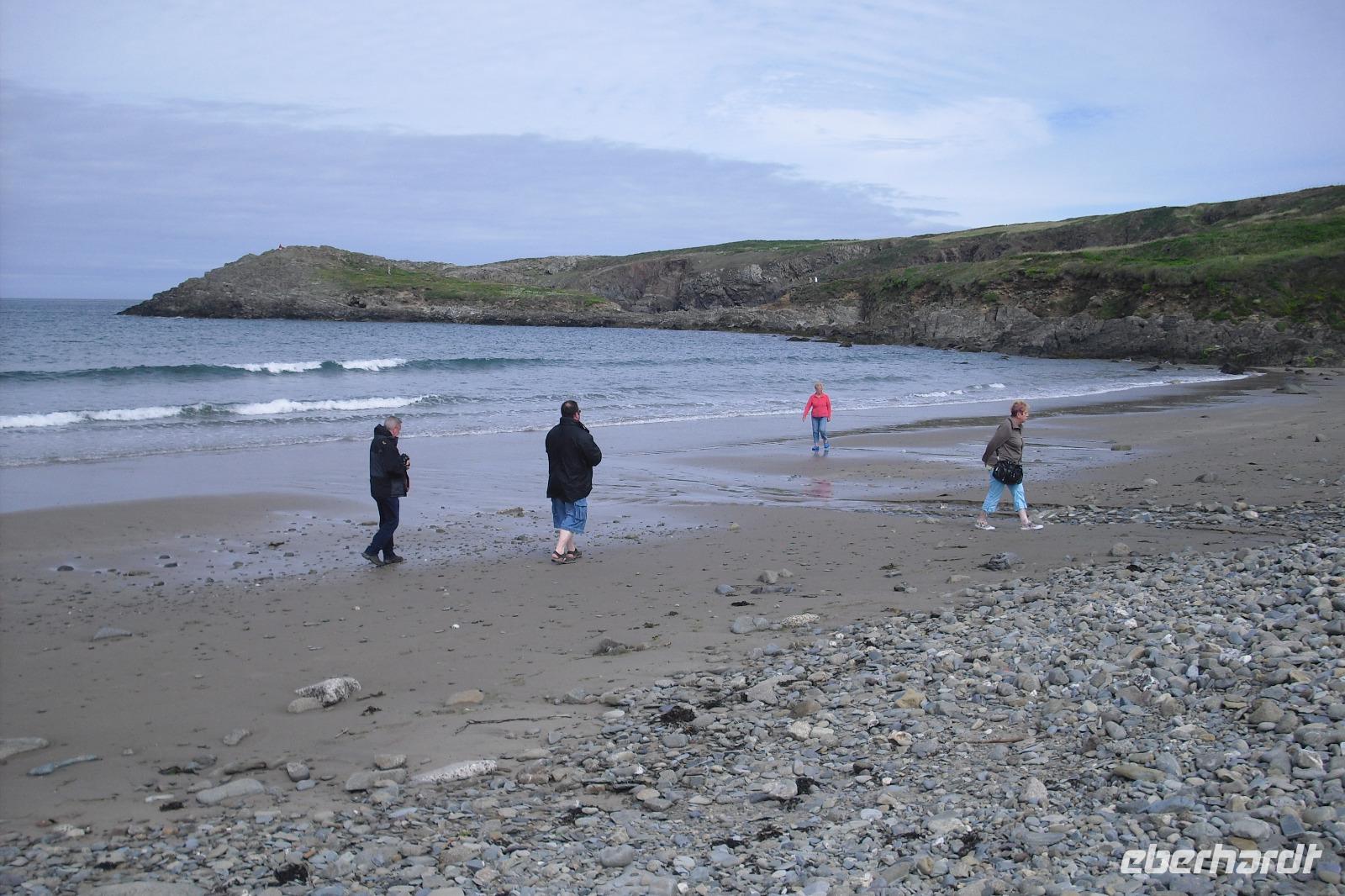 Nach dem Frühstück und bei schönem Wetter sind wir zunächst in den Pembrokeshire Nationalpark gefahren. Nach einem ersten Fotostopp in Newgale fuhren wir zum White Sand Beach und konnten nun, eingebettet in eine herrliche walisische Küstenlandschaft, ein wenig wandern gehen oder auch die Wassertemperatur prüfen. Andere machten einen schönen Strandspaziergang. Nach unserem Aufenthalt an der Küste besichtigten wir die St. David´s Kathedrale. Sie liegt tief in den Flußauen des River Alun und wurde in ihrer heutigen Gestalt 1176 zu bauen begonnen. Die Kathedrale ist das letzte große Gotteshaus in Großbritannien, das noch im normannischen Stil errichtet wurde. An ihrer Stelle gründete der walisische Nationalheilige zuvor eine erste Kirche und von hier aus wurde Wales und Cornwall missioniert. Das Todesjahr des heiligen David wird um 588 vermutet. Seit 1400 ist St. David´s ein Wallfahrtsort. Neben der Kathedrale stehen noch die prachtvollen Ruinen des ehemaligen Bischofspalastes. Nach der Mittagspause und einem Stopp in Aberaeron besuchten und besichtigten wir die Westminster Abtei von Wales - Strata Florida Abbey. Einst, bis zum 15.Jh. ein Zisterzienserkloster und dann aufgelöst, wurden hier walisische Fürsten ernannt und beigesetzt. Von dem einstigen Glanz des Kirchenbauwerkes zeugt heute noch das Westportal.