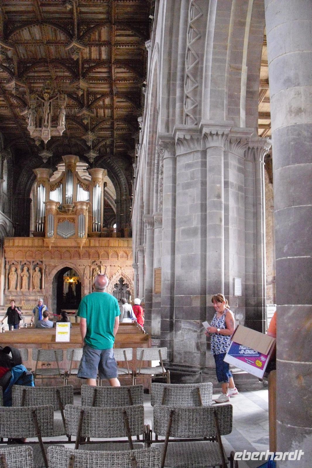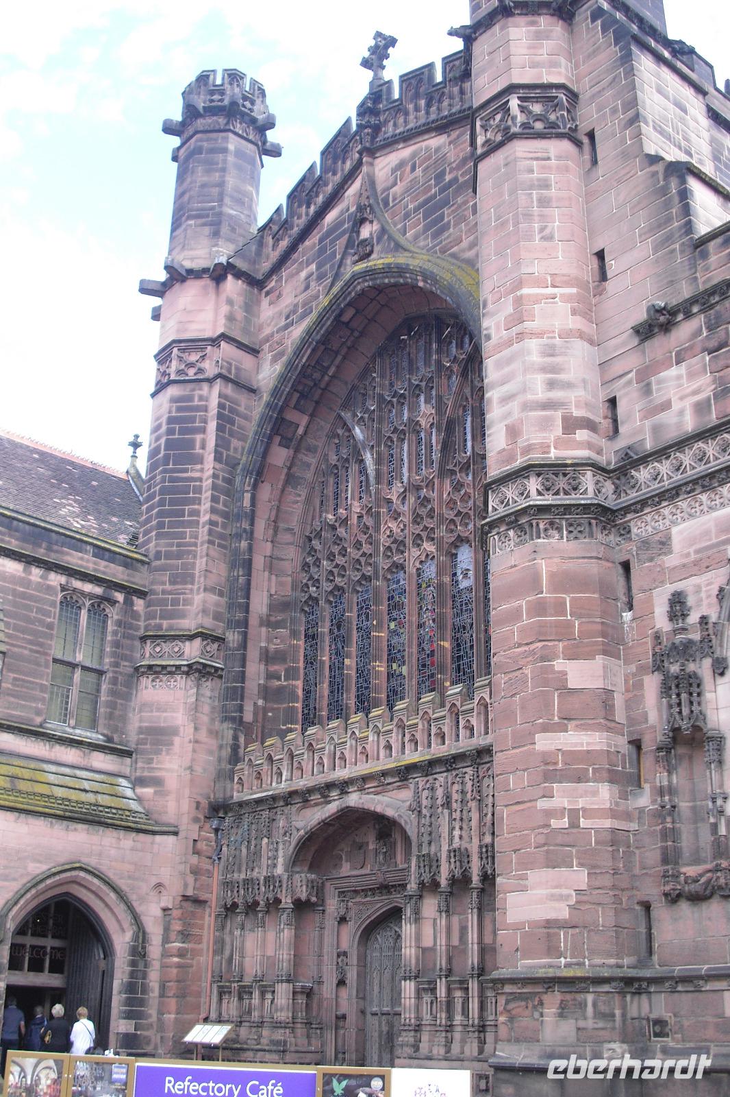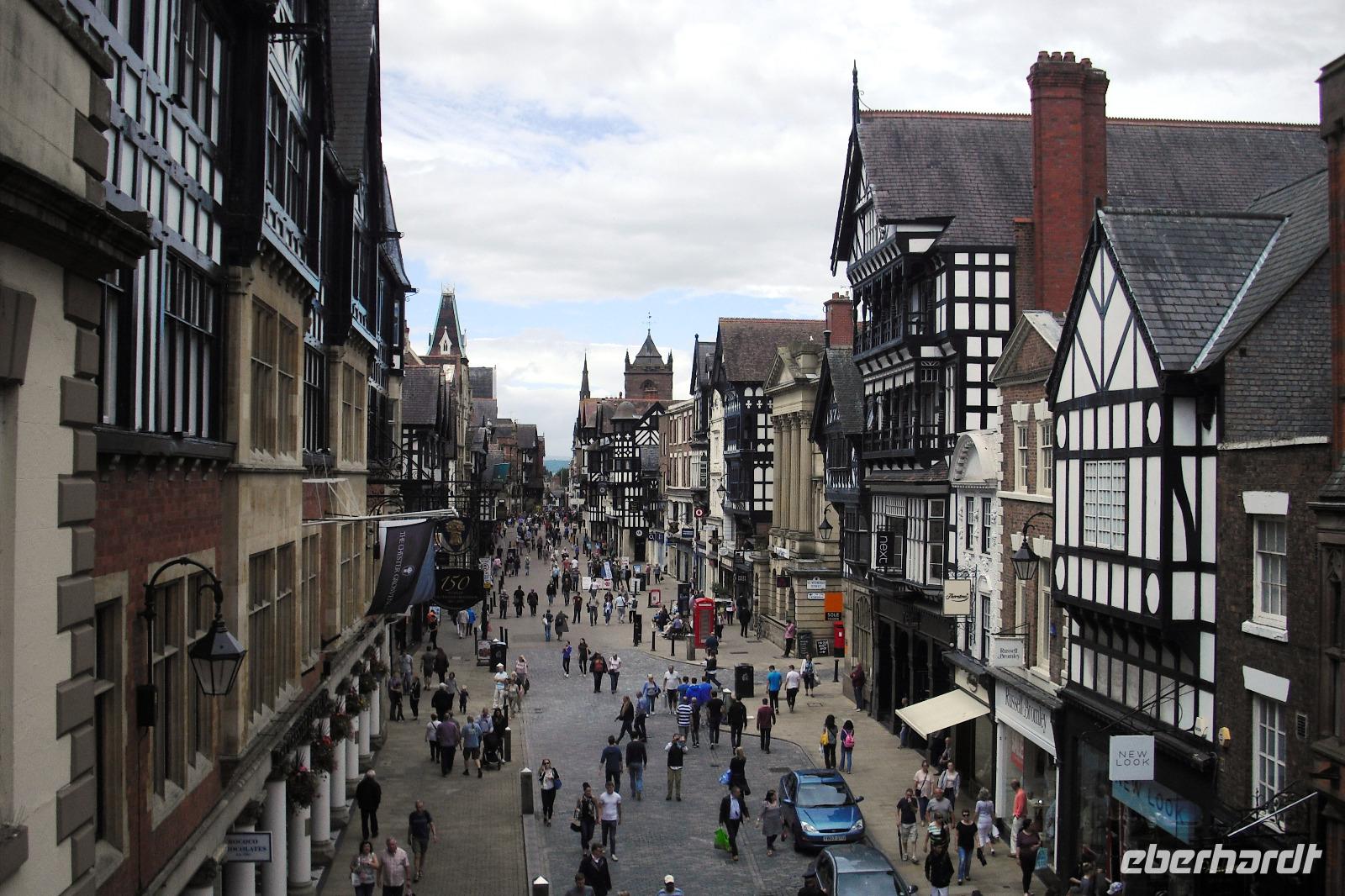 Chester hat Flair und das nun wieder gute Begleitwetter verstärkte das noch. Im Zentrum fanden wir noch eine Menge schwarz-weißer Fachwerkhäuser und deren Besonderheit, die sogenannten Rows. Das sind Galerie-Arkaden im ersten Stock. Die vielen Häuser im Tudorstil gehören wohl zu den schönsten, die Großbritannien noch zu bieten hat. Wir spazierten auch auf der fast komplett erhaltenen Stadtmauer entlang, deren Ursprünge auf die Römer zurückgehen. Viele besuchten die Kathedrale von Chester und andere bewunderten das Rathaus bzw. das quirlige Leben im Fußgängerbereich. Nach unserem Aufenthalt in Chester verabschiedeten sich die Flugreisegäste in Manchester von uns und wir fuhren zum Fährhafen nach Kingston-upon-Hull. Hier erwartete uns das Fährschiff schon und hier gab es auch bald unser Abendessen. Man konnte nach dem Abendessen noch die vielen Unterhaltungsmöglichkeiten nutzen, die Romantik auf dem Außendeck geniessen oder einfach nur in der gebuchten Kabine zur Ruhe kommen.