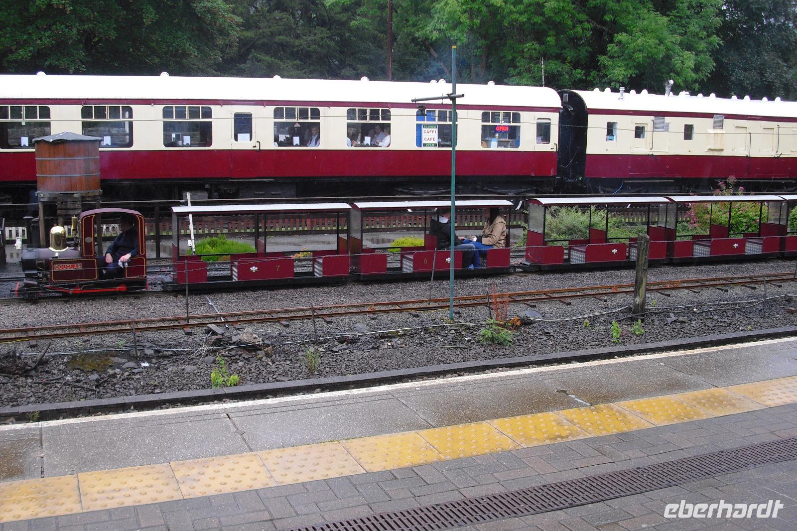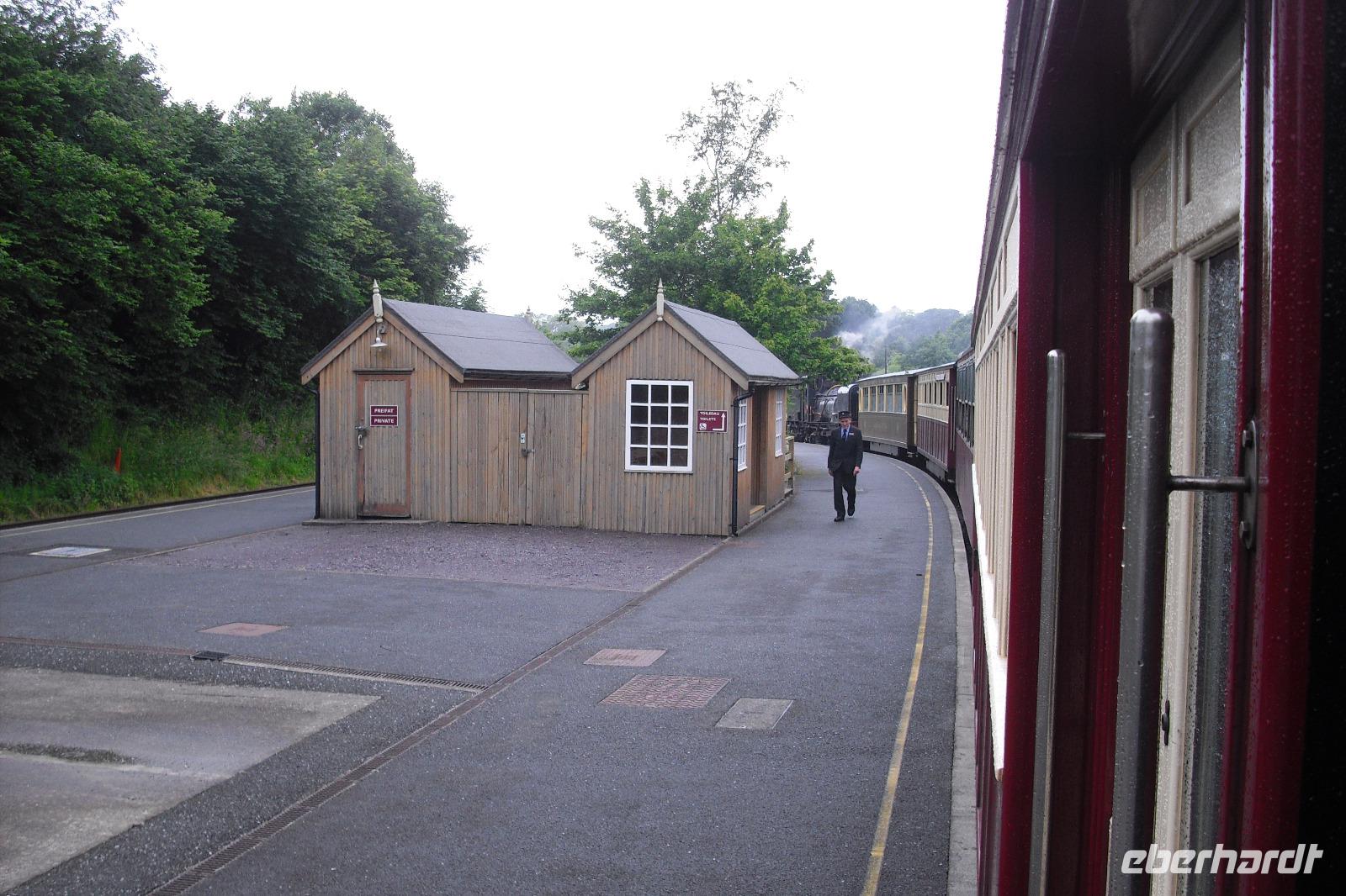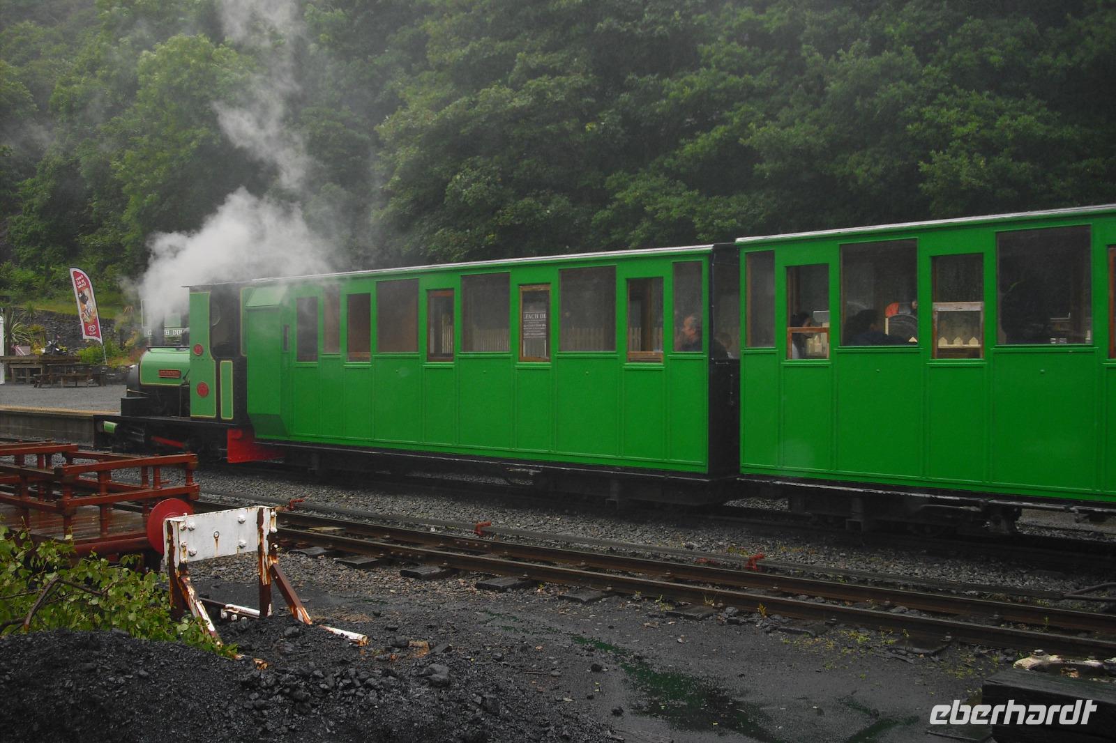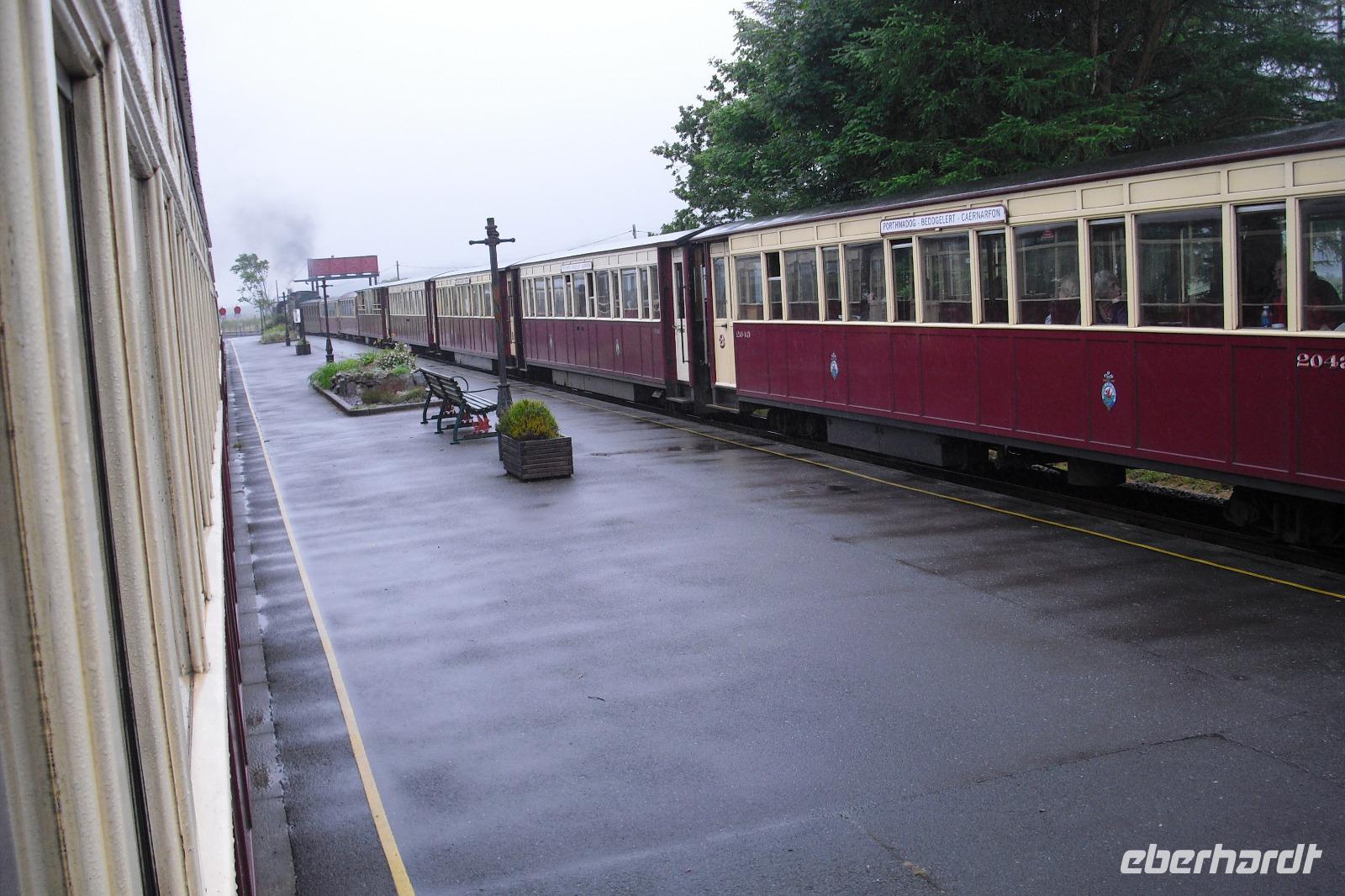 Nun aber ging es nach Porthmadog. Hier wollten wir mit der Welsh Highland Railway durch den Snowdonia Nationalpark nach Caernarfon fahren und machten es auch. Über Flüsse, Viadukte und durch Täler hatten wir eine kurzweilige Fahrt durch den Norden von Wales. Die Bahnlinie ist erst seit kurzer Zeit auf dieser gesamten Strecke wieder geöffnet. In jahrelanger Arbeit hat man die ehemalige Strecke für den Transport von Gütern für Touristen wieder aufgebaut.