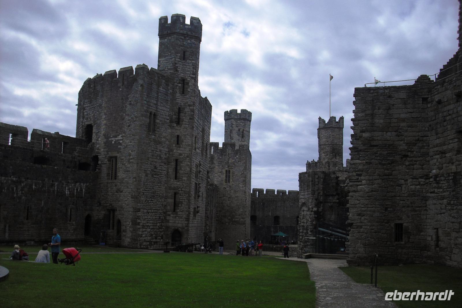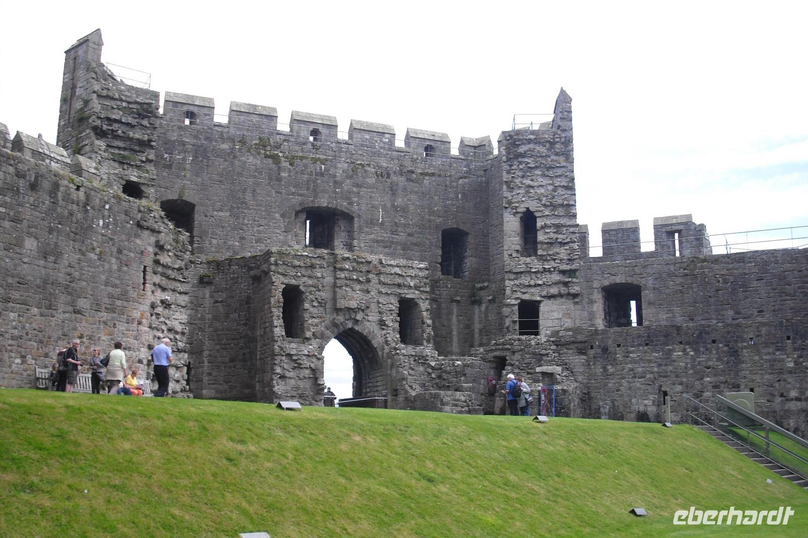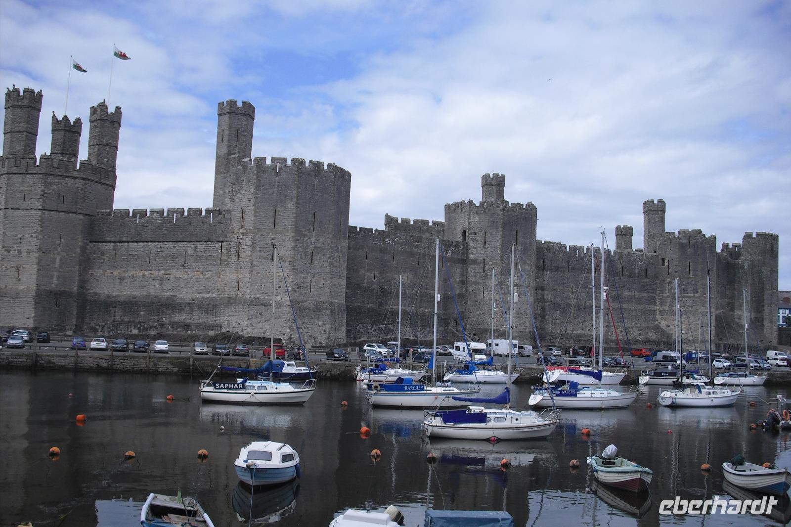 Der Nachmittag war dem Besuch von Caernarfon Castle gewidmet. Das Bauwerk wurde auf Befehl des englischen Königs Eduard I. (1272-1307) 1283 begonnen zu bauen. Bis in das späte 13.Jh. konnten die walisischen Fürsten das Territorium halten, dann führte 1282 Eduard I. zum zweiten Mal innerhalb von 5 Jahren Krieg in Wales und es wurde der walisische Prinz Llywelyn ap Gruffudd erschlagen. 3 Burgen wurden errichtet: Caernarfon, Conwy und Harlech.