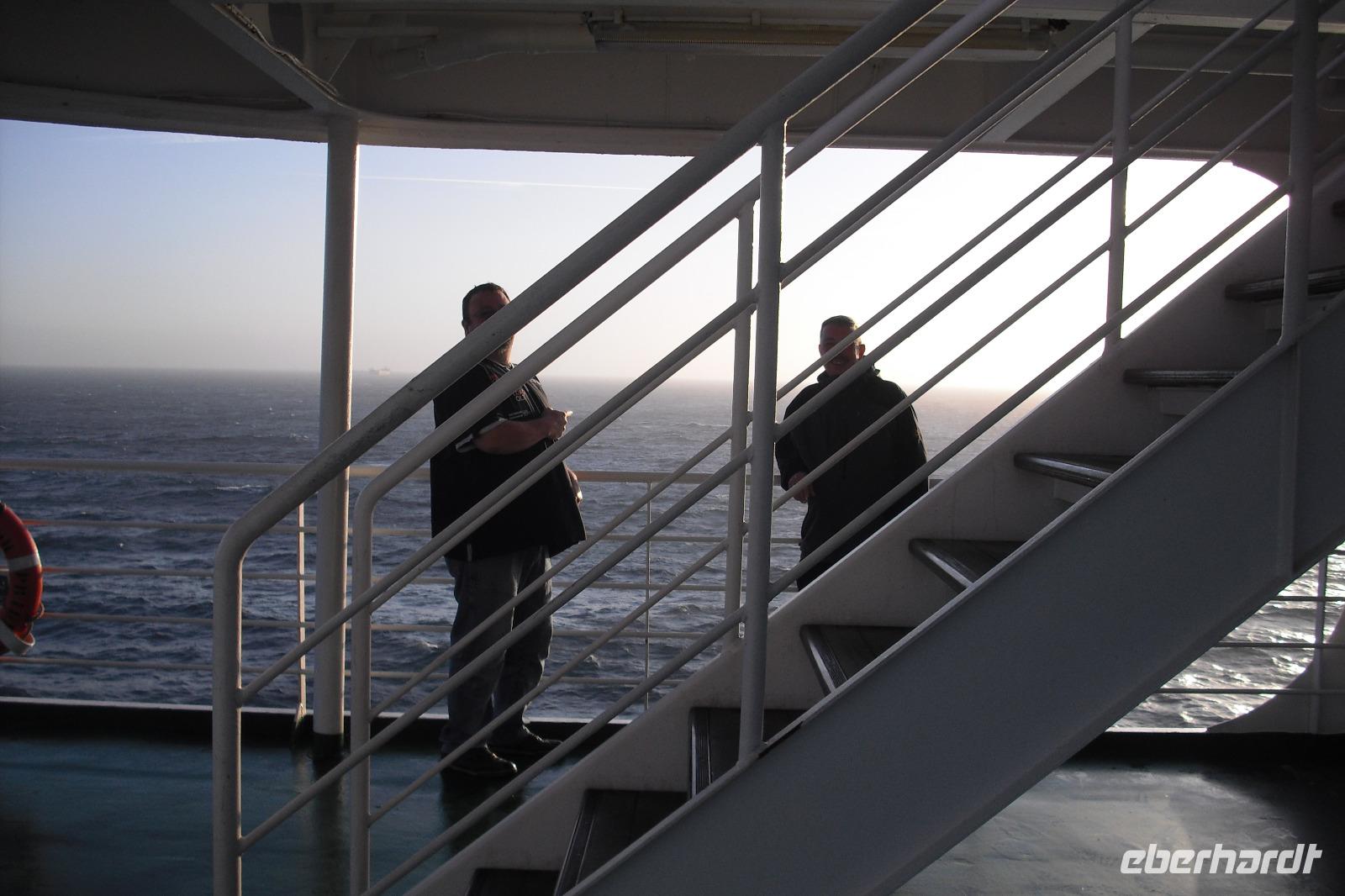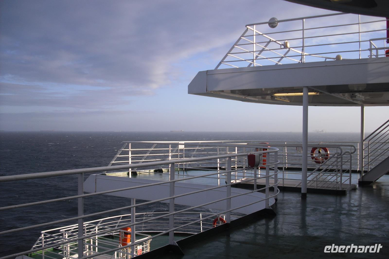 Von Lautsprechern geweckt und informiert darüber, wo das Frühstück wartet konnte jeder sein Frühstück bei der Einfahrt des Fährschiffes in den Hafen von Rotterdam geniessen. Dann erfolgte nach dem Verlassen des Schiffes noch eine Grenzkontrolle und wir warteten auf unseren Bus. Mit notwendigen und zweckmäßigen Pausen für alle erreichten wir ziemlich punktgenau die Ausstiegsstellen. Hier warteten, wenn mitgebucht, schon die Transferfahrzeuge für die weitere Heimfahrt bis vor die Haustür.