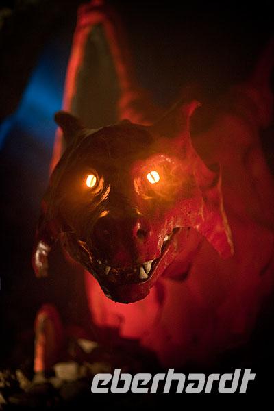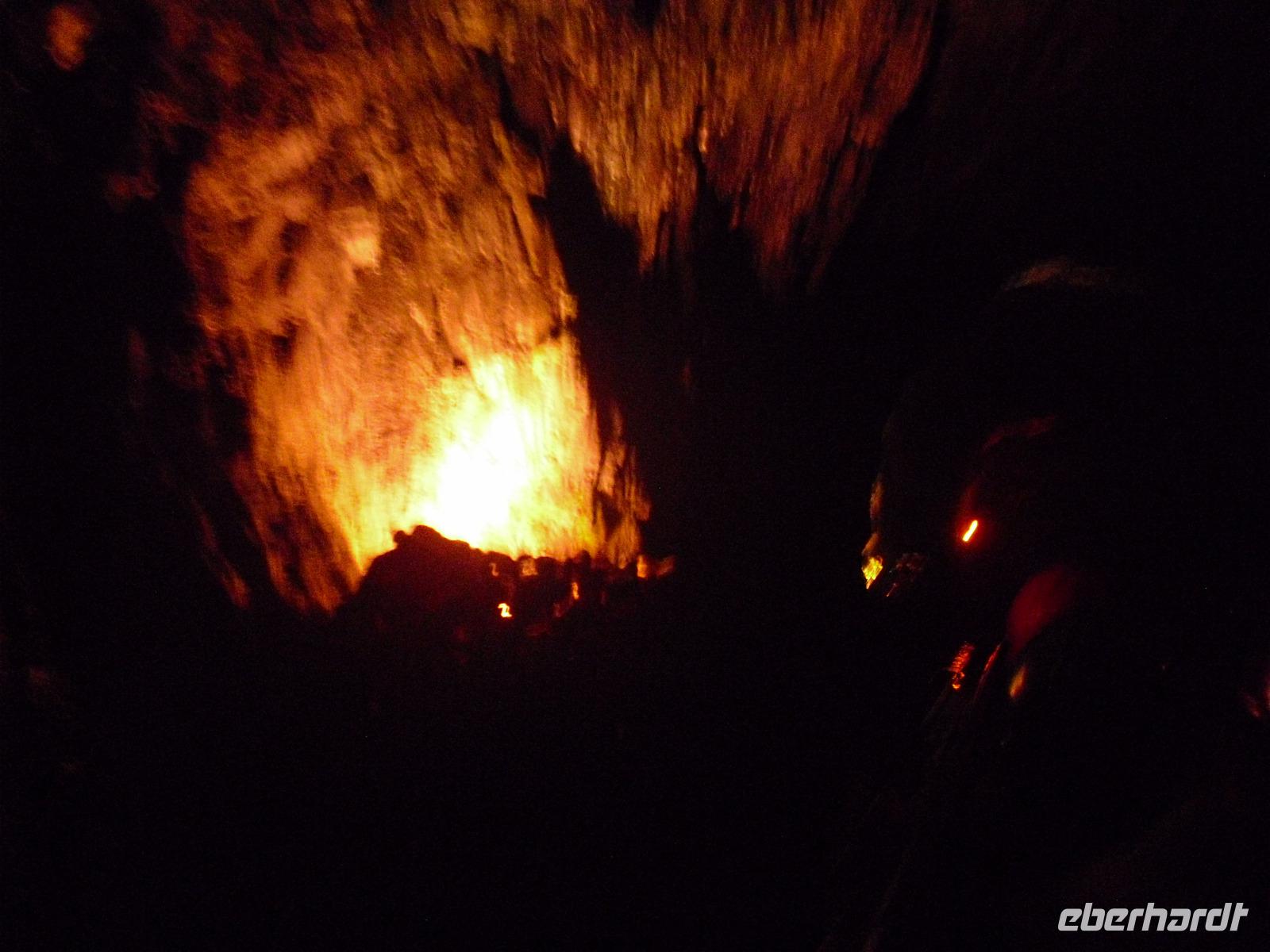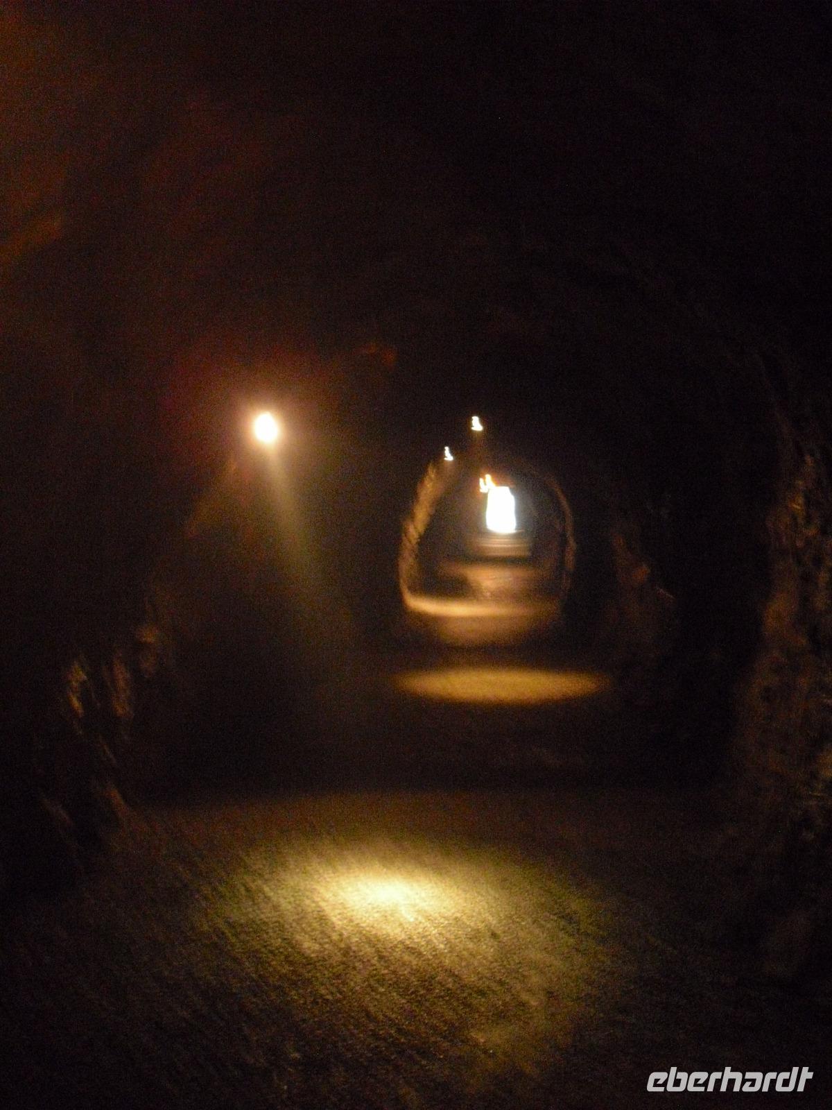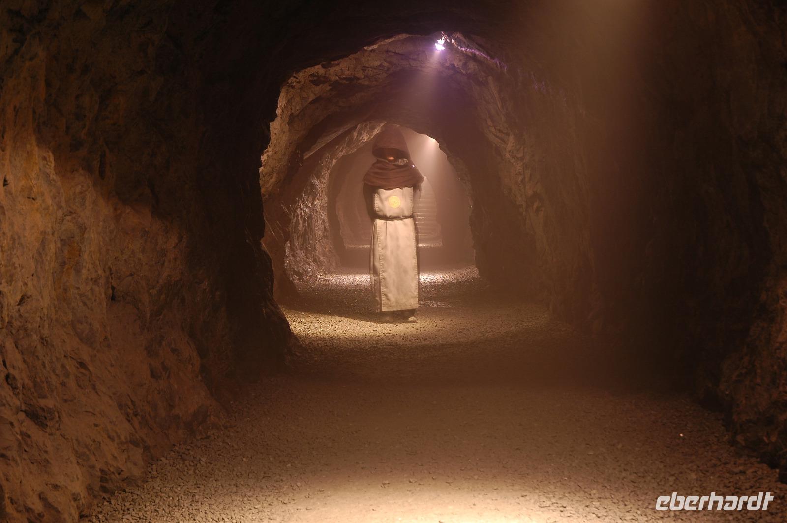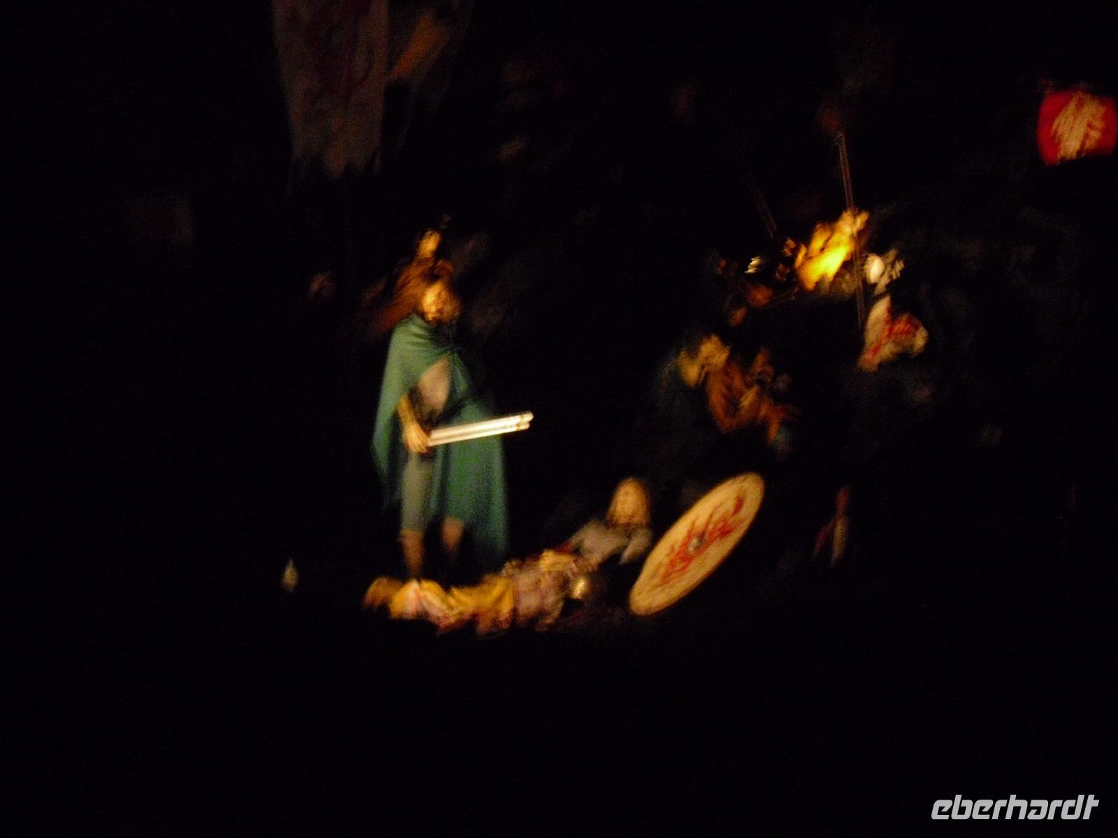 Jetzt und das bei sich verstärkendem Regen besuchten wir unter Tage das Labyrinth des Königs Arthur. Inhaltlich wurden wir durch ein deutschsprachiges Faltblatt auf die walisische Variante des Umgangs mit Arthur vorbereitet. An acht Stationen ist eindrucksvoll dargestellt, wie auch heute noch die walisischen Schätze bewacht werden. Ein schöner Ausflug in die Dark Ages zwischen dem Abzug der Römer und dem Beginn der englischen Literaturgeschichte durch Geoffrey Chaucer.