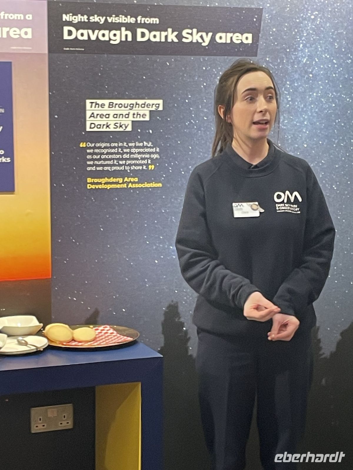 Kurz darauf wurden wir im Foyer des OM Sky Park mit wärmendem Tee und Kaffee sowie „Shortbread“, den typischen gehaltvollen englisch-irischen Biskuits, vom gesamten OM Team freundlich begrüßt. Nachdem wir uns alle gestärkt hatten, übernahm Clara, Visitor Experience Guide im OM Sky Park. Sie führte uns in die Geheimnisse der Astronomie ein. Erklärte auf eine so sachkundige & lebendige Weise kompetent auch komplizierte Sachverhalte mit verständlichen Worten, dass wir ihr alle nur noch gebannt zuhören konnten! – Faszinierend - brilliant!