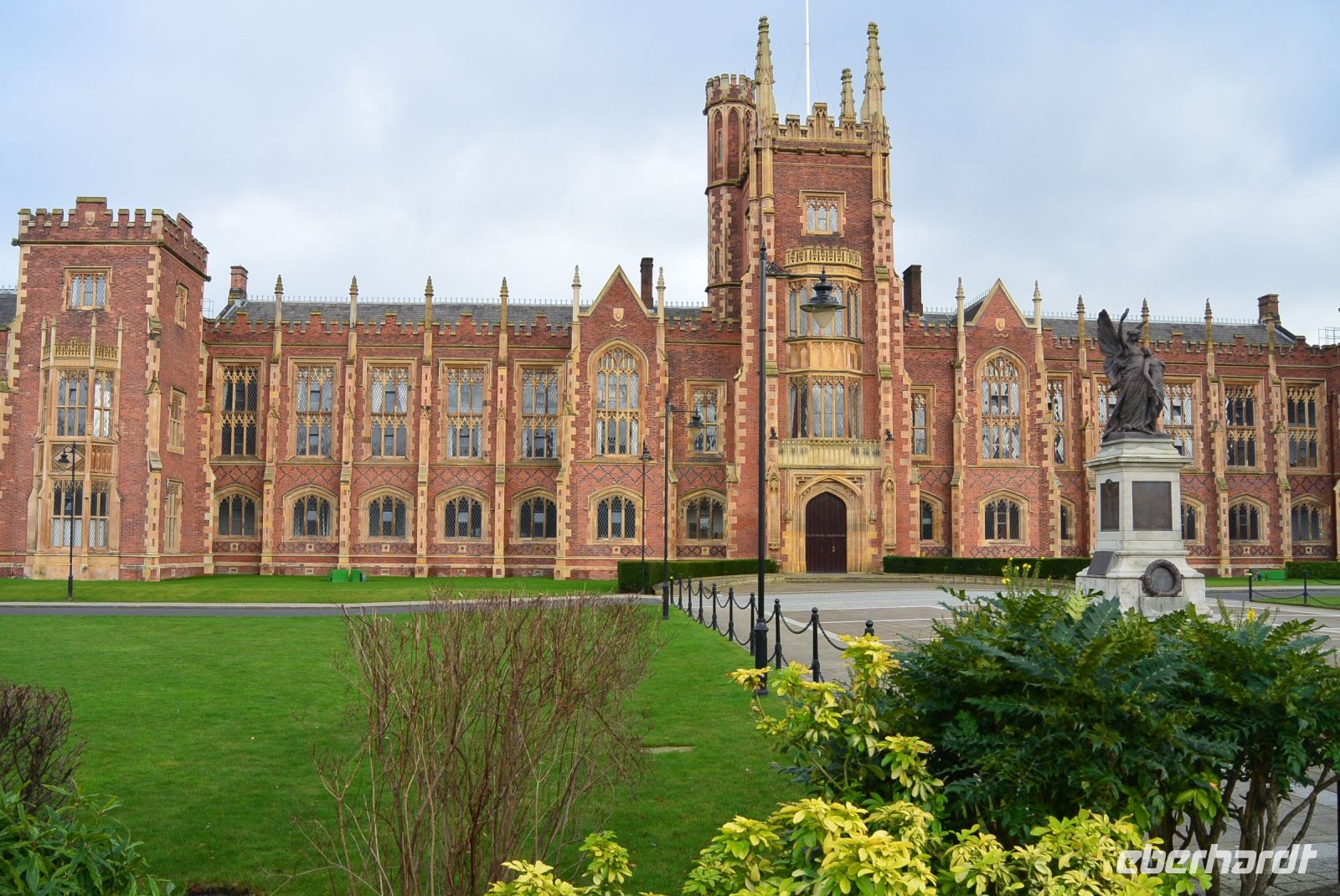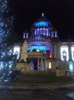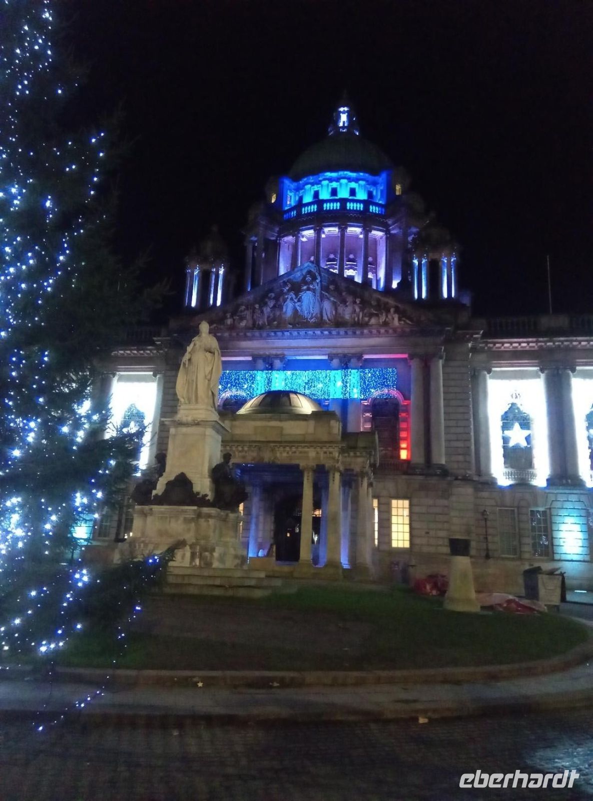 Frisch gestärkt nach einem ersten „Ulster Fry“, dem typischen Frühstück in Nordirland bzw. kontinentalen Frühstück traf sich die Gruppe voller Tatendrang um halb 10.00h in der Lobby. Unser erstes Ziel des Tages direkt vor Augen, und nur einen Steinwurf vom Hotel entfernt, machten wir uns auf den Weg zur neobarocken City Hall, dem Rathaus von Belfast. Unsere Verblüffung war groß: Das, was tags zuvor noch frei zugänglich war, war nun verriegelt - das ganze Gebäude sowie die umgebene Parkanlage abgesperrt! Geplant war eine Führung in der 1906 eröffneten und im Edwardischen Stil erbauten City Hall. Was nun und tun?
