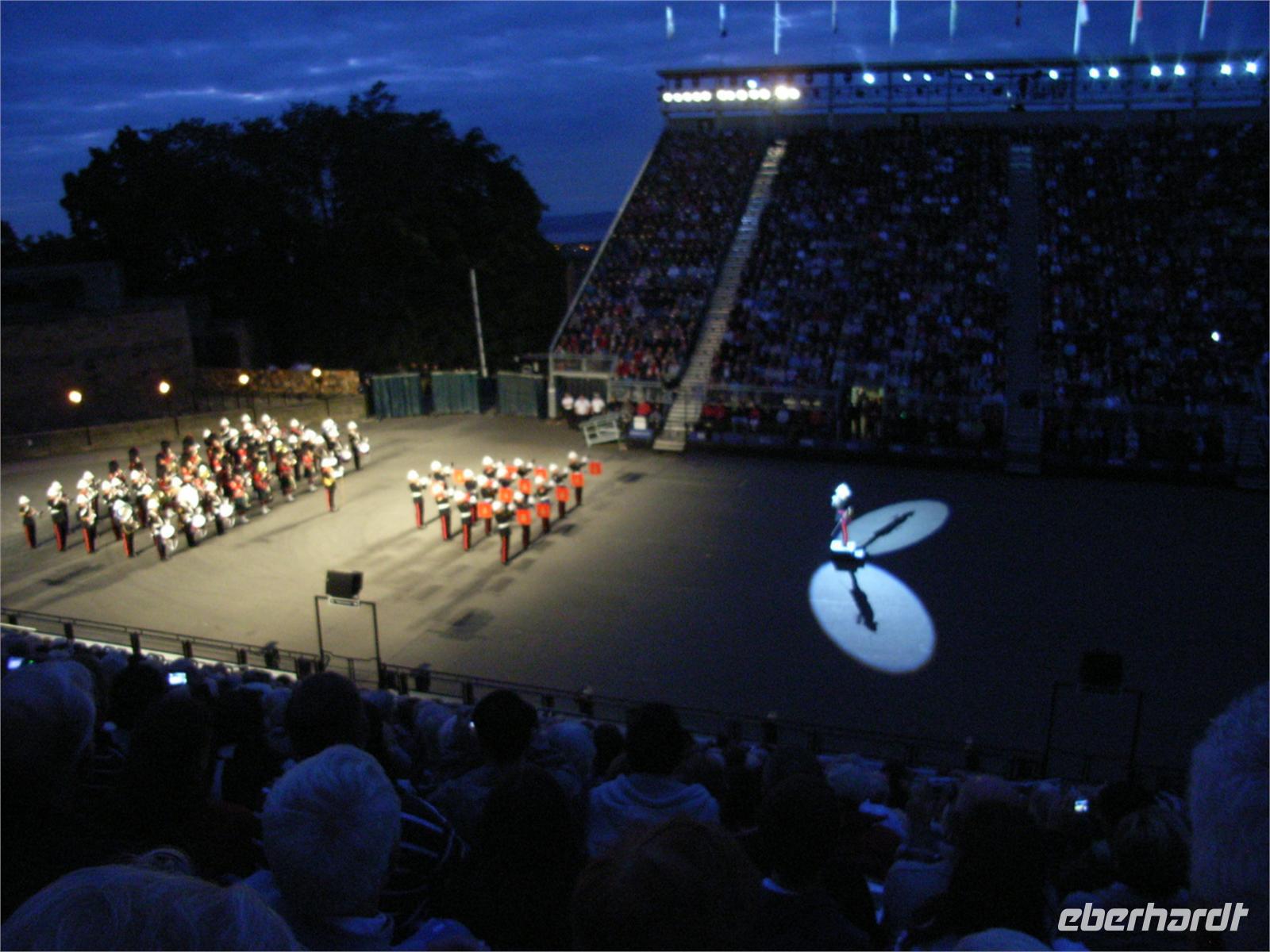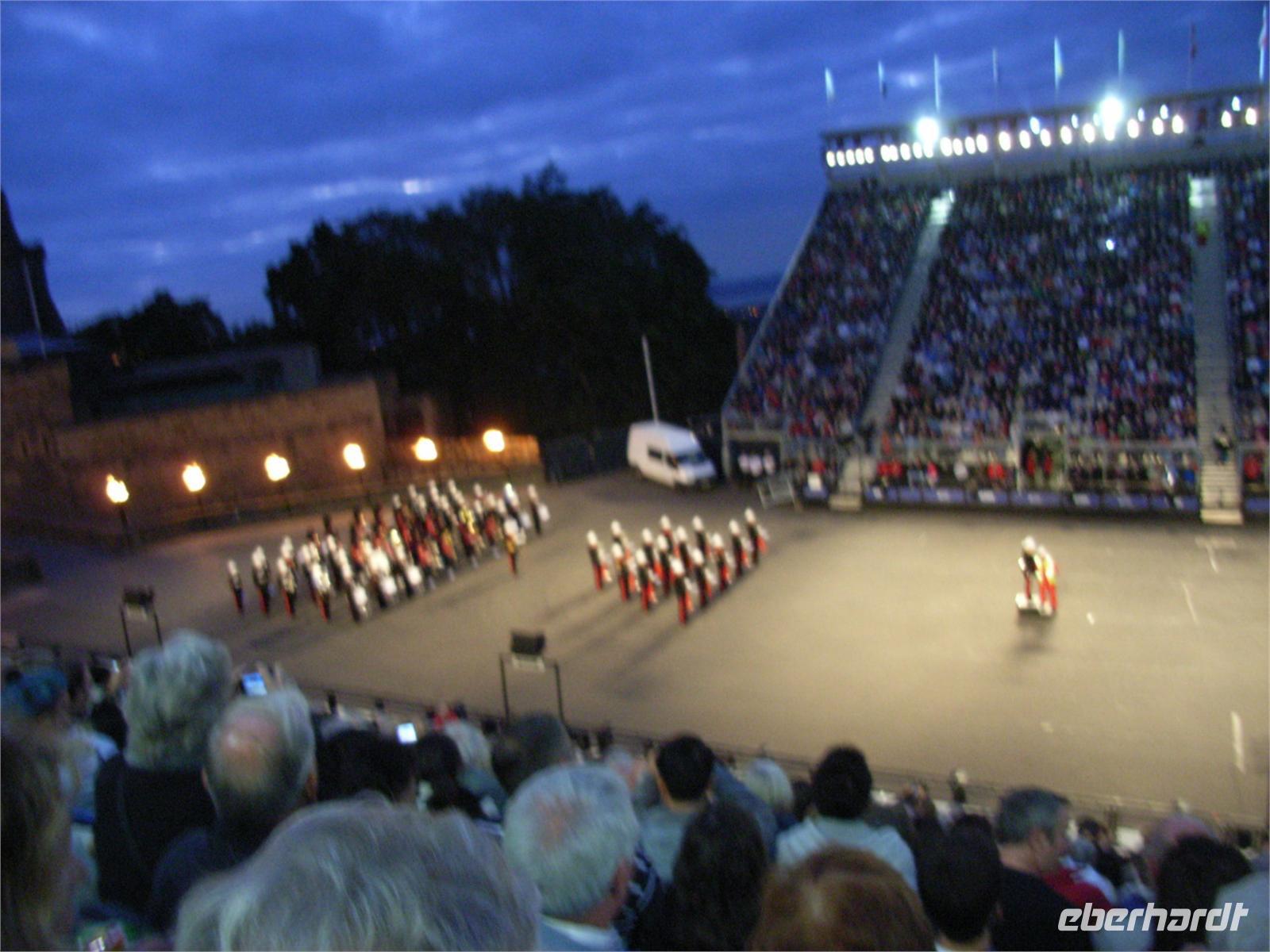 Ein Star Fighter eröffnete den Zapfenstreich und genauso rasant, doch auch fröhliche oder nachdenkliche Geschichten erzählend erlebten wir den besonderen Abend vor eindrucksvoller Burgkulisse. Zuvor hatten wir uns mit der Stadt bekannt gemacht und mit ihrem altstädtischen Rückgrat, der Royal Mile.