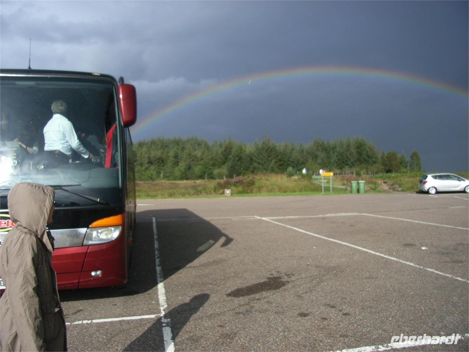 Unser Weg führte uns weiter bis hinauf zum Kaledonischen Graben, dort fotografierten wir die Schleusenanlage in Fort Augustus und das Massiv des Ben Nevis neben doppeltem Regenbogen.