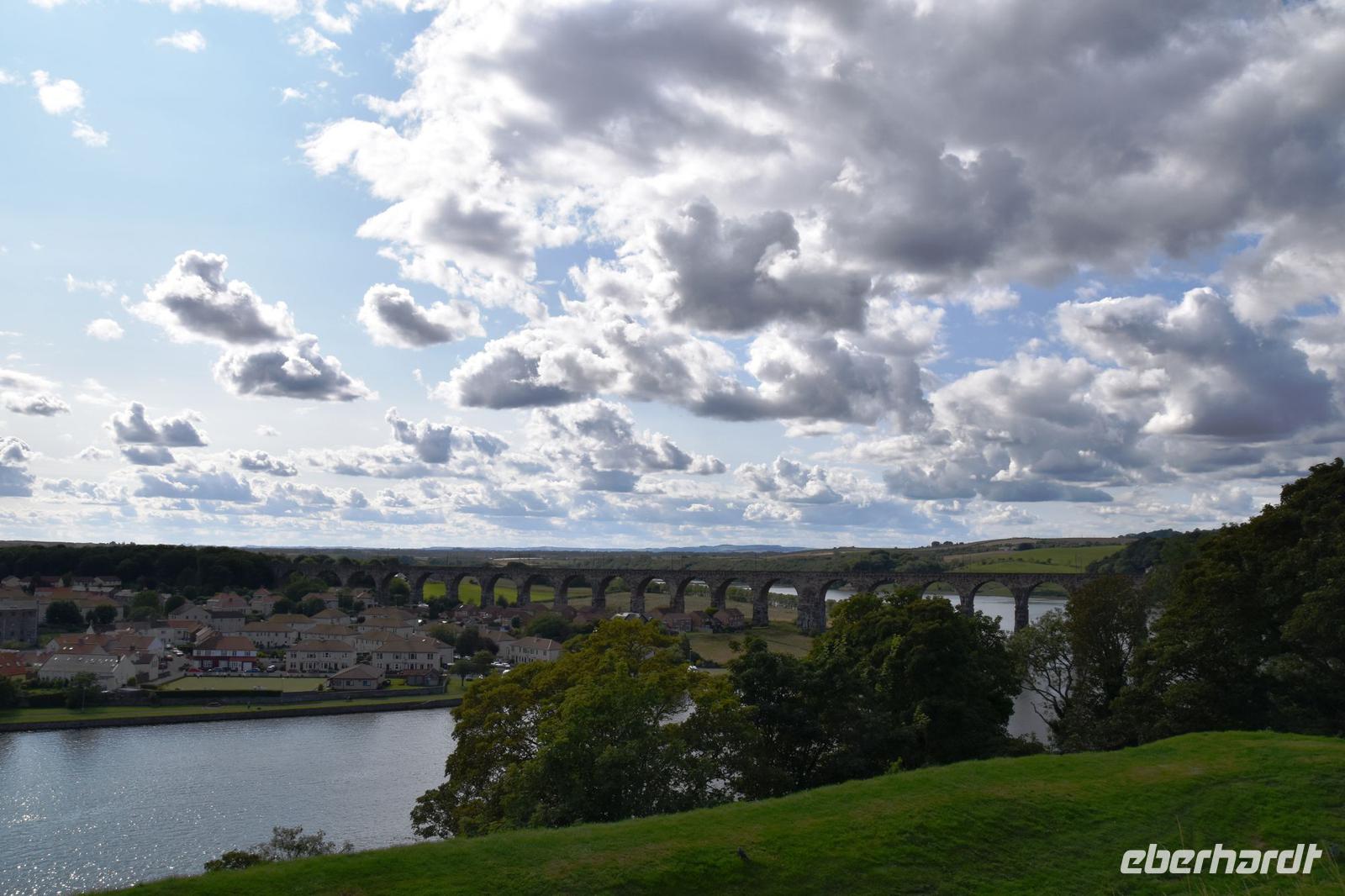Später, auf der Küstenstraße nach Norden, sahen wir die heilige Insel Lindisfarn und erreichten Englands nördlichste Stadt - Berwick upon Tweed. Von der Aussicht auf den Rampes haben wir einen schönen Blick auf die Tweedmündung und die sehenswerten Brücken der Stadt, allen voran Robert Stephensons 658 m lange, 28bogige Royal Border Bridge von 1850.