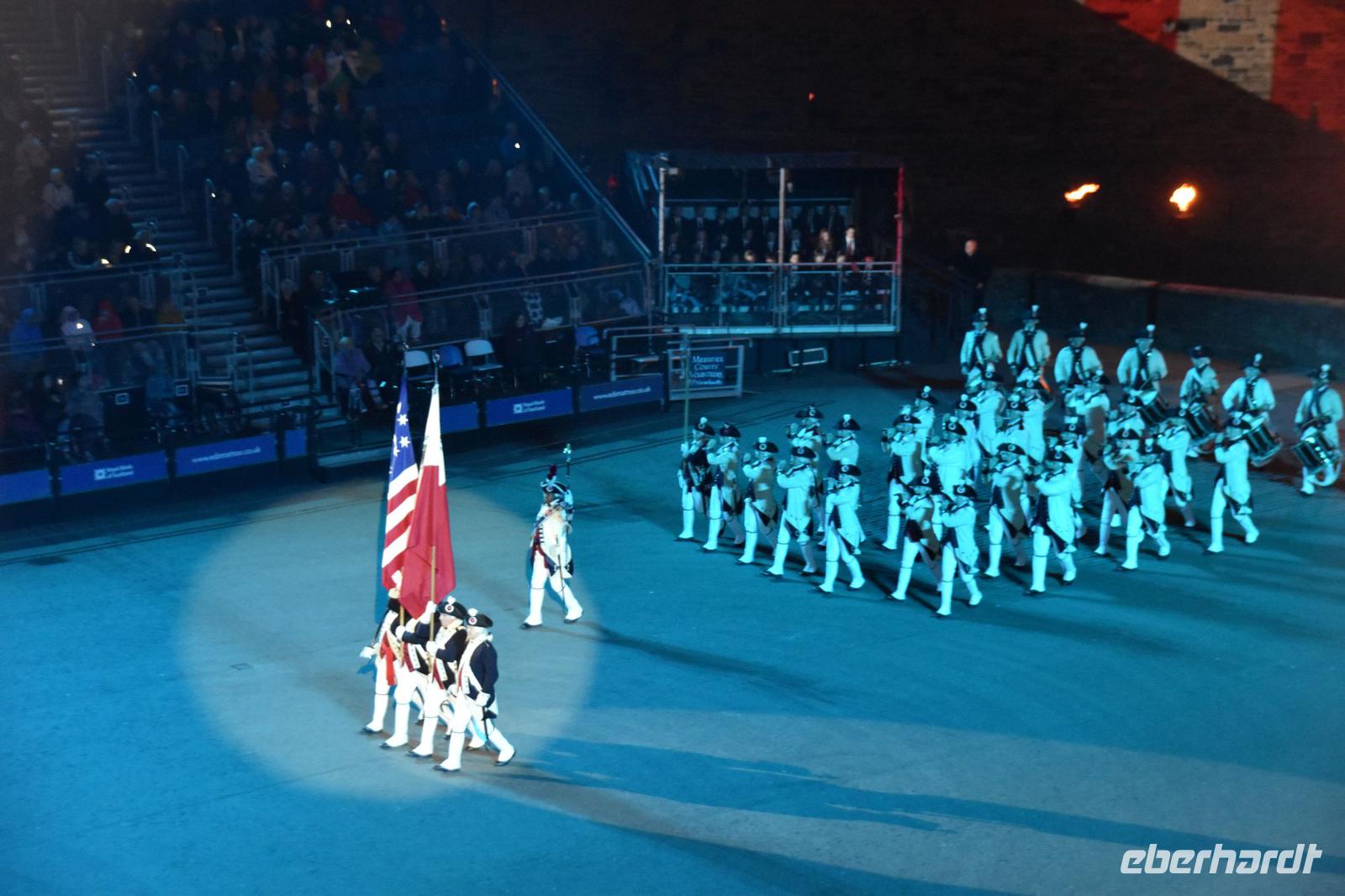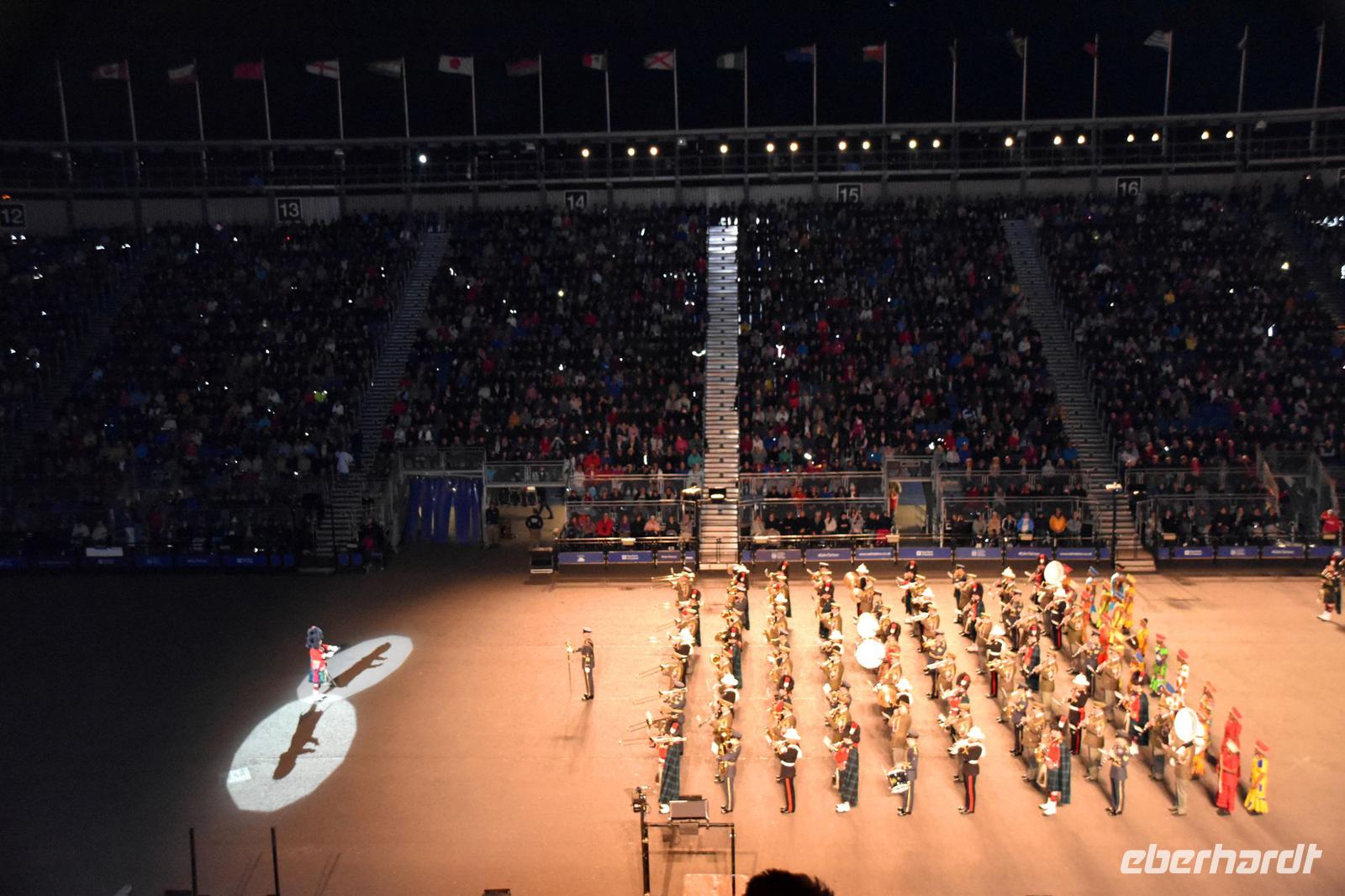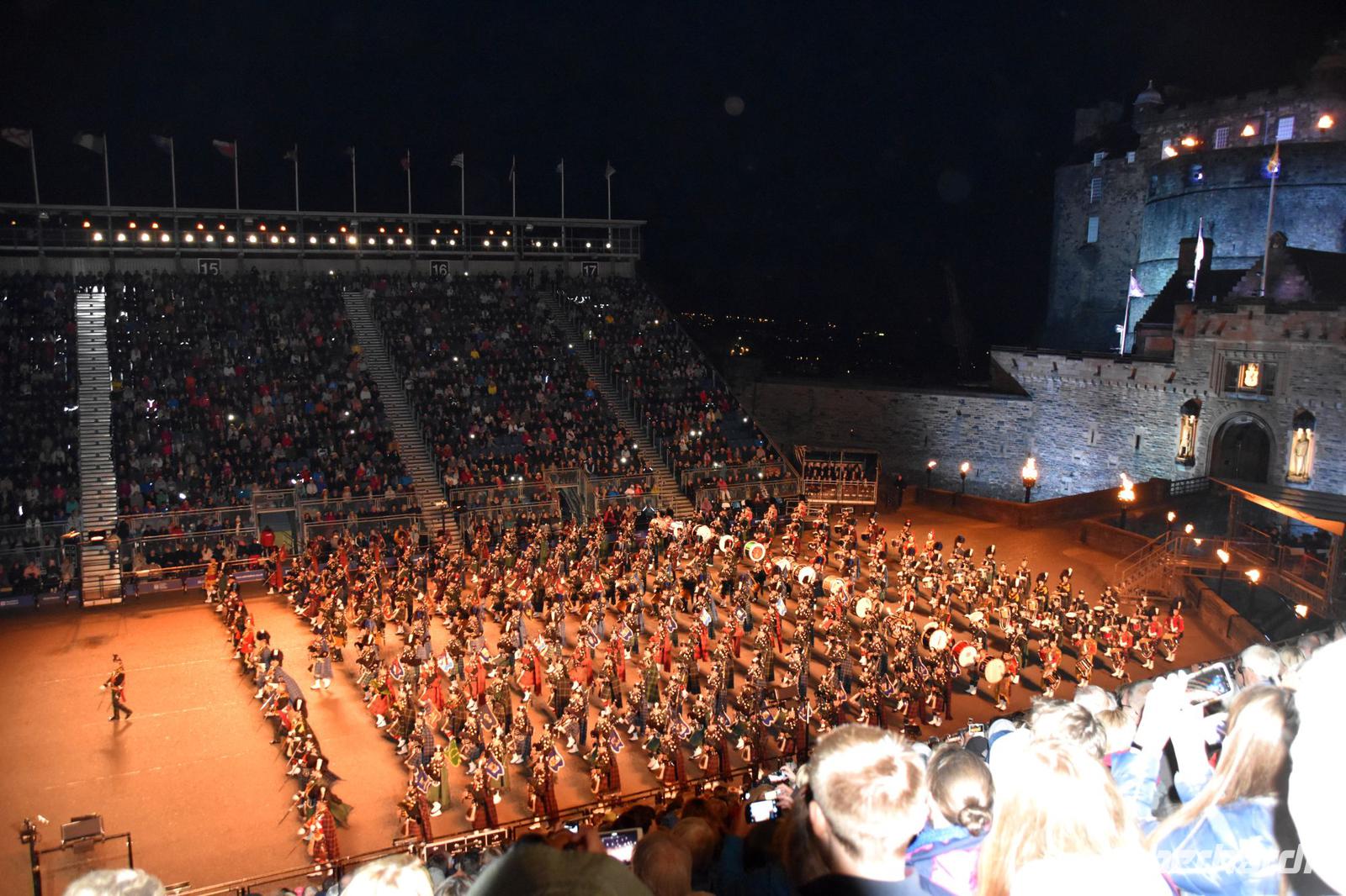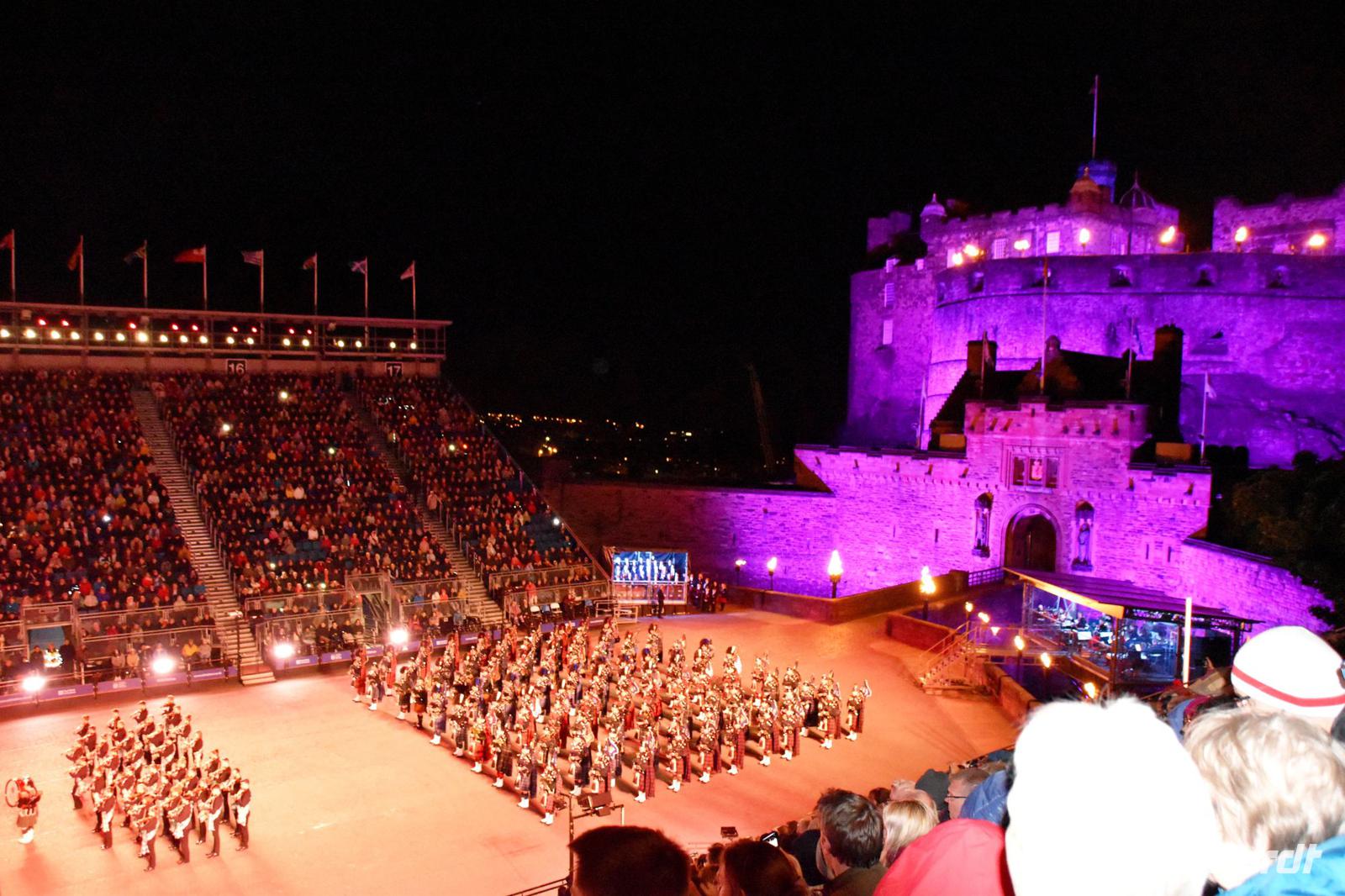 Kurz danach erreichen wir die englisch-schottische Grenze und am frühen Abend dann auch die schottische Hauptstadt Edinburgh. Im schönen Marriott Hotel nehmen wir Quartier und essen zu Abend, bevor uns dann drei Großraumtaxis zu Edinburgh Castle bringen, wo wir die Abschlussveranstaltung des diesjährigen Royal Military Tattoo miterleben - eine tolle Einstimmung für eine Schottland-Reise.