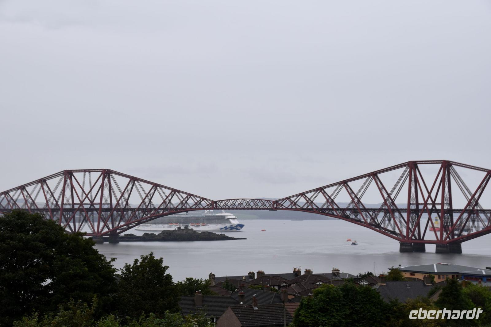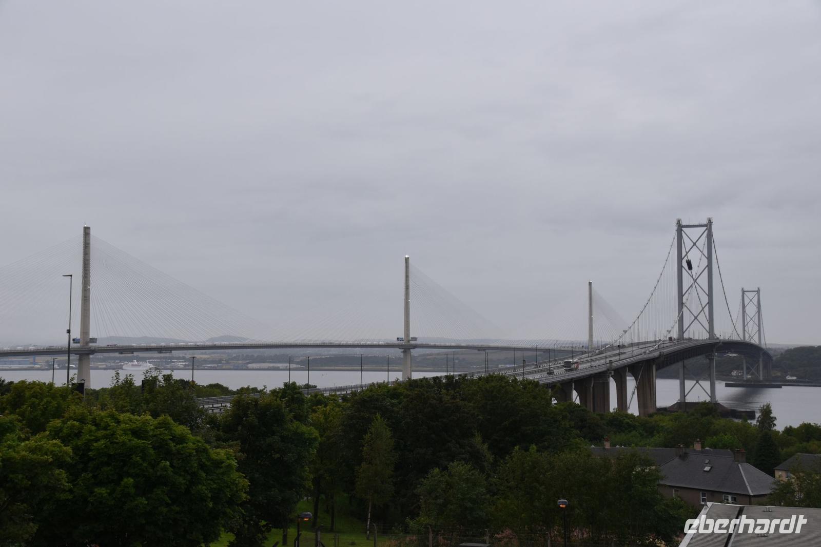 Frisch gestärkt nach dem Frühstück und fahren wir zu den Three Bridges, die den Firth of Forth nahe Edinburgh überspannen. Zwei Fotostopps, einmal unten in South Queensferry und einmal vom Aussichtspunkt Three Bridges bewundern wir die tolle Stahlkonstruktion der 1,5 Meilen langen Eisenbahnbrücke von 1890.