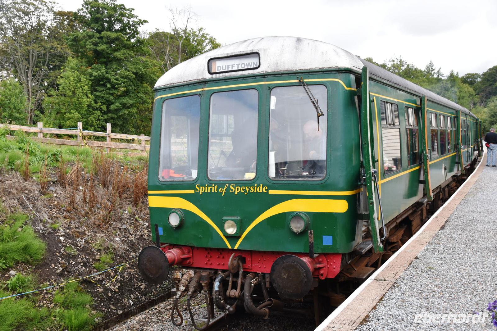 In Broomhill/Glenbogle wartet schon unser Sonderzug der Strathspey-Railway. Für uns ist ein halber Pullman-Waggon mit herrlichen Plüschsesseln reserviert.