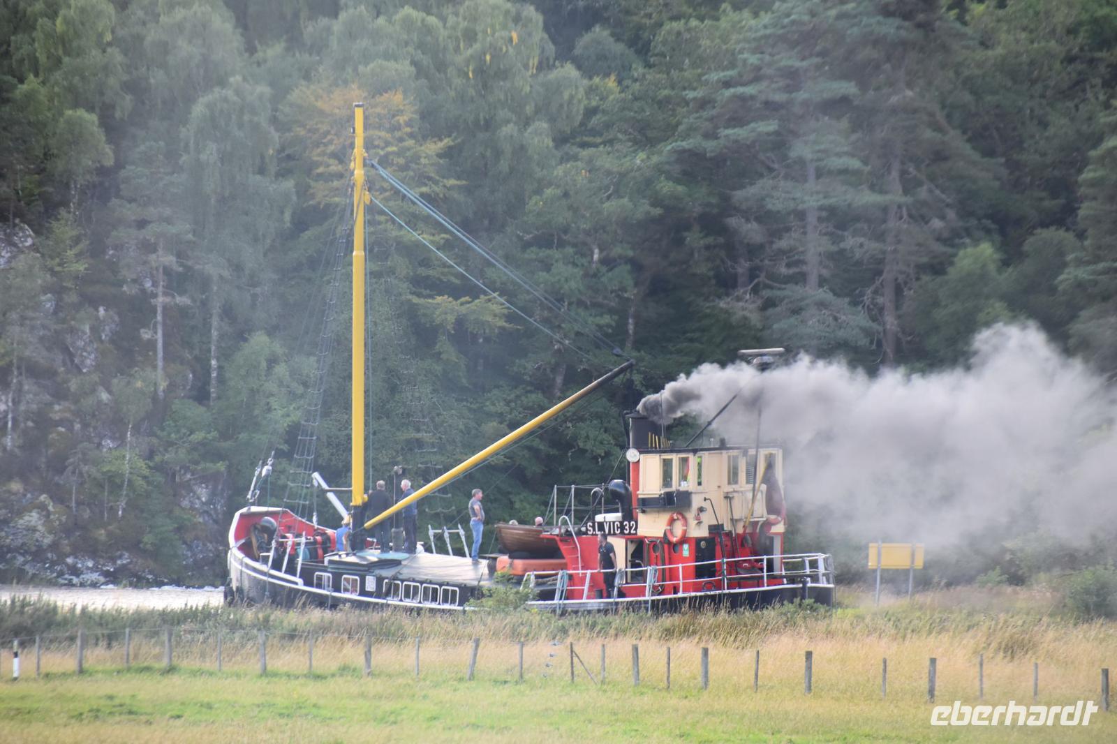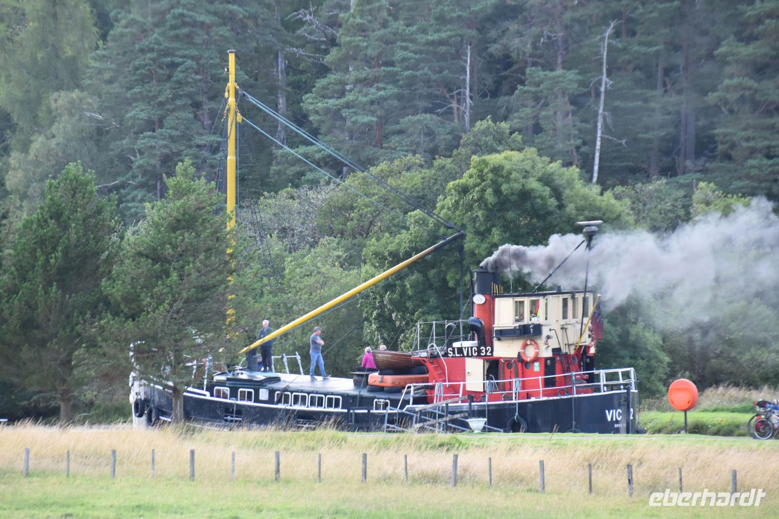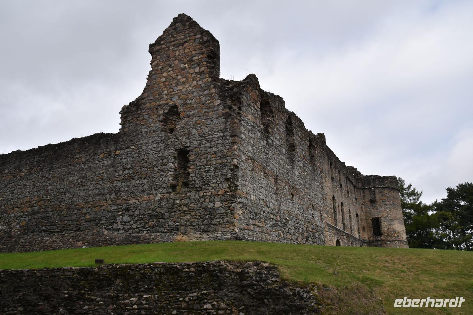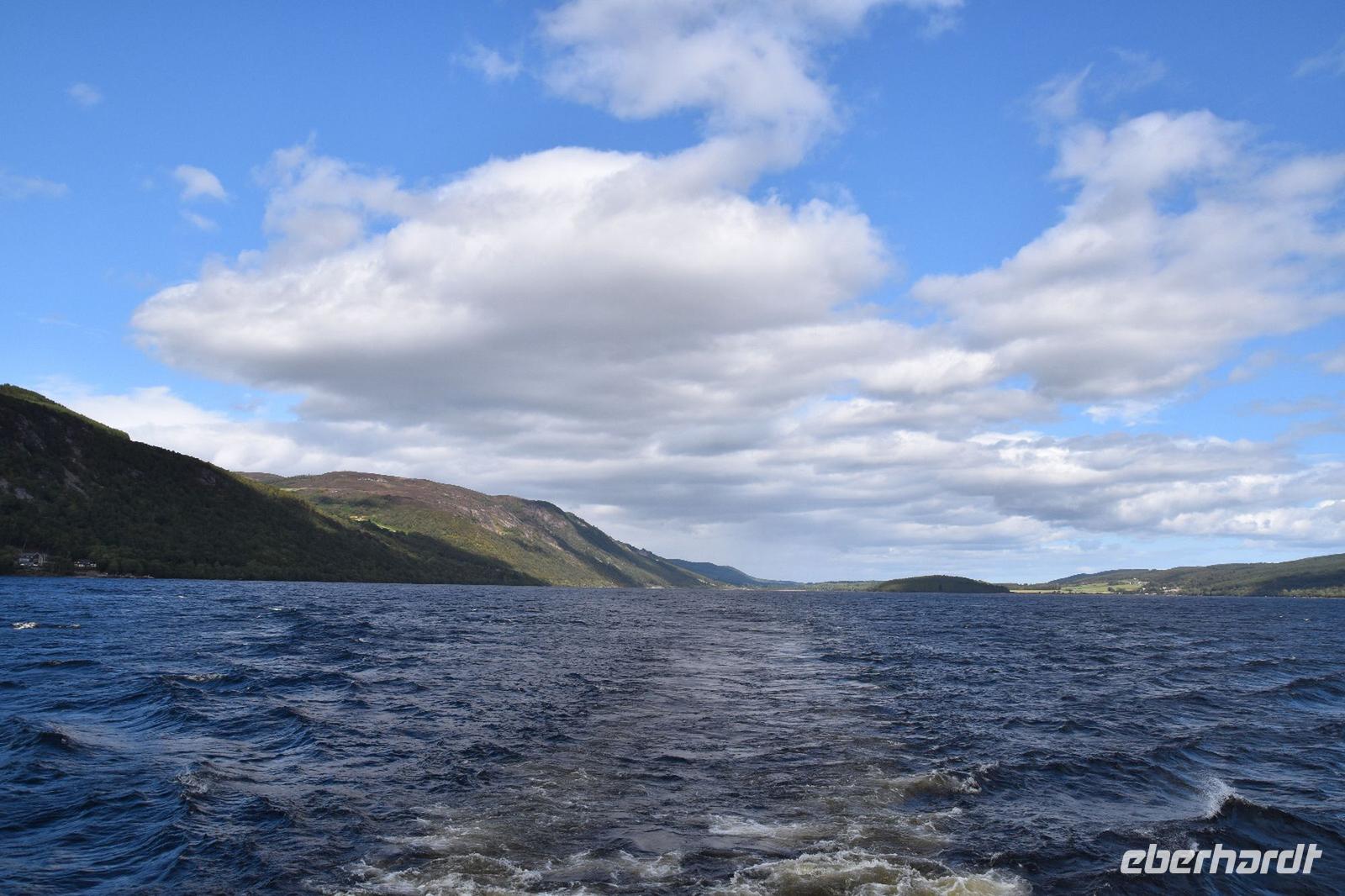 Zum Mittag fahren wir durch Inverness in das Great Glen, in den großen Grabenbruch. Der nördlichste der Seen darin ist Loch Ness. Am Clansman Hotel steigen wir aus und gehen beim nahen Schiffsanleger an Bord des Motorschiffes der Jacobite Cruises. Es bringt uns sicher über den See zu den Ruinen des Urquhart Castle. Nessy können wir nicht entdecken, aber es hat auch keiner Haribo mit.