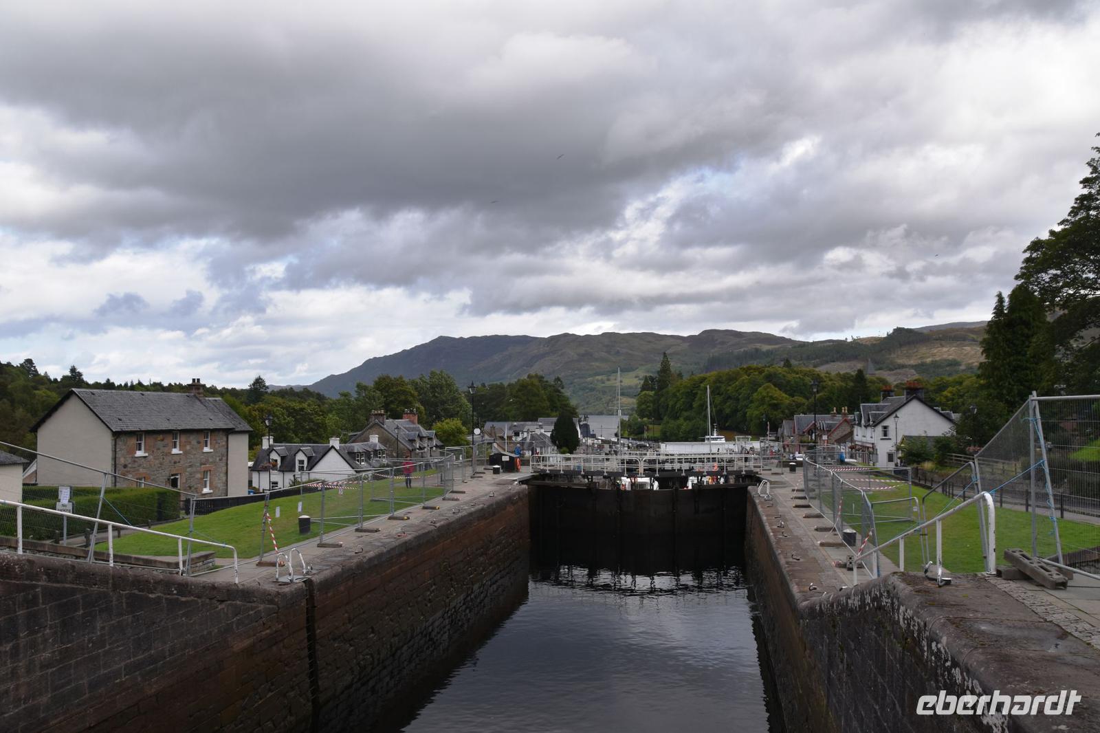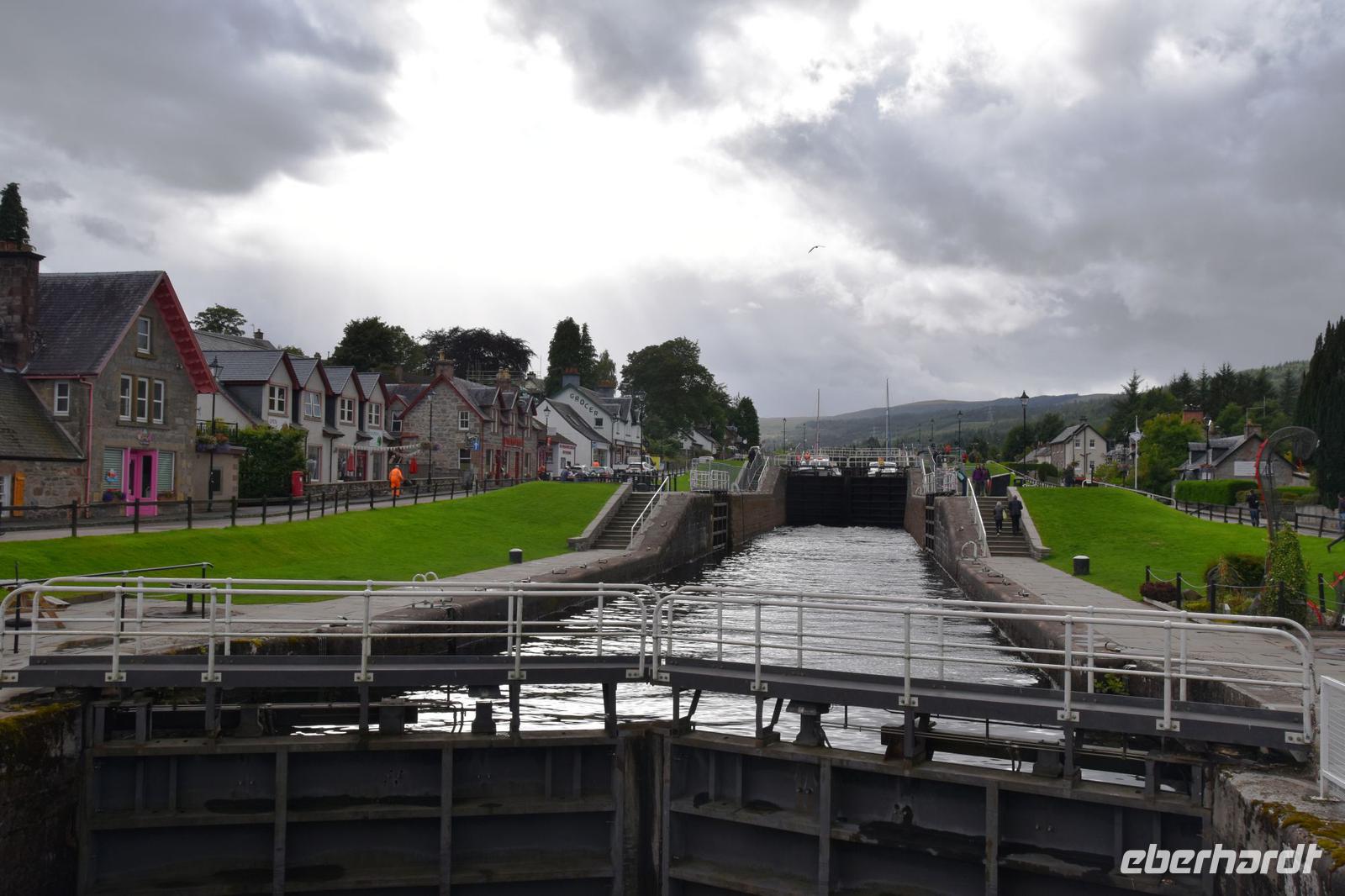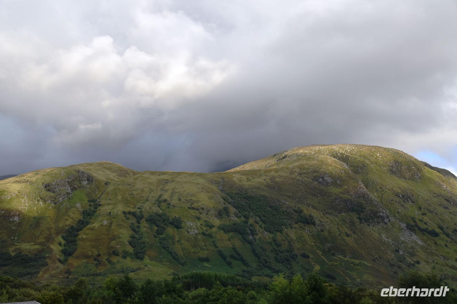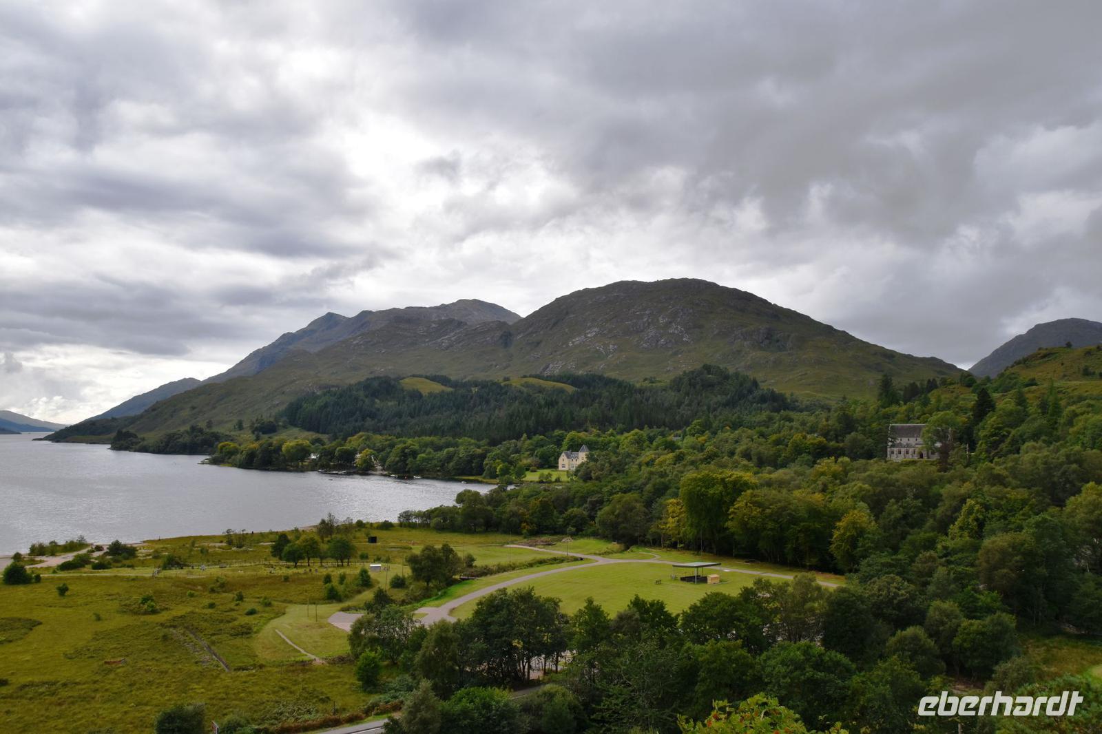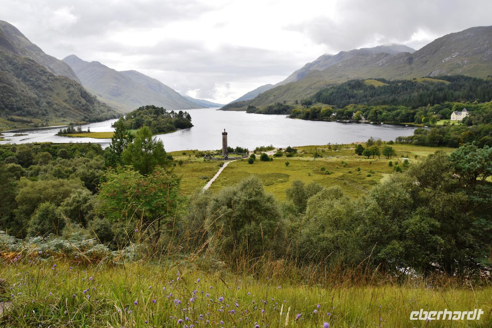 Weiter südlich, in Fort Augustus besichtigen wir die Schleusentreppen des Kaledonischen Kanals, bevor es an zwei weiteren Seen entlang geht. Am Commando Memorial, oberhalb der Spean Bridge, stoppen wir nochmals, um einen Blick auf das Ben Nevis Massiv zu haben. Leider verbirgt sich der Gipfel in den Wolken.