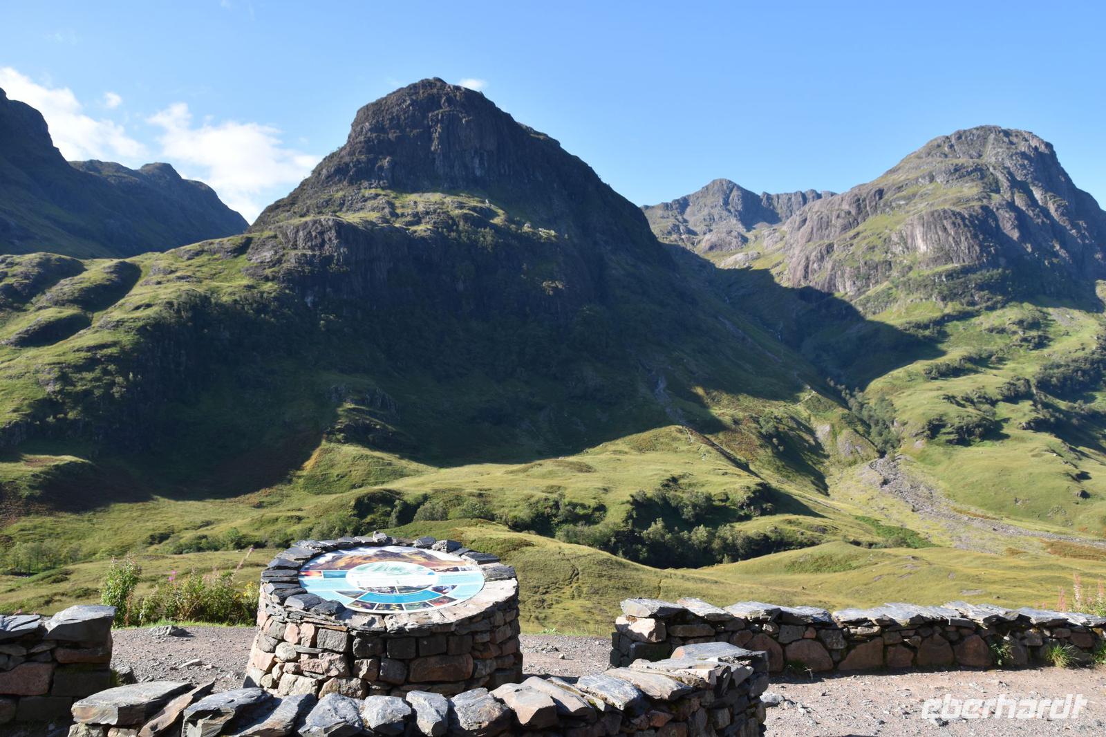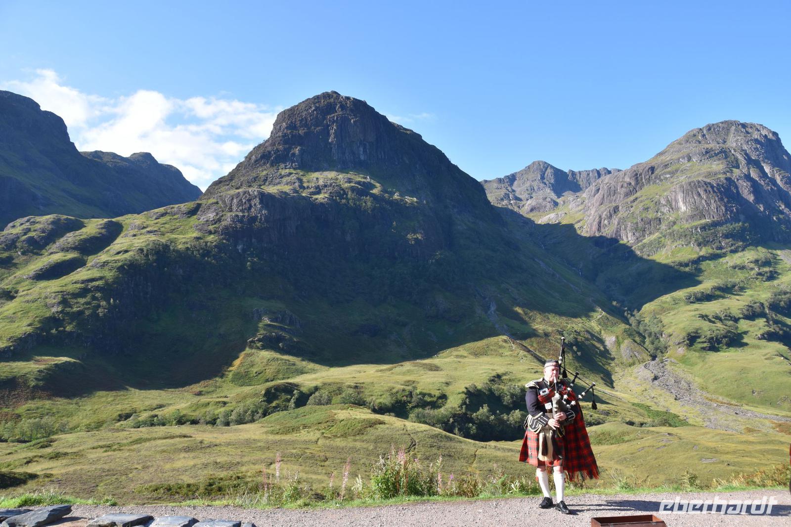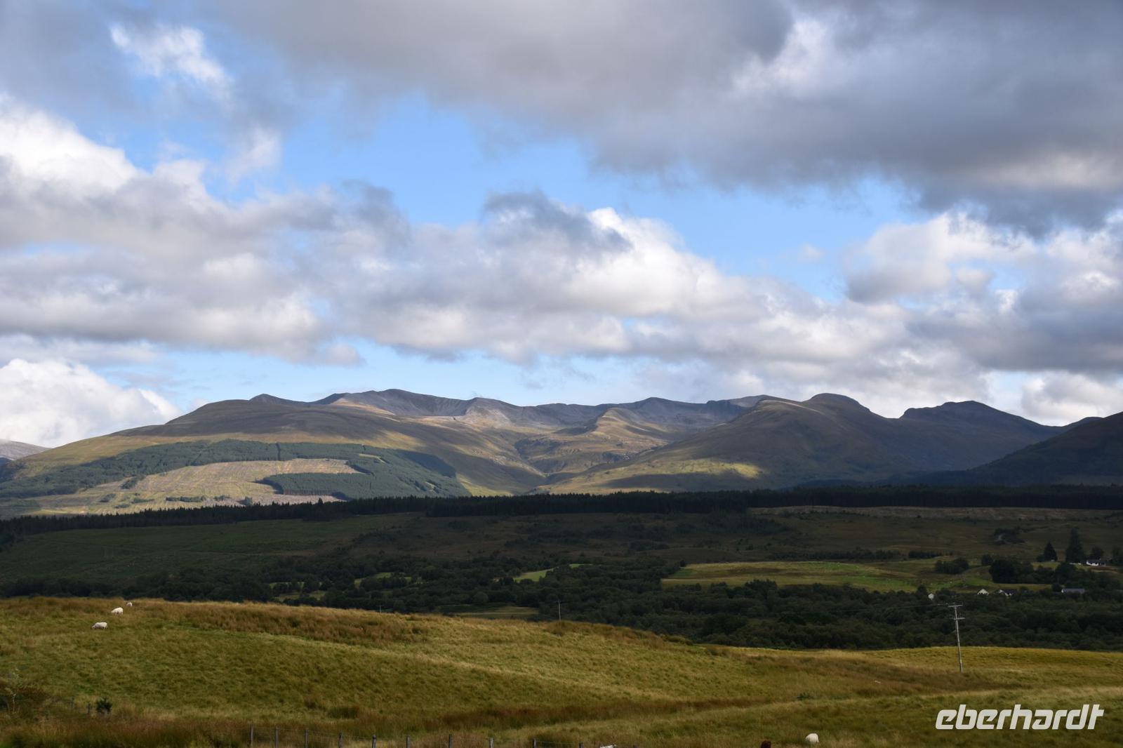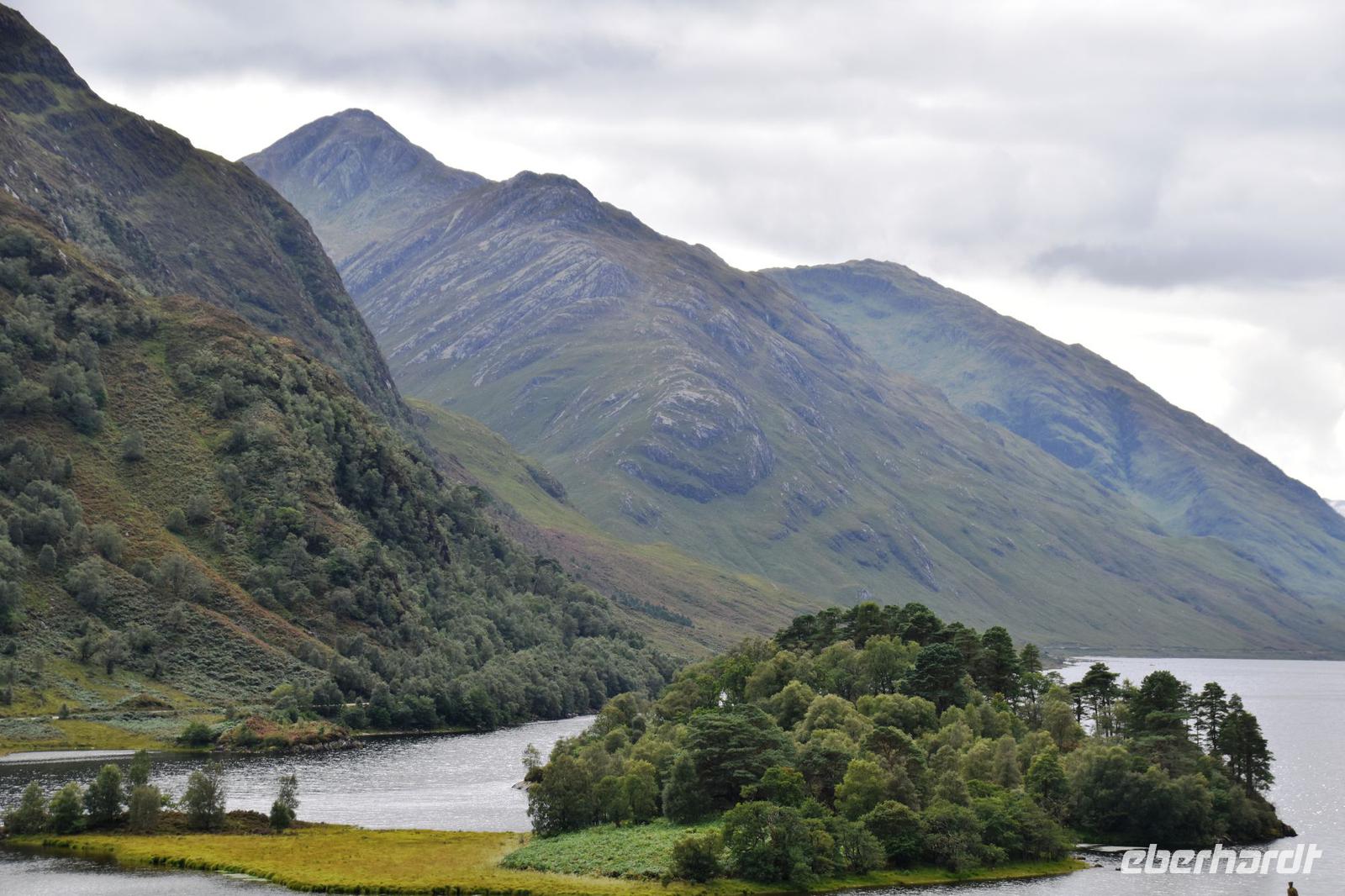 Weiter südlich, in Fort Augustus besichtigen wir die Schleusentreppen des Kaledonischen Kanals, bevor es an zwei weiteren Seen entlang geht. Am Commando Memorial, oberhalb der Spean Bridge, stoppen wir nochmals, um einen Blick auf das Ben Nevis Massiv zu haben. Leider verbirgt sich der Gipfel in den Wolken.