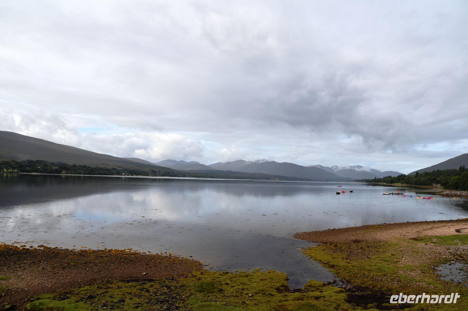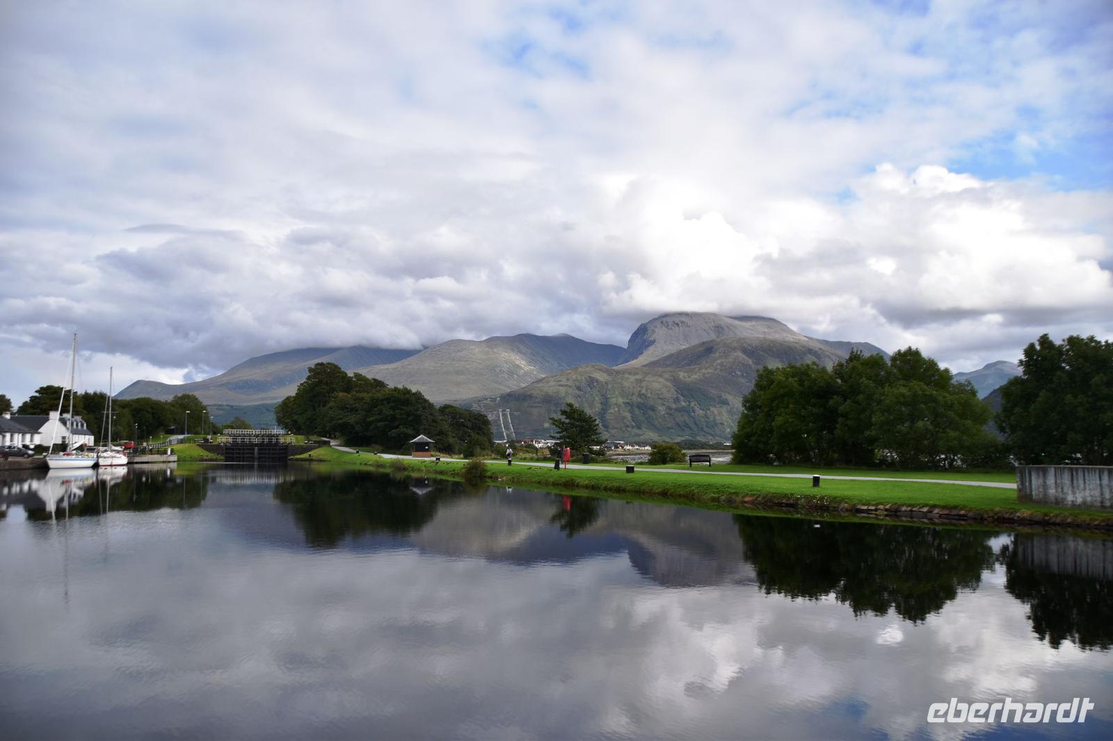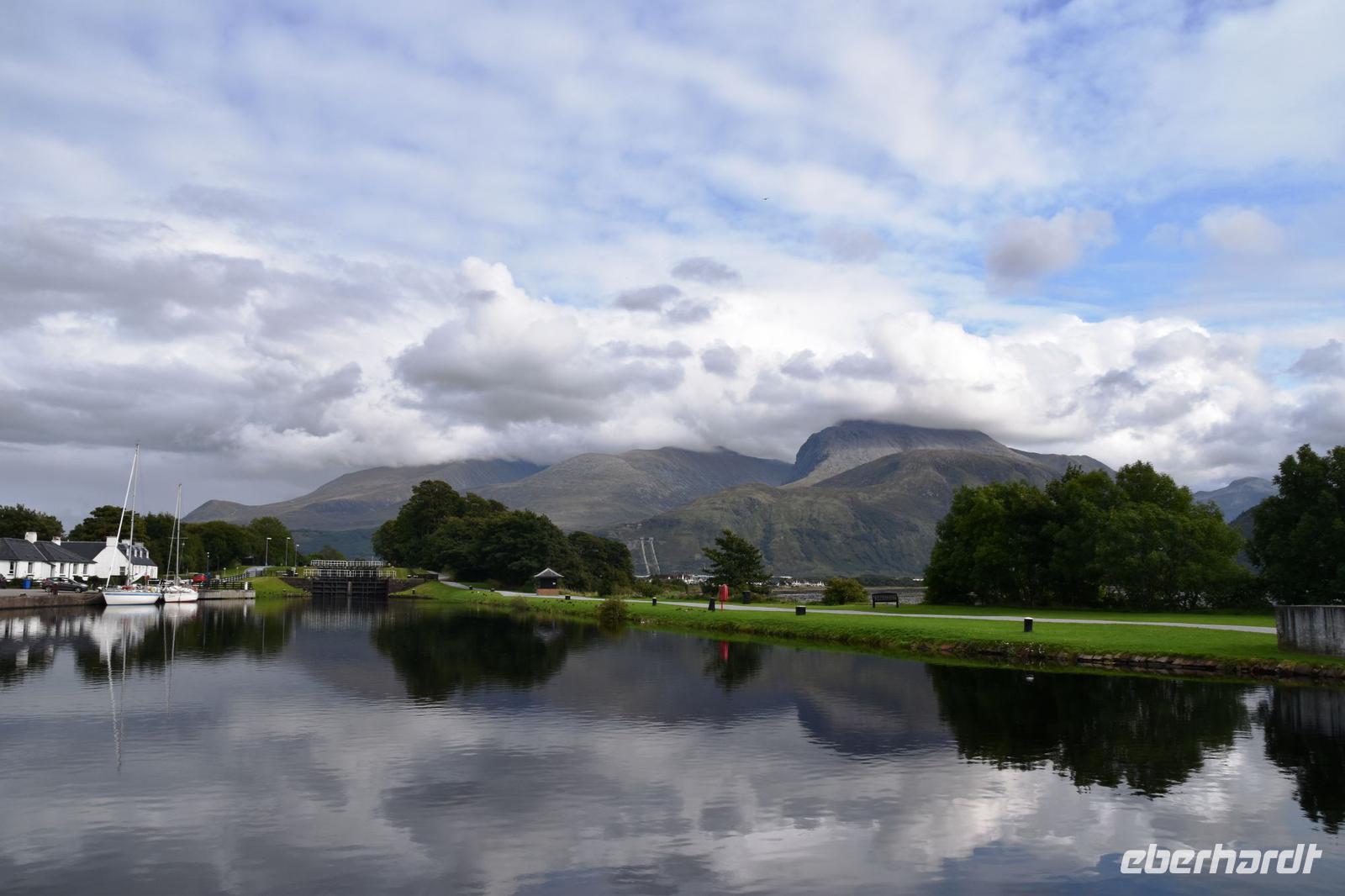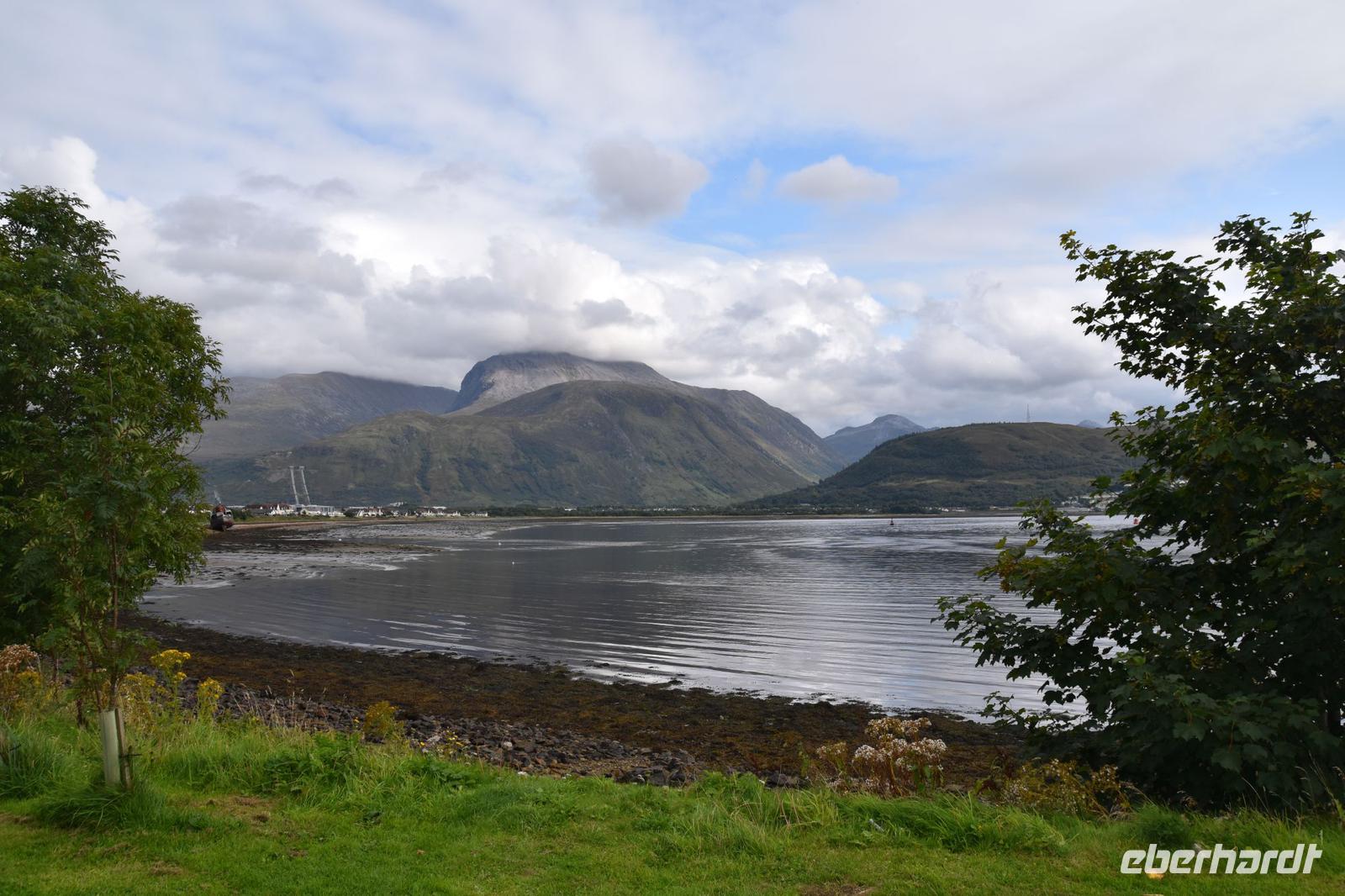Am späten Nachmittag stoppen wir noch in Corpach, wo sich die südliche Einfahrt in den Kaledonischen Kanal befindet. Von hier haben wir nun auch einen tollen Blick zum 1345 m hohen Ben Nevis.