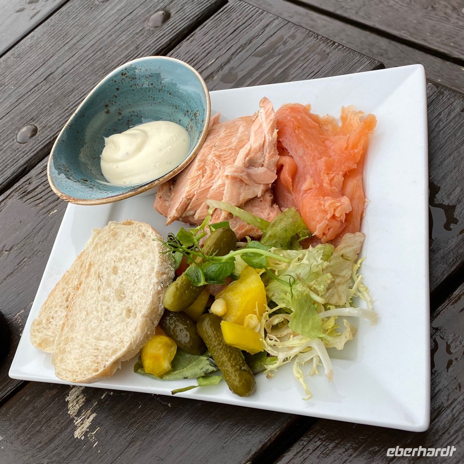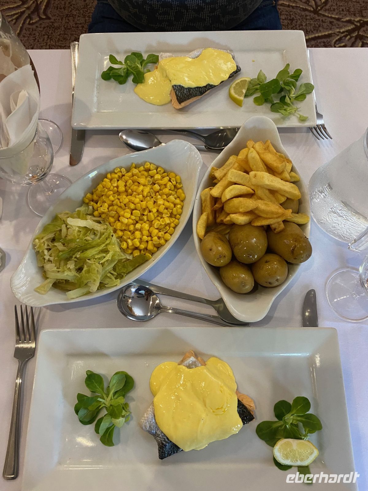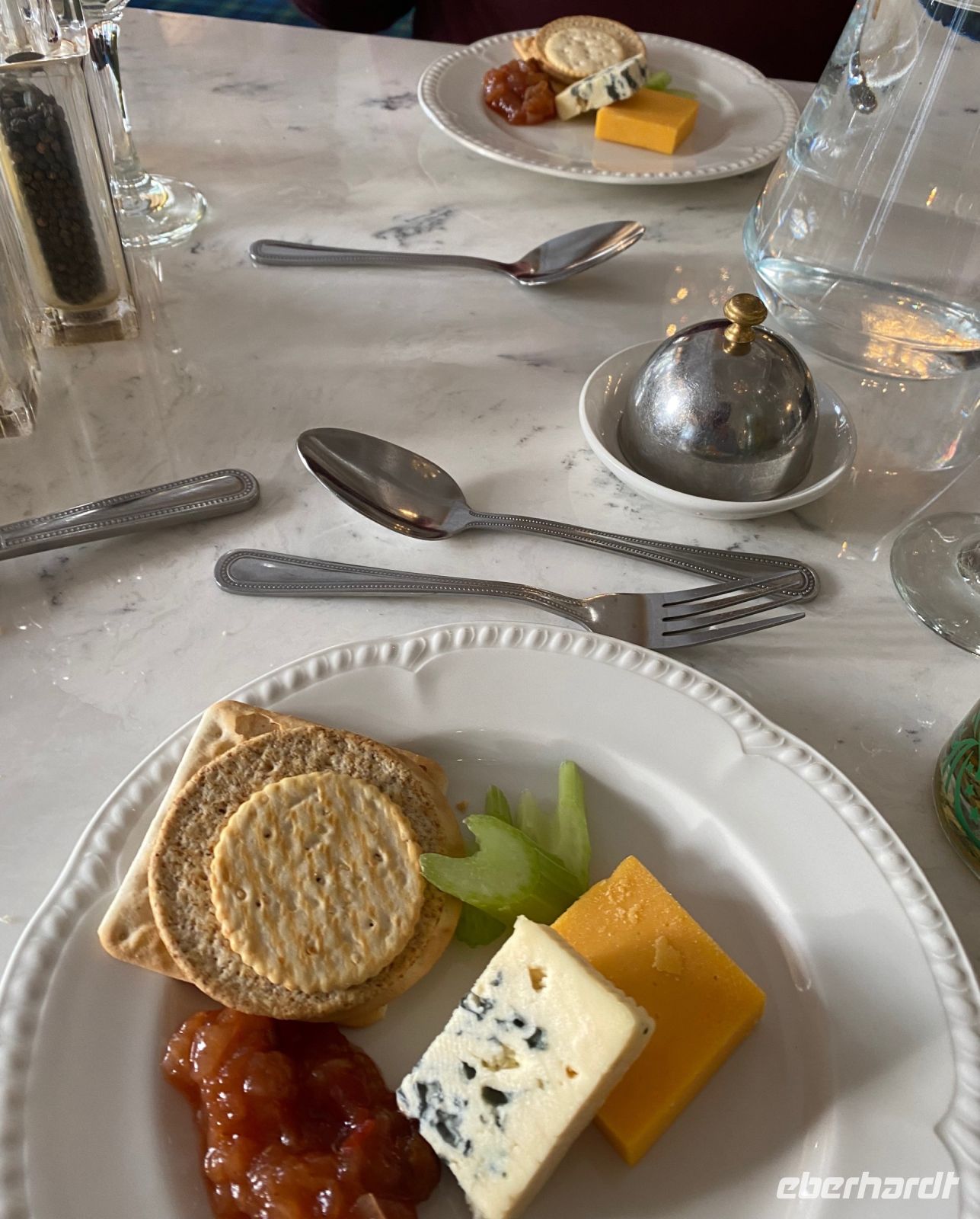 Das Frühstück an Bord vereint ganz Europa. Käse aus Holland, Müesli, Kaffee, Croissants und vieles mehr werden aufgefahren. Die ersten britischen Marmeladen, Pilze, Speck und Bohnen am Buffet stimmen uns aber schon auf die Reise nach Schottland ein.