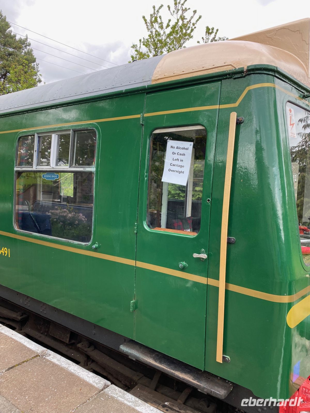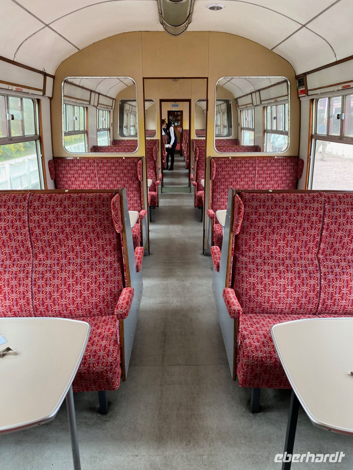 Auf unserer Reise erleben wir Bahnen aus allen Epochen, in England gab es sogar Lokomotiven aus den 1870ern zu sehen, unter Dampf! Heute sind wir in einer Zeit, die viele von uns persönlich kennengelernt haben, eine gewisse selbst erlebte Nostalgie macht das Erlebnis hier besonders. Unser Dieseltriebwagenzug stammt aus den Jahren 1958/59. Auf 1435 mm Spurweite fuhren einst diese B.R. Derby Class 108 DMU in ganz Großbritannien.