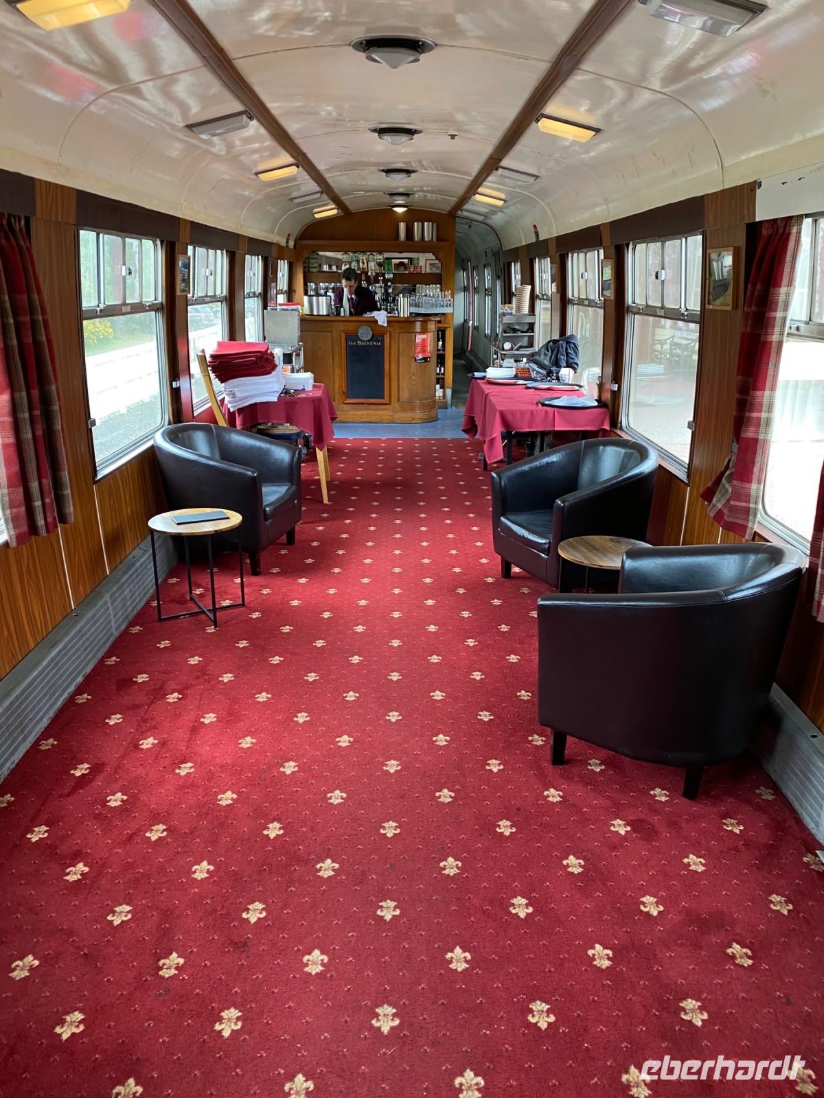 In einigen Jahren können wir von hier auch weiter nach Grantown mit der Bahn fahren. Heute aber steigen wir wieder in unseren blauen Bus aus der Gegenwart und Maik bringt uns am Fluss Spey entlang zurück in unser Hotel in dem wir uns inzwischen schon zuhause fühlen. Hier erwarten uns wieder ein feines Abendessen, eine gemütliche Bar mit interessanten Gesprächen und schließlich eine wunderbare ruhige Nacht.