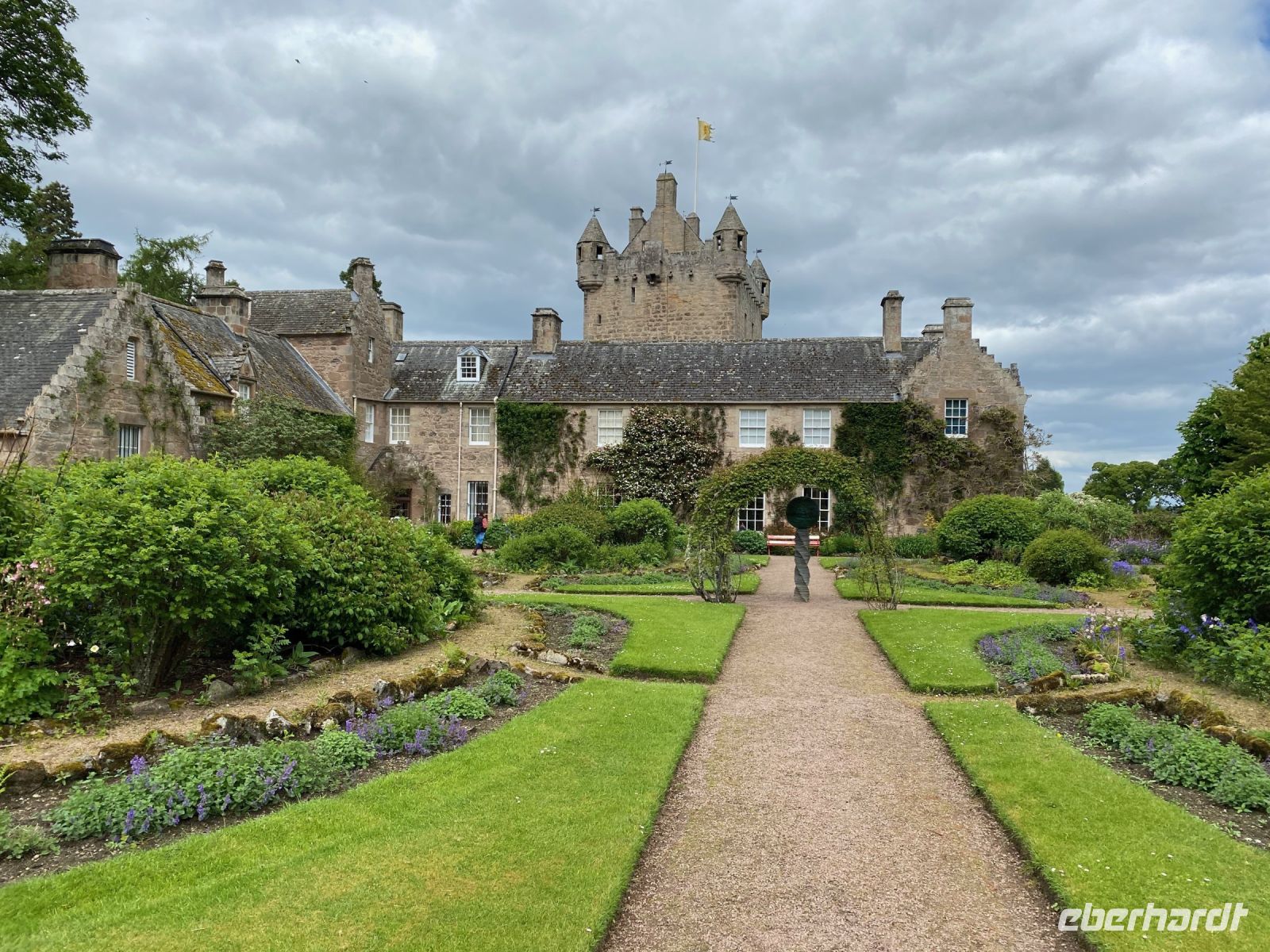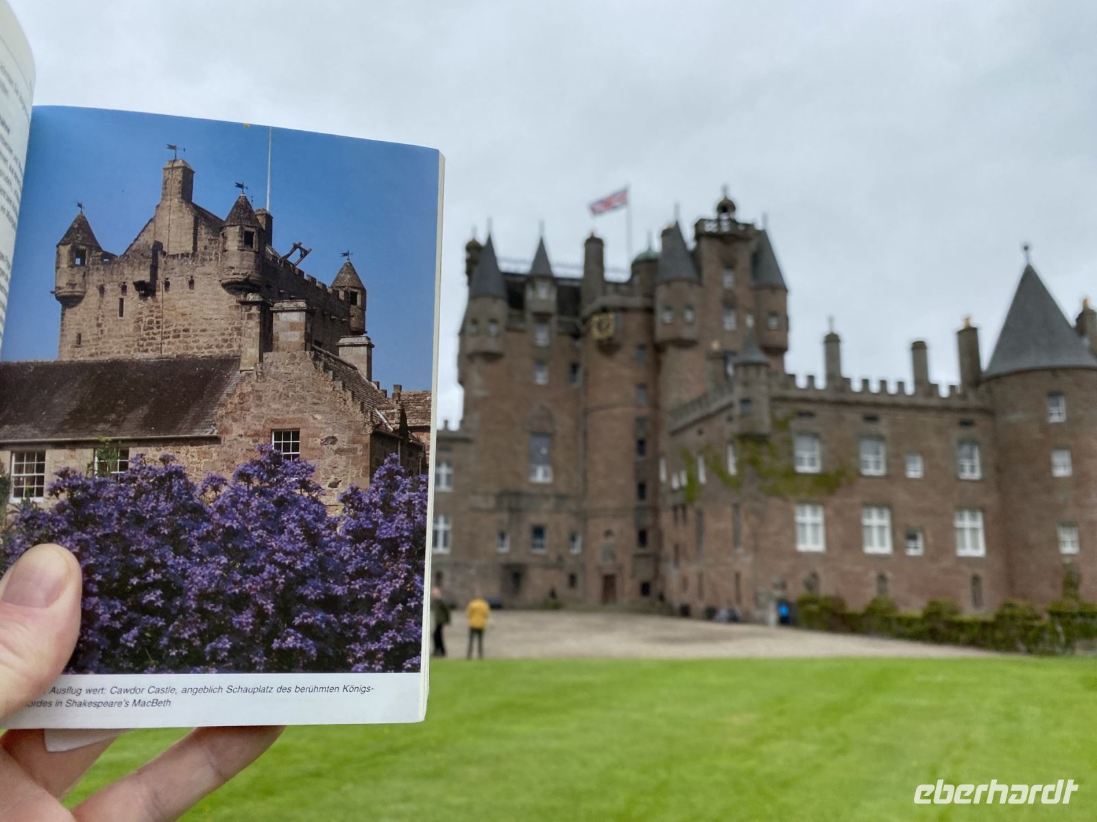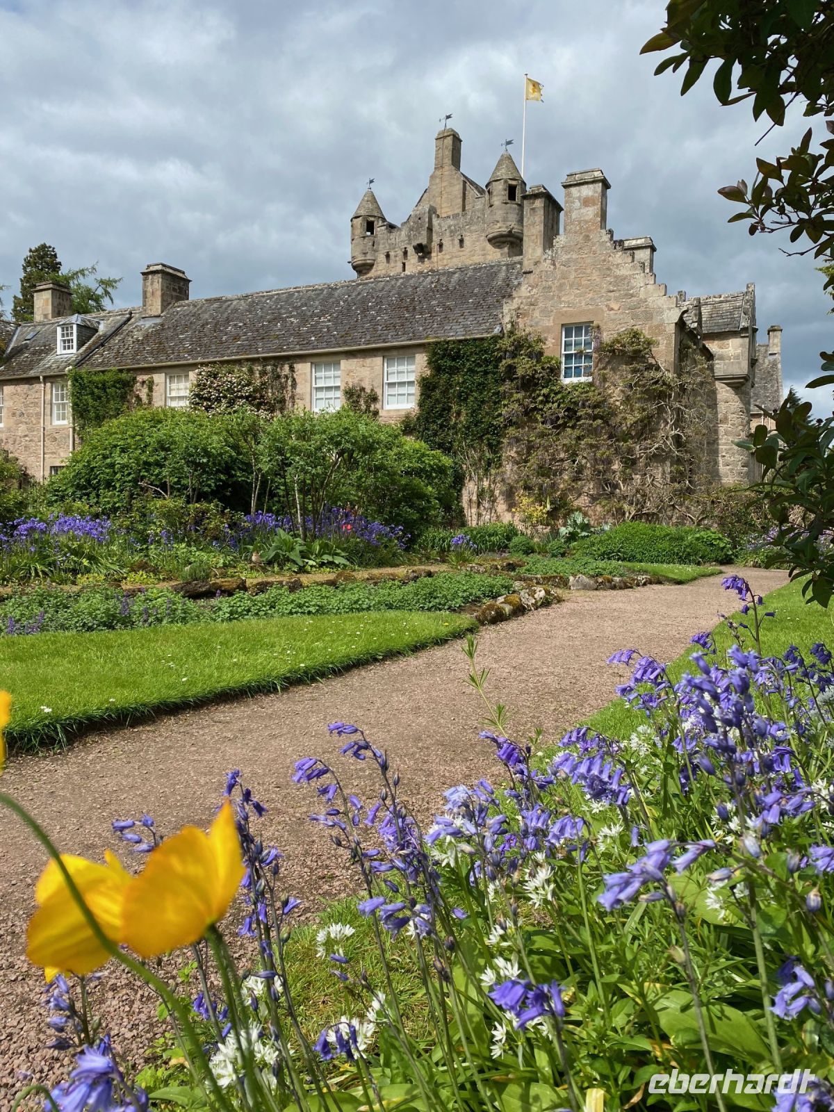Schnell lässt sich das Tagesprogramm umstellen, wir beginnen nun mit der Besichtigung von Schloss Cawdor, die eigentlich für den Nachmittag geplant war. Dort werden wir in einem der drei prächtigen Gärten mit einer Whisky-Verkostung begrüßt, inzwischen ist es ja schon 12:00 Uhr, in Schottland ist ohnehin immer Whisky-Zeit.