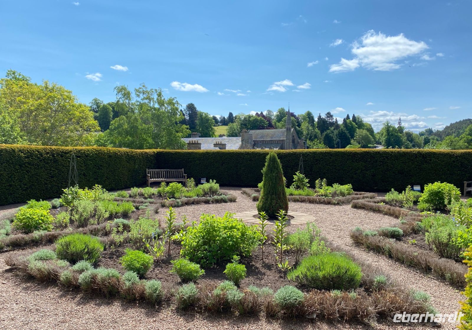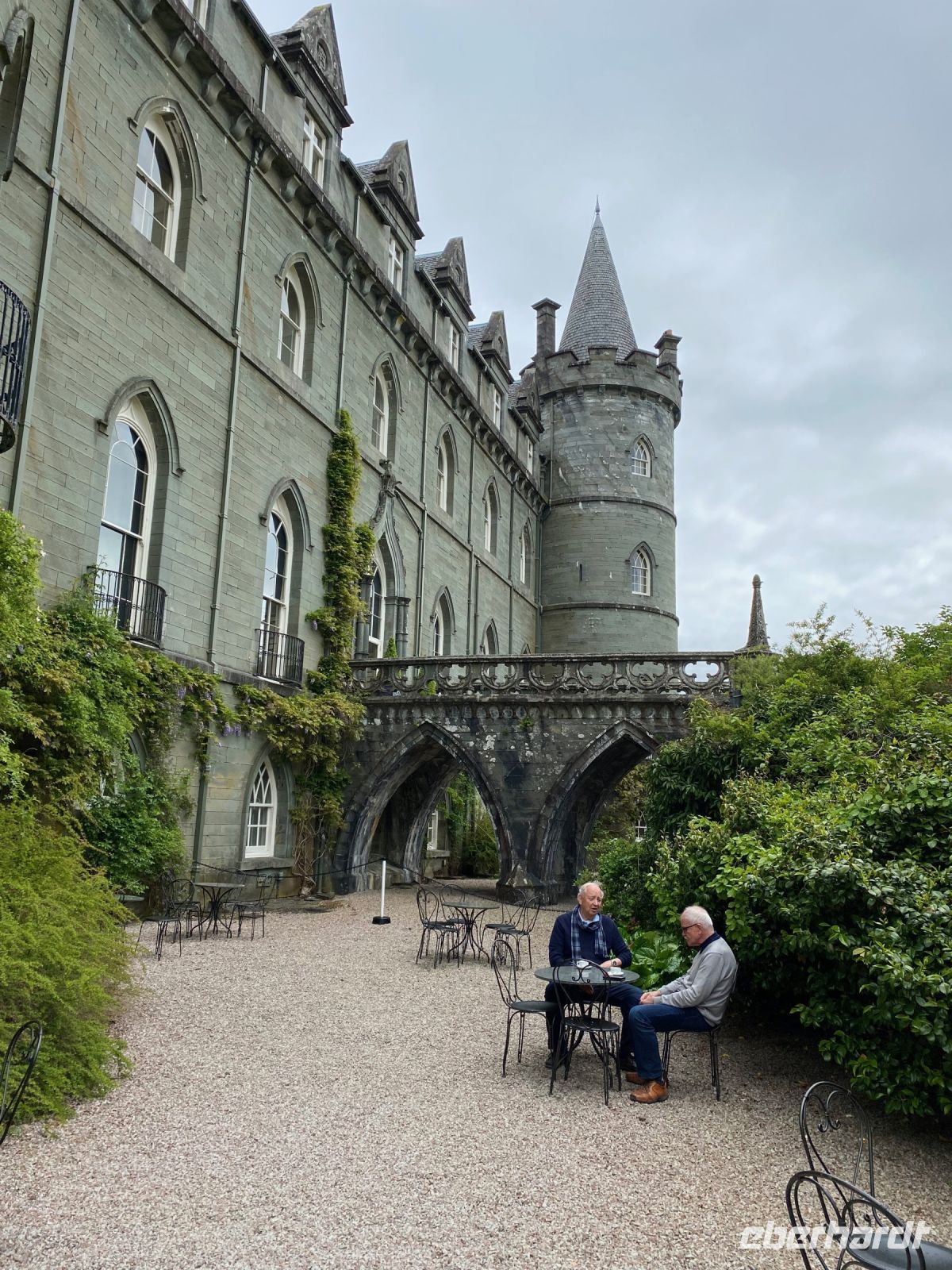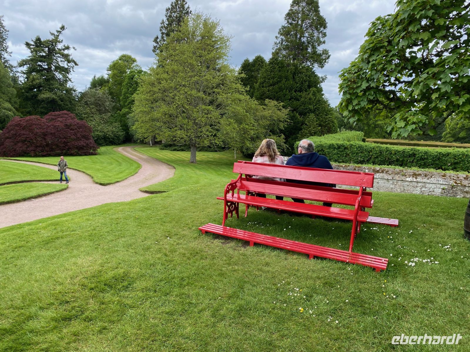 Schnell lässt sich das Tagesprogramm umstellen, wir beginnen nun mit der Besichtigung von Schloss Cawdor, die eigentlich für den Nachmittag geplant war. Dort werden wir in einem der drei prächtigen Gärten mit einer Whisky-Verkostung begrüßt, inzwischen ist es ja schon 12:00 Uhr, in Schottland ist ohnehin immer Whisky-Zeit.