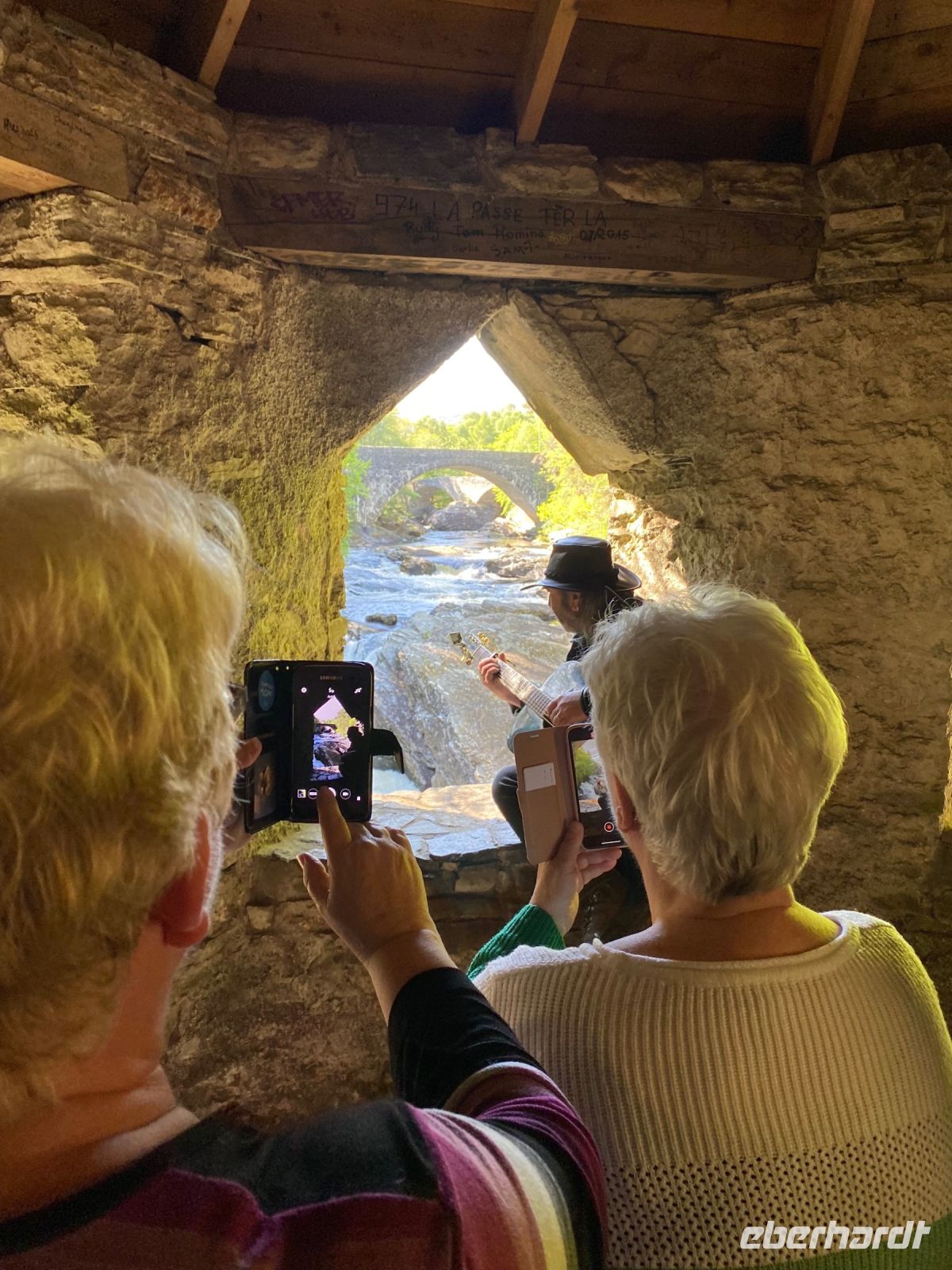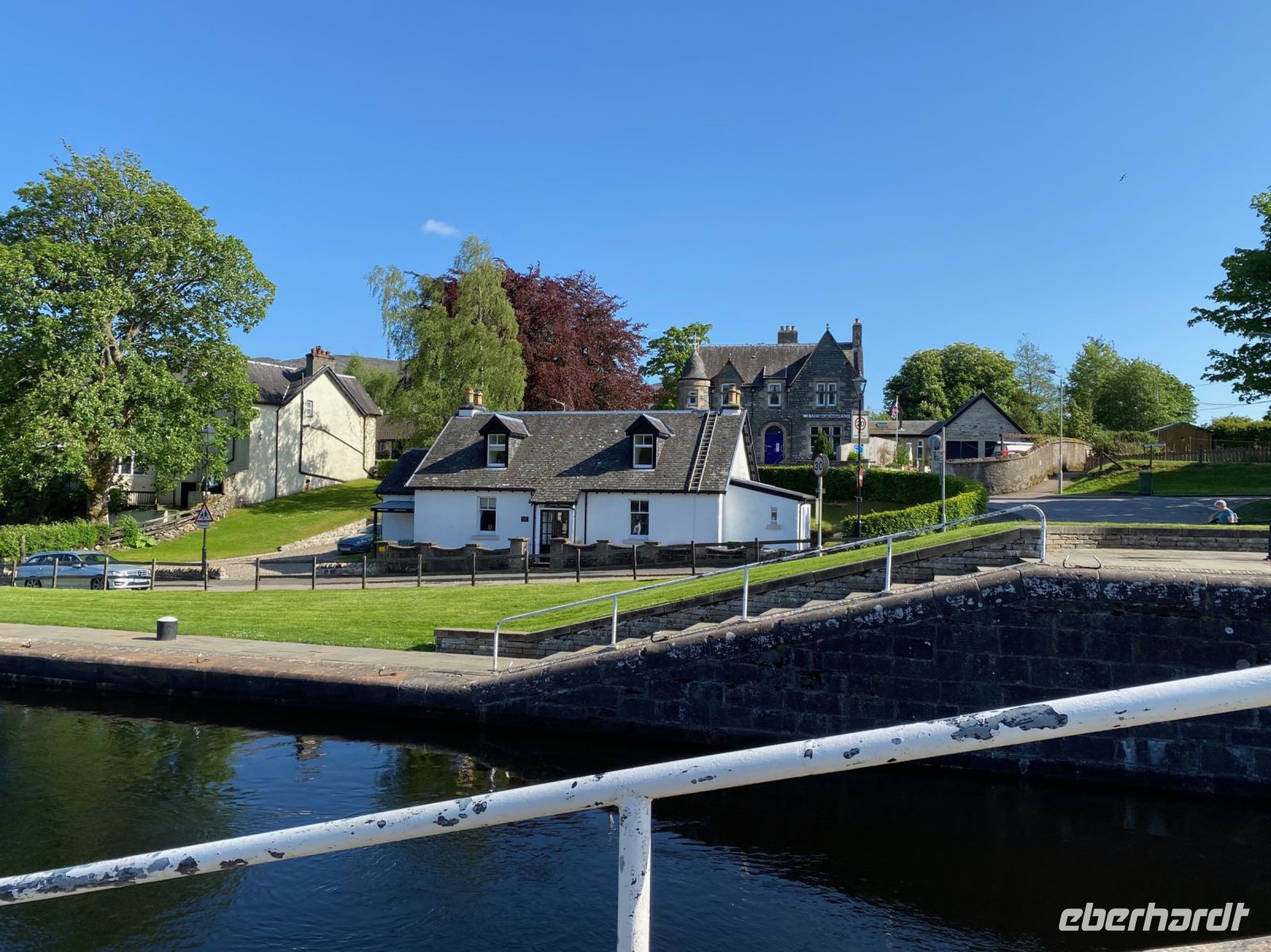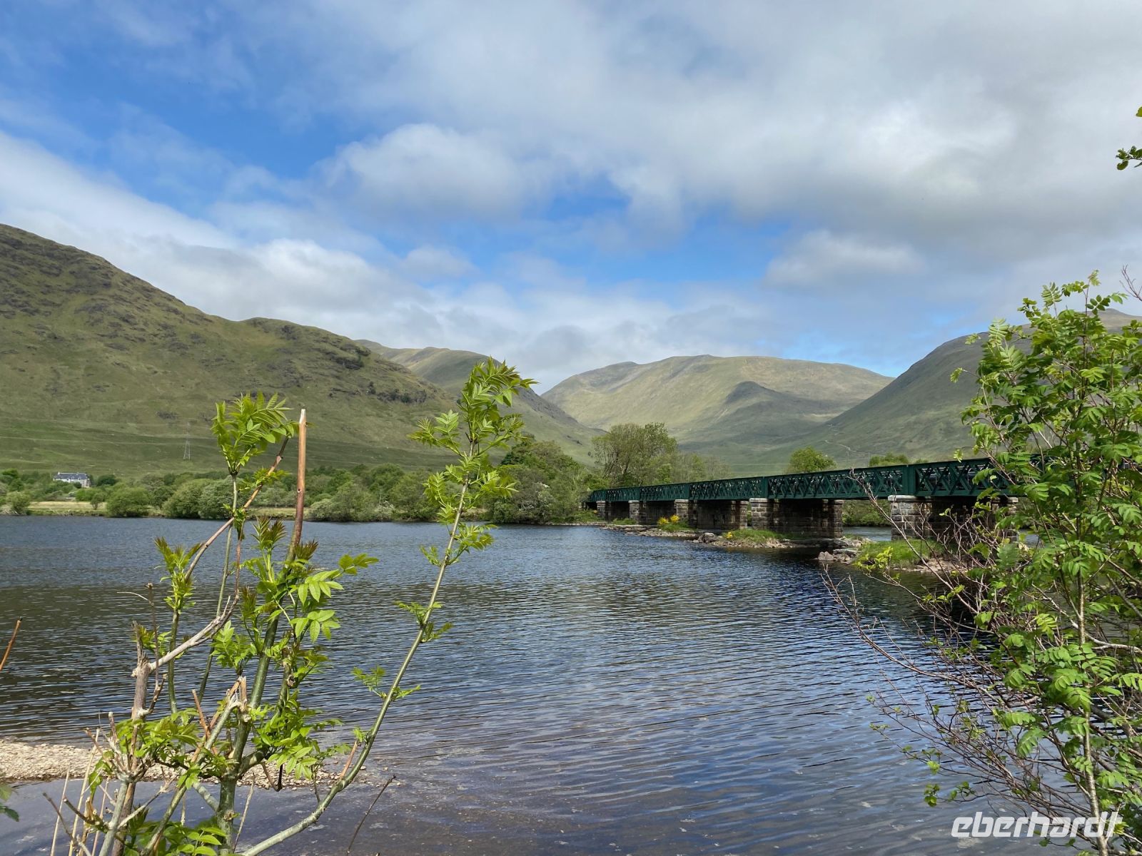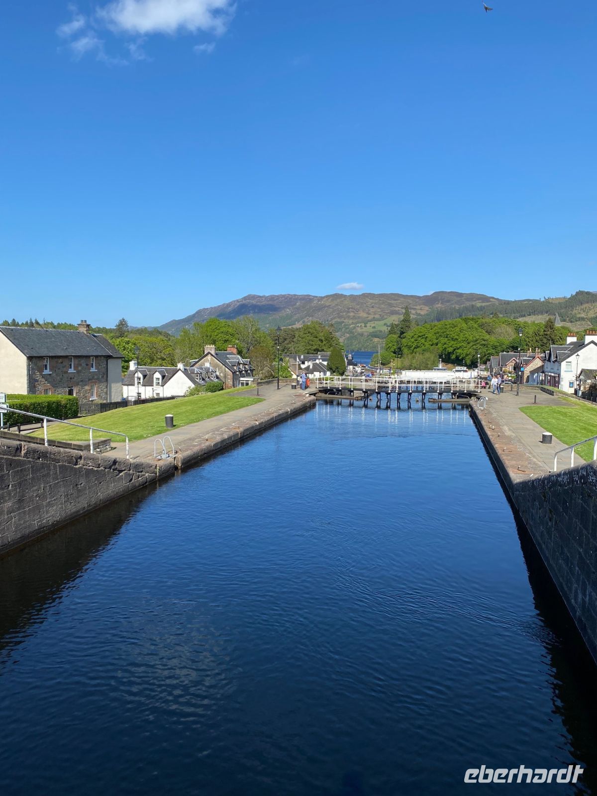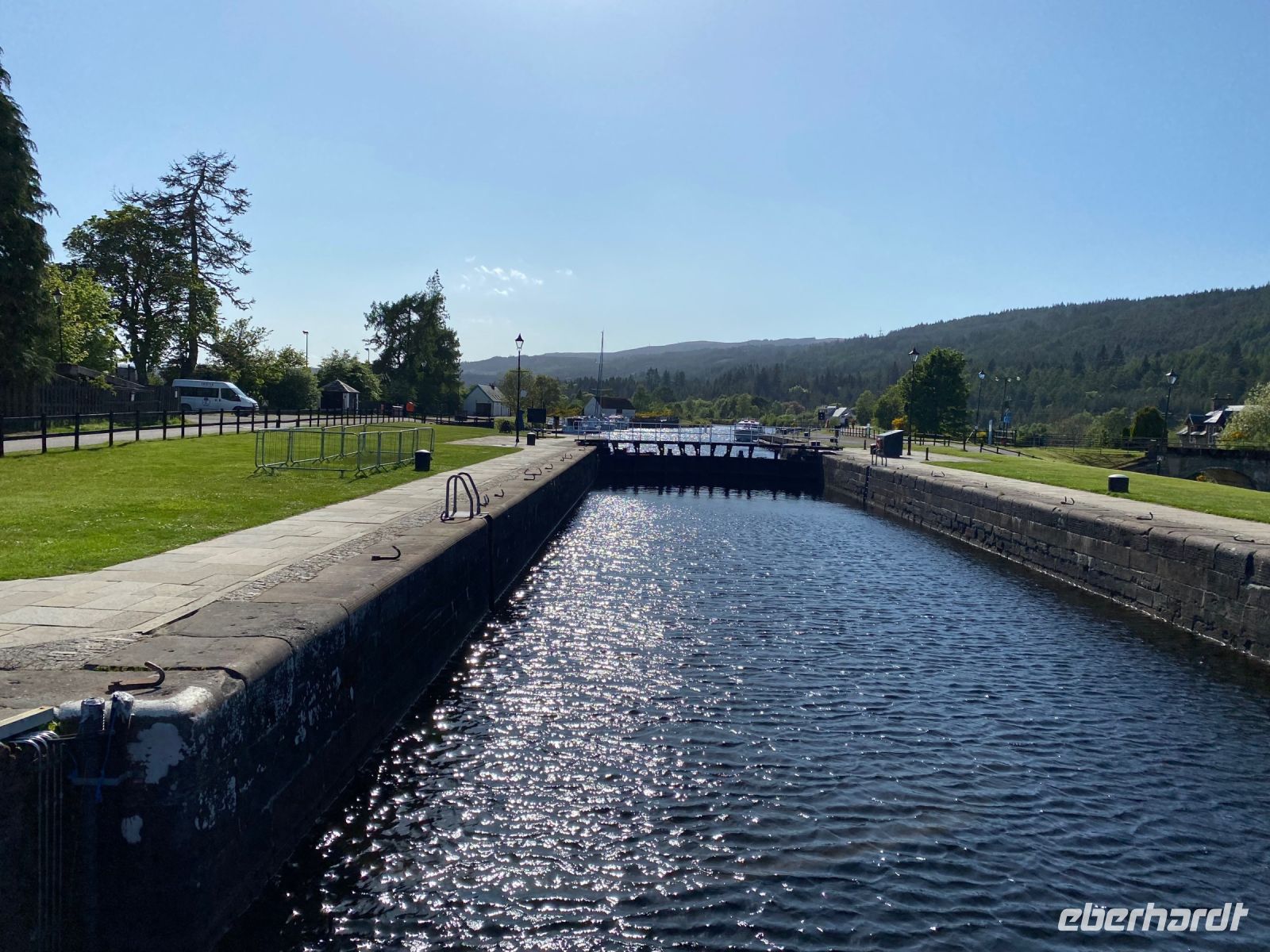 Loch Ness ist für uns auch der erste in einer Reihe von drei langen, schmalen Seen, der wir folgen. Seit 1822 sind diese Seen durch den kaledonischen Kanal schiffbar verbunden. Sein Erbauer war der geniale Ingenieur Thomas Telford. Bei den River Moriston Falls passieren wir eine seiner Brücken, hier wird für uns übrigens in einem Pavillon am unteren Wasserfall musiziert!