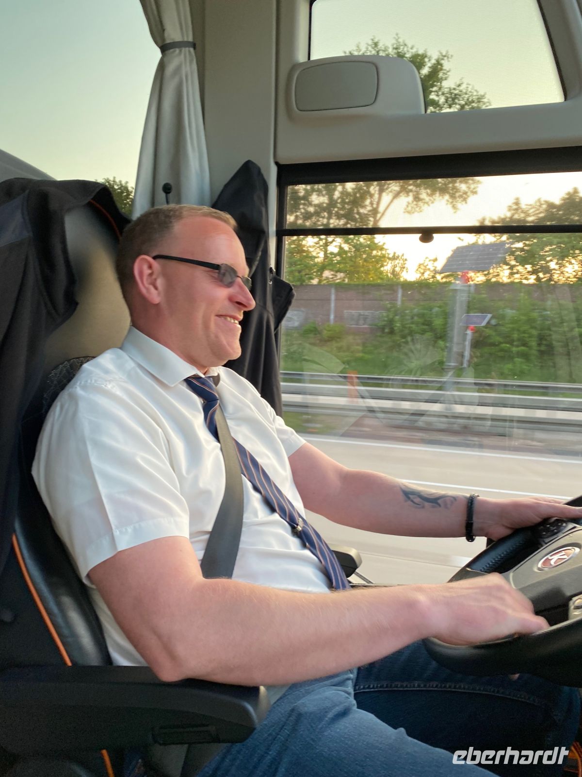 So würden es die Engländer dramatisch nennen, wir erreichen Europa. Die Zeitverschiebung fällt kaum auf, Jetlag hat keiner und um an Land zu gehen reicht diesmal der Personalausweis. Wir sind schon fast daheim! Etwas Holland noch, Gelderland und dann hat uns die Heimat wieder. Unser Bus beginnt sich zu leeren, die Abschiede sind herzlich. Noch eine Pause mit Würstchen aus der Bordküche und wir erreichen schließlich Dresden mit den ersten, die nun die letzten sind, noch vor Sonnenuntergang. Ein langer Tag endet, eine wundervolle kurzweilige Reise voll neuer Erlebnisse und Eindrücke bleibt in Erinnerung.