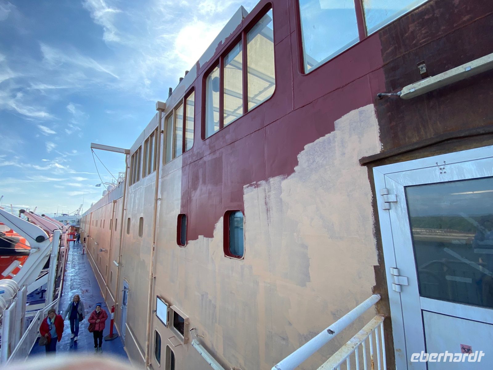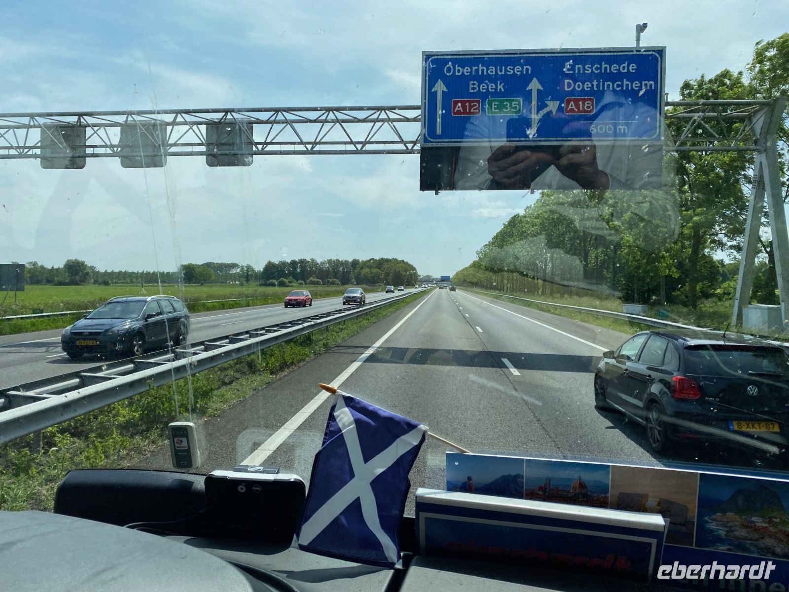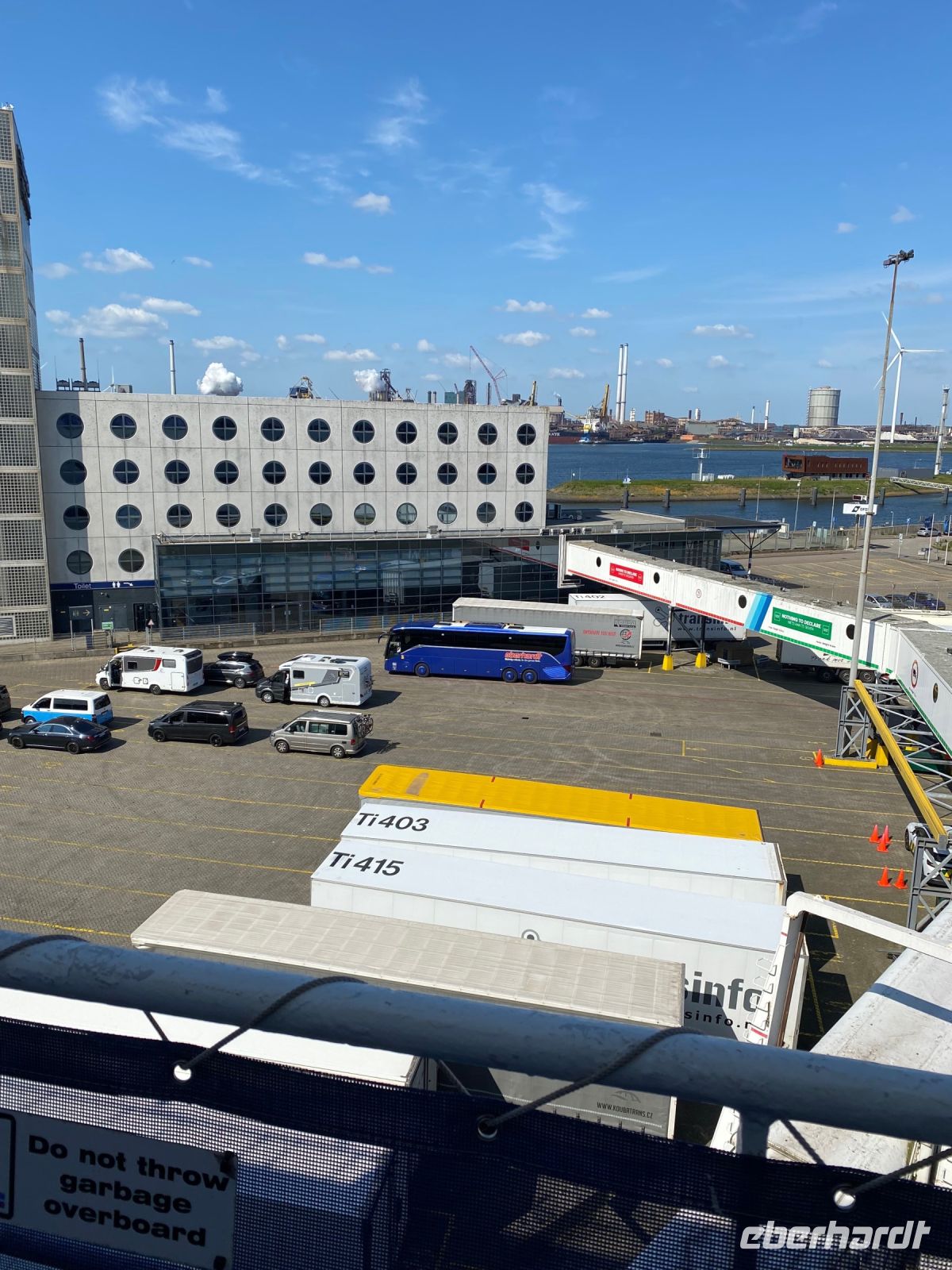 Die erste große organisatorische Aufgabe der Reise ergibt sich spontan: Ein Reisender hat versehentlich einen falschen Reisepass eingepackt. Sein eigener Personalausweis reicht leider nicht aus, der Brexit hat auch hier seine Spuren hinterlassen. Wir beschließen, dass der Pechvogel mit der Bahn aus Amsterdam zurück nach Deutschland fährt, um seinen Pass abzuholen. Ein Taxi ist mit toller Hilfe der Reederei DFDS schnell bestellt, er erreicht den letzten ICE des Tages noch pünktlich und auf der Fähre werde ich Zeit haben einen Flug für ihn nach Edinburgh zu finden.