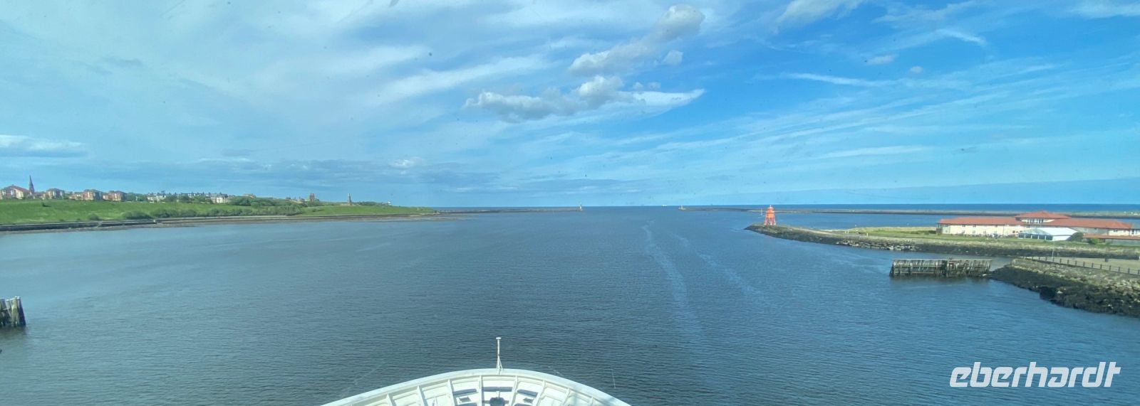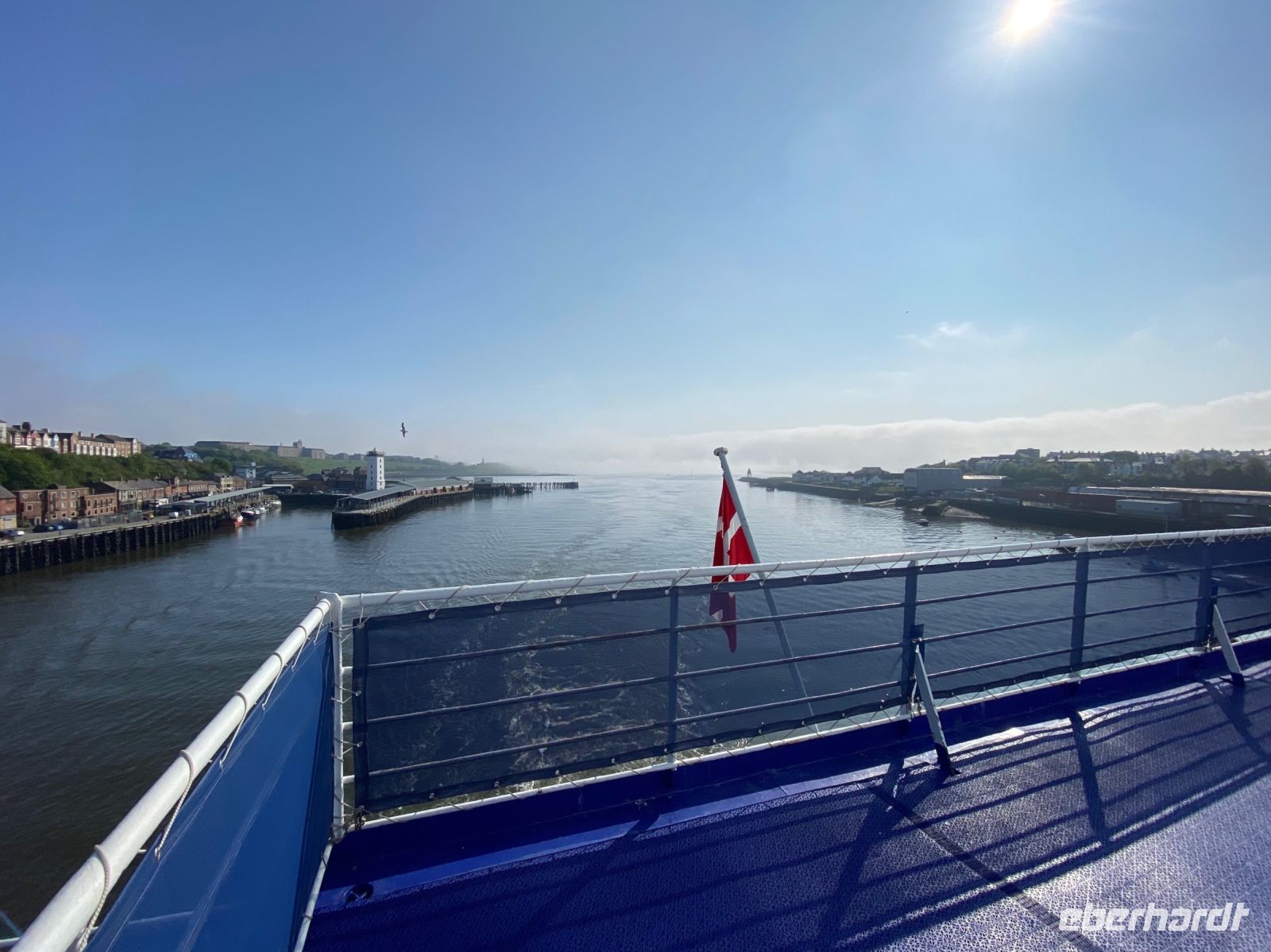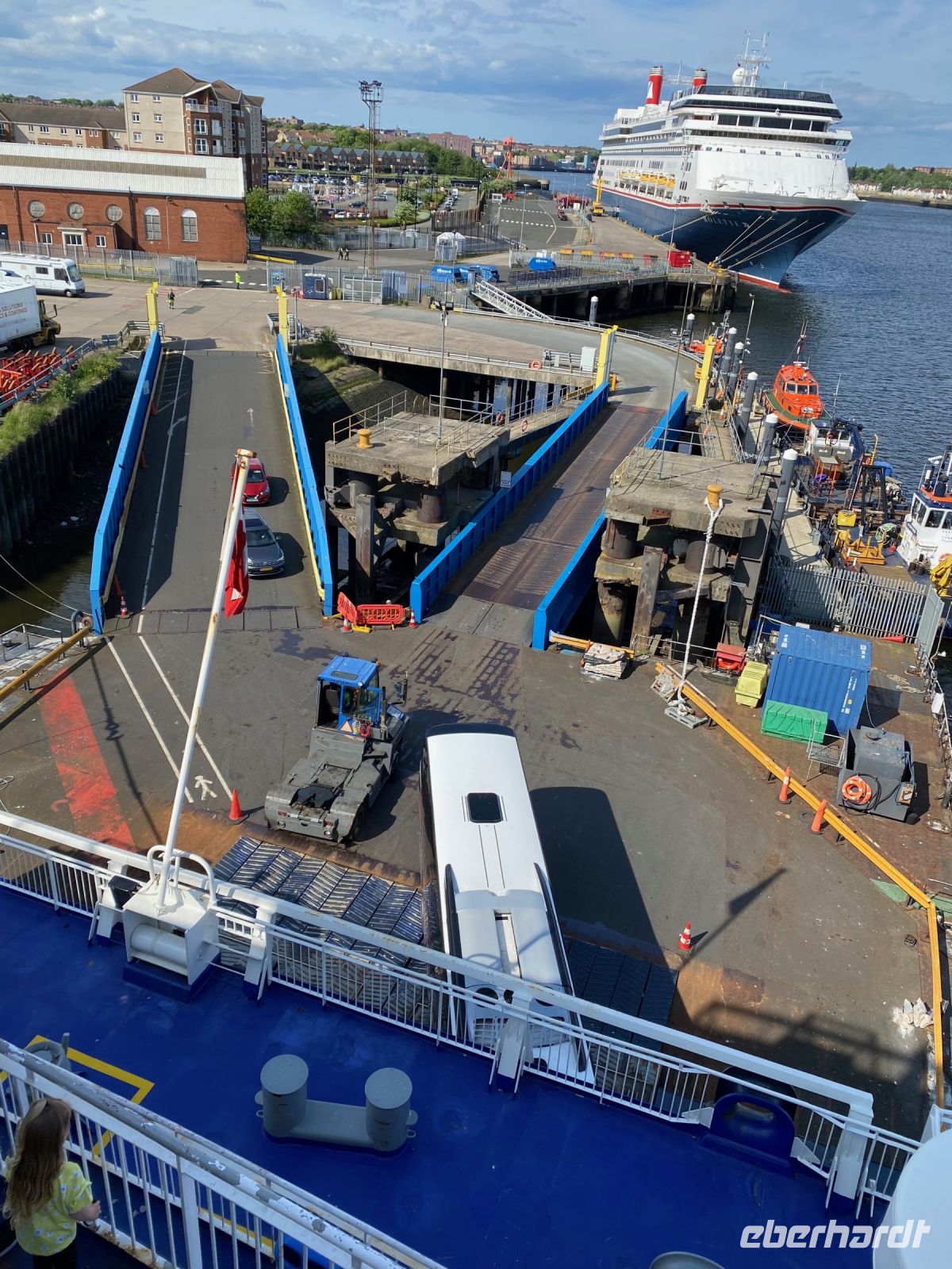 An mittlerweile englischen Schafen vorbei bringt uns Maik sicher die letzten Meilen mit links nach Newcastle, wo wir trotz etwas Gewusel am Hafen zügig und souverän einchecken. Bald schon treffen wir uns alle an Bord. Heute ist es ein anderes Schiff der gleichen Reederei, es gibt noch neues zu entdecken, ein Abendbuffet, mehrere Bars und schließlich schlafen wir wieder tief und fest wie auf unserer ersten Überfahrt.