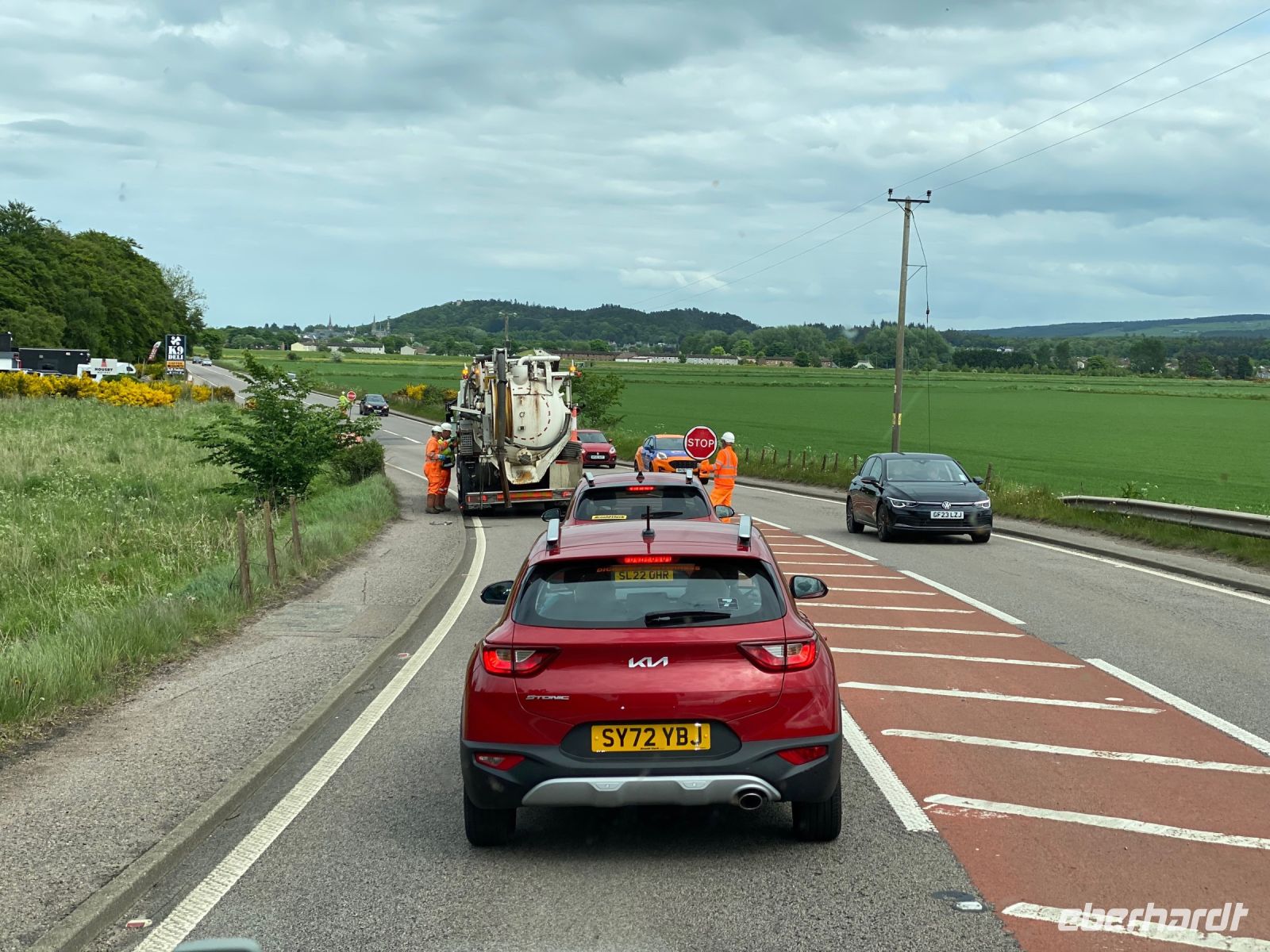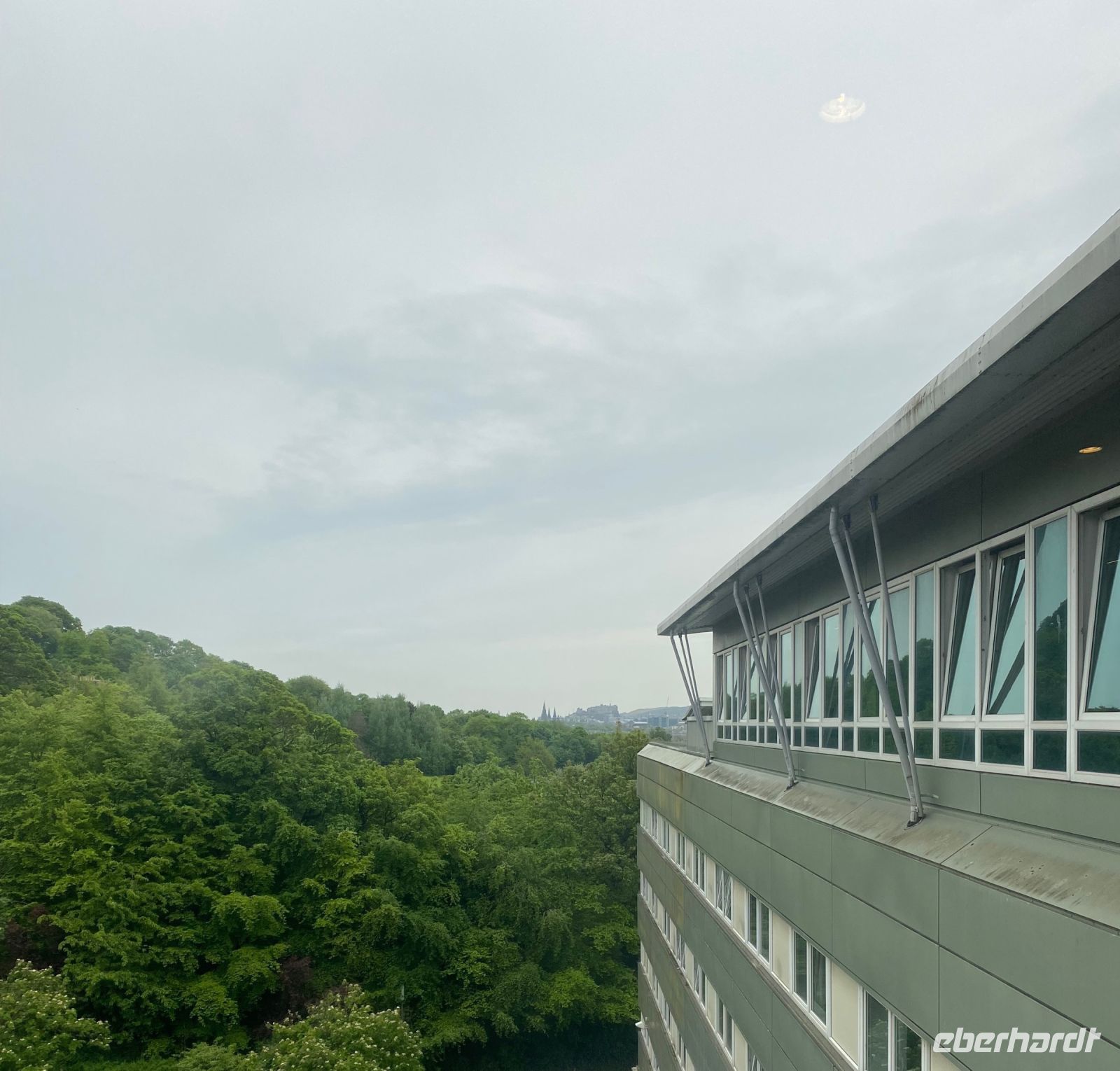Das Wetter ist schön, erst als wir in Edinburgh ankommen beginnt es zu nieseln. Unser Hotel liegt direkt neben dem Zoo der Stadt, eigentlich gar nicht so weit vom Zentrum der Stadt, aber nach dem Abendessen sind doch alle eher müde und fallen in die Betten des etwas in die Jahre gekommenen Holiday Inn Edinburgh. Der Tourismus in Großbritannien und besonders in Schottland hat sich noch nicht wirklich von Brexit und Corona erholt. Überall fehlen Arbeitskräfte und die Hotels in Edinburgh sind alle sehr gut gebucht, es ist auch noch Wochenende. Auch wenn unser Hotel nicht das neuste ist, müsste ein einzelner Reisender hier 420 Pfund für die Übernachtung bezahlen, knapp 500 Euro und das ohne Frühstück!